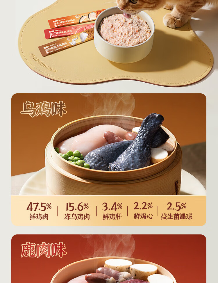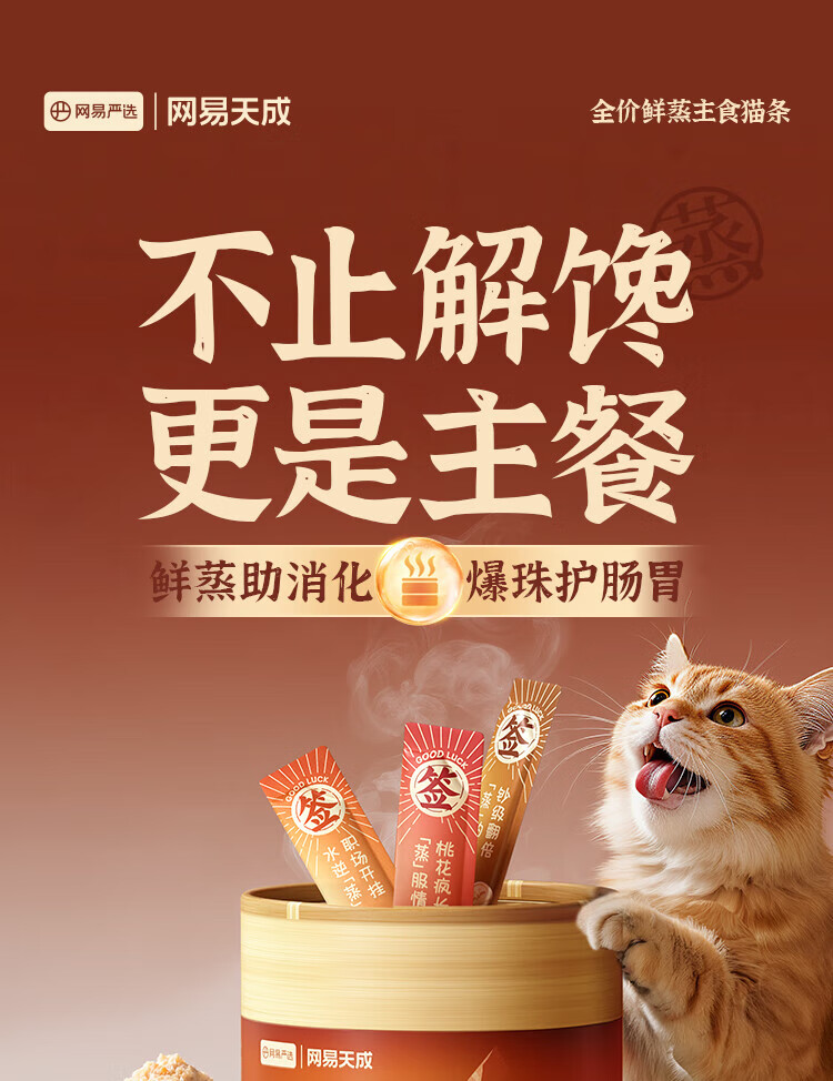 网易严选全价鲜蒸主食猫条 主食级爆珠猫条 营养湿粮成猫幼猫通用 乌鸡味 6支*1袋