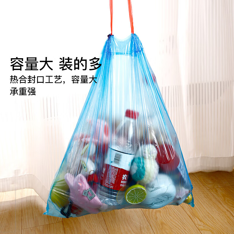 【精选好物】抽绳手提式垃圾袋 加厚家用垃圾分类自动收口厨余垃 3卷45只 随机色【加厚】