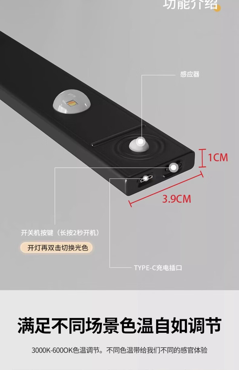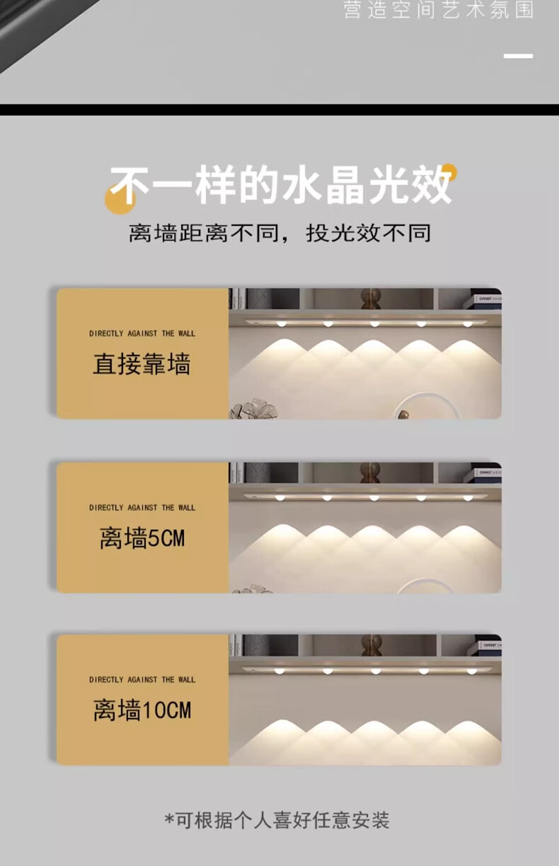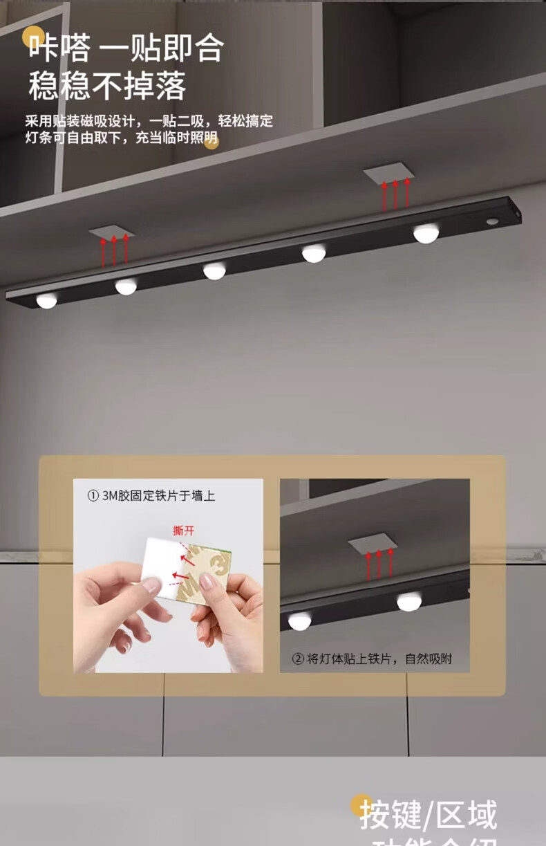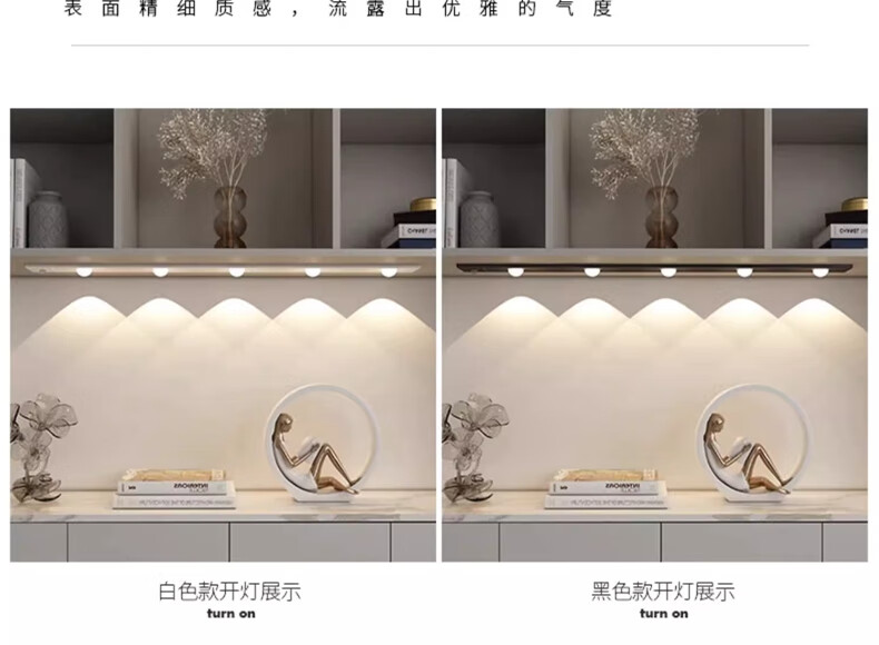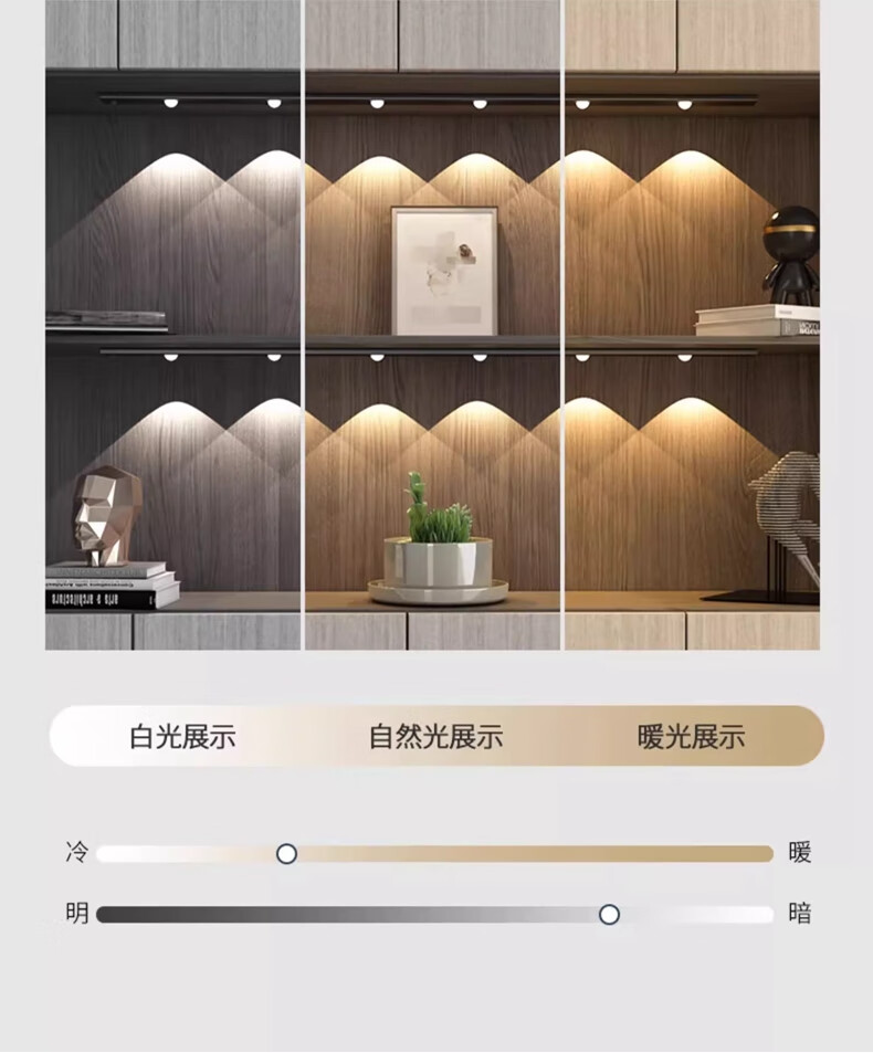 拉伯塔酒柜LED橱柜灯带充电人体感应灯无线衣柜猫眼灯鞋柜自粘磁吸灯条 5珠5波纹【80cm白壳】 【三色变光+双感应+可调光】