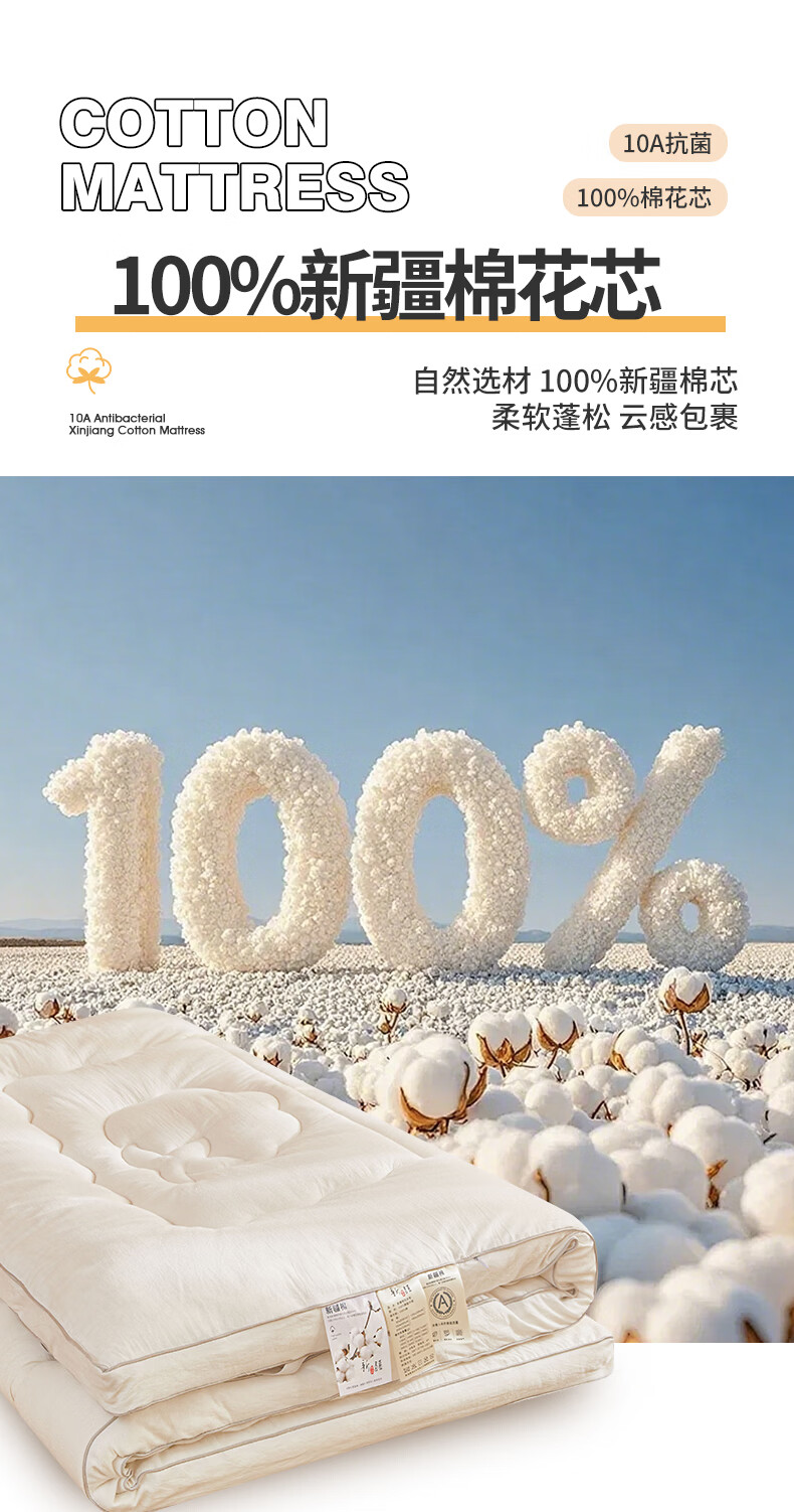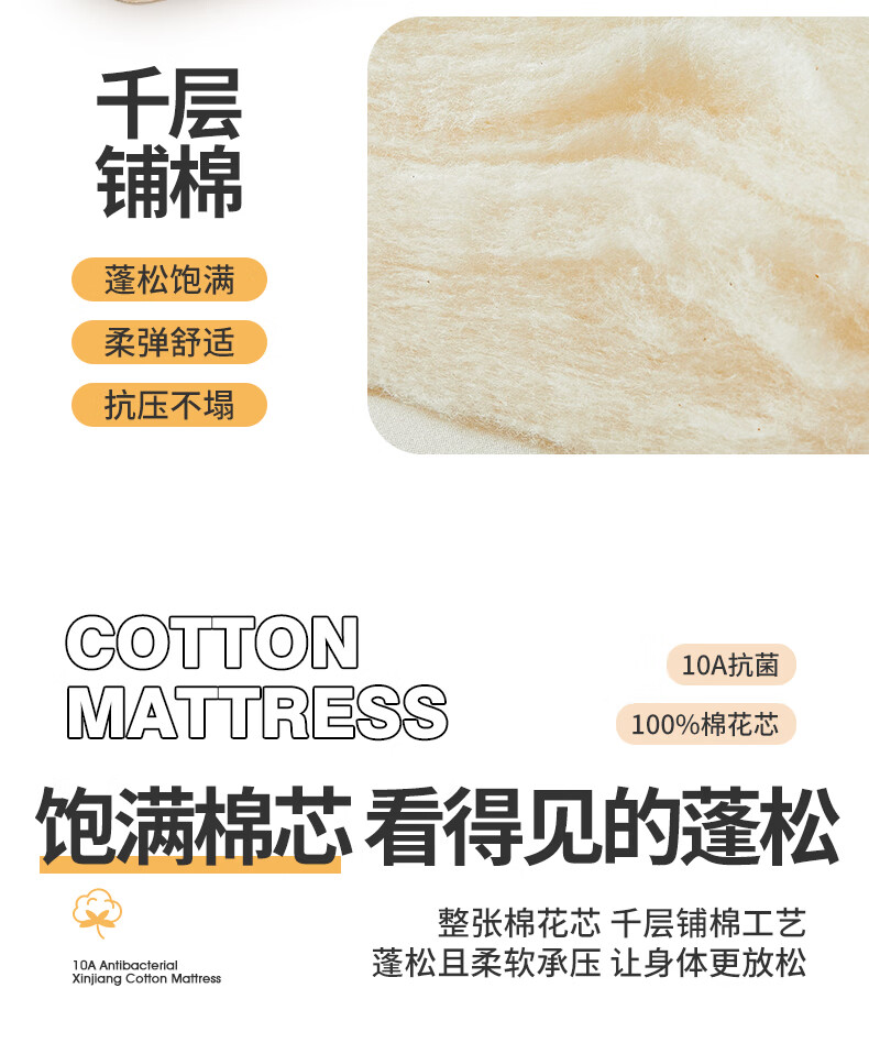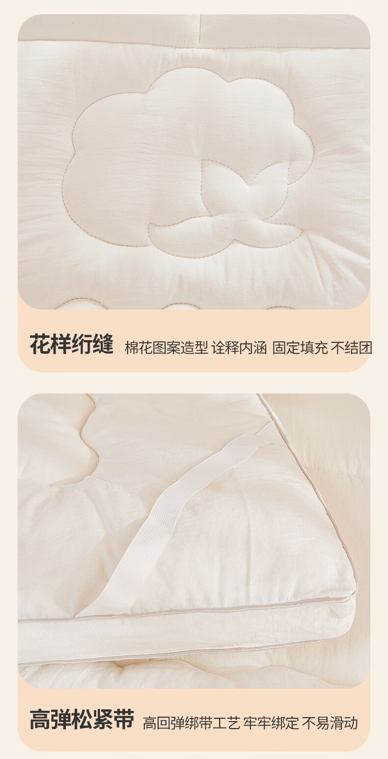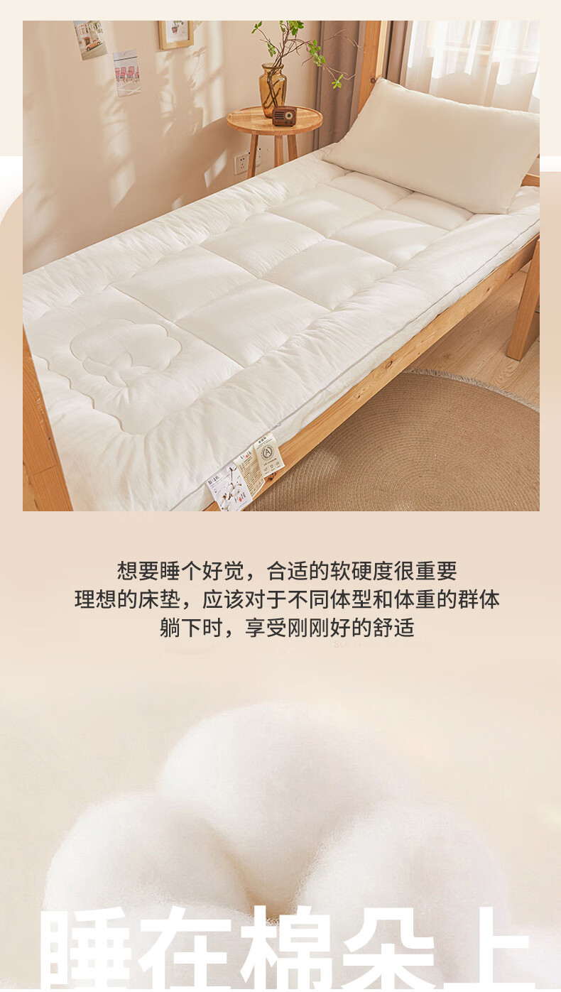 博洋(BEYOND)全棉棉花夹棉加厚床罩单双人床笠可水洗席梦思保护榻榻米垫子褥子 100支长绒棉可水洗棉花床褥—云絮 150*200cm