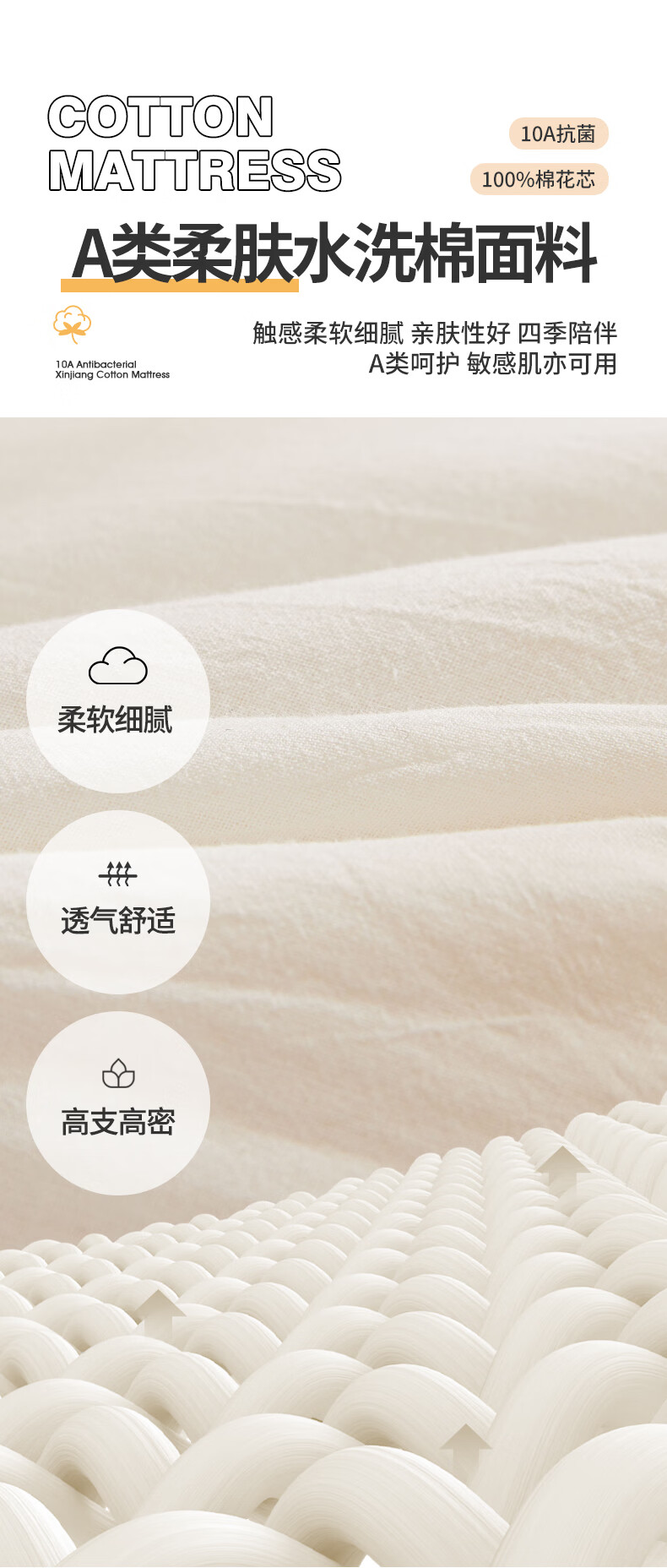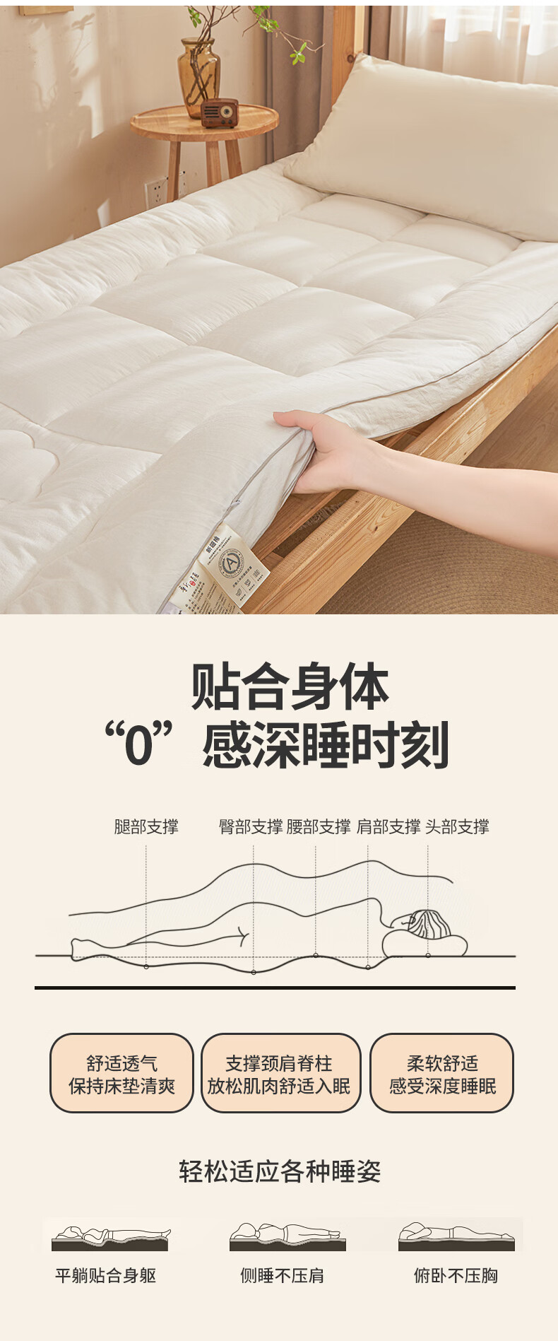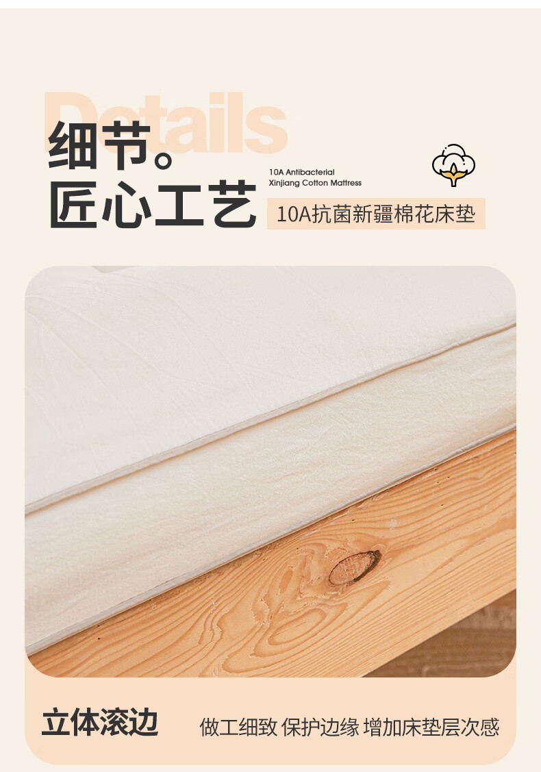 博洋(BEYOND)全棉棉花夹棉加厚床罩单双人床笠可水洗席梦思保护榻榻米垫子褥子 100支长绒棉可水洗棉花床褥—云絮 150*200cm