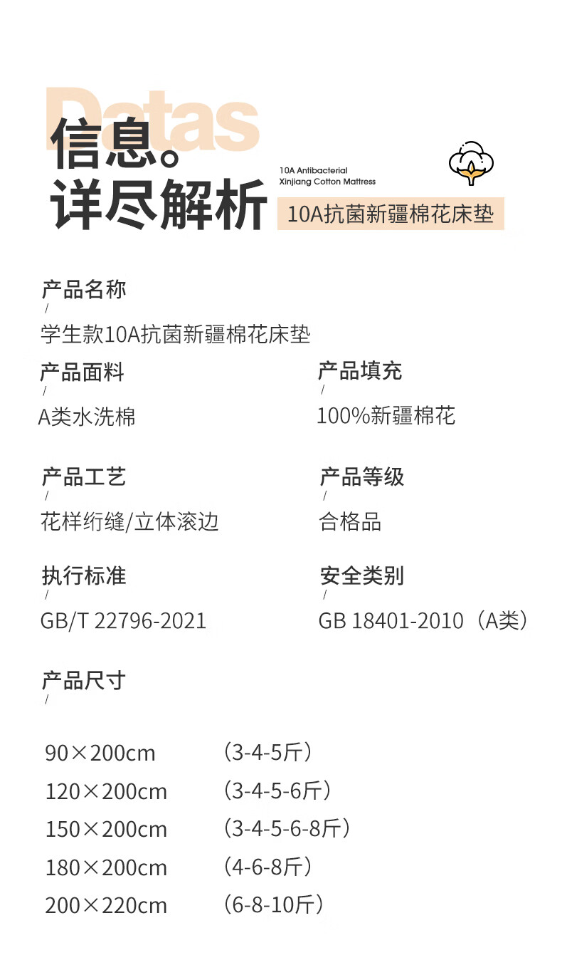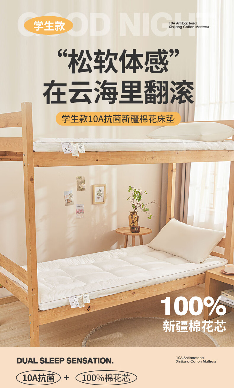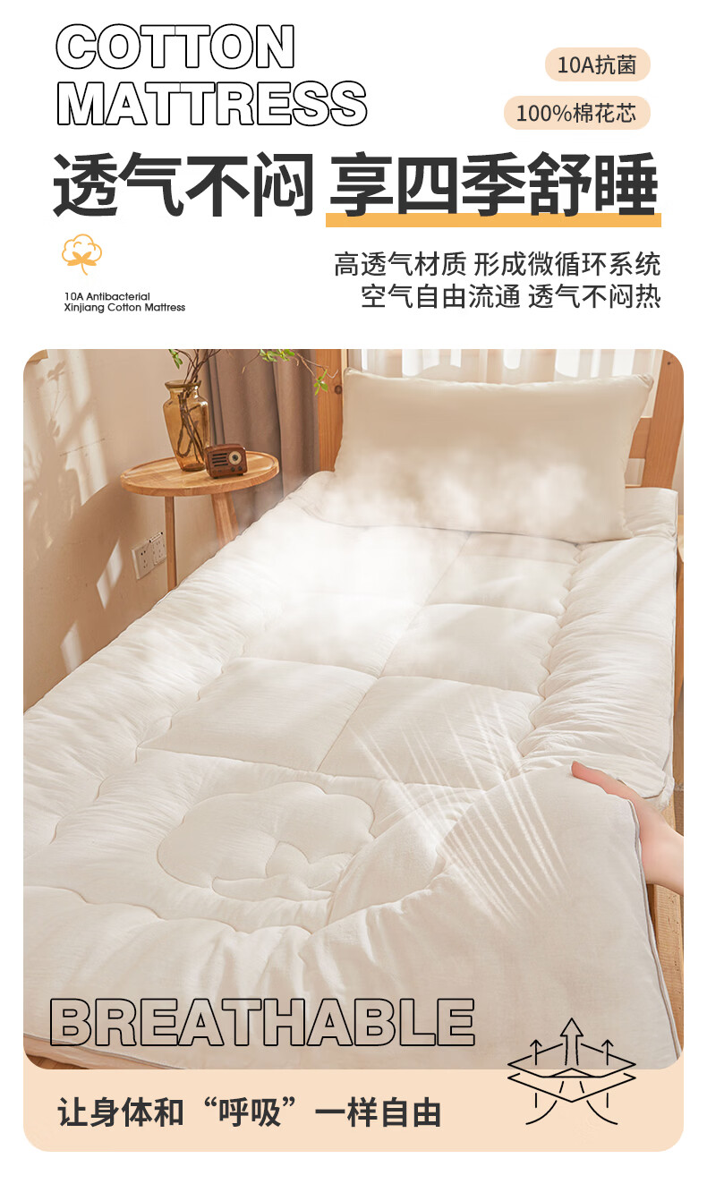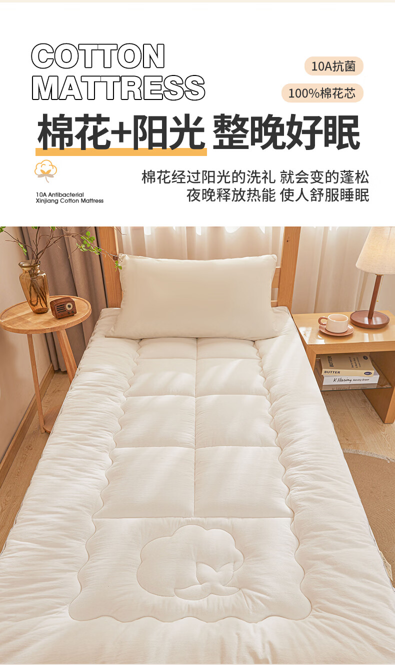 雅鹿100%全棉棉花床垫褥子0.9x1.9米宿舍单人加厚软垫床垫上面的褥垫 简语床垫-白【里外全棉】 宿舍床:90*200cm【约3斤】