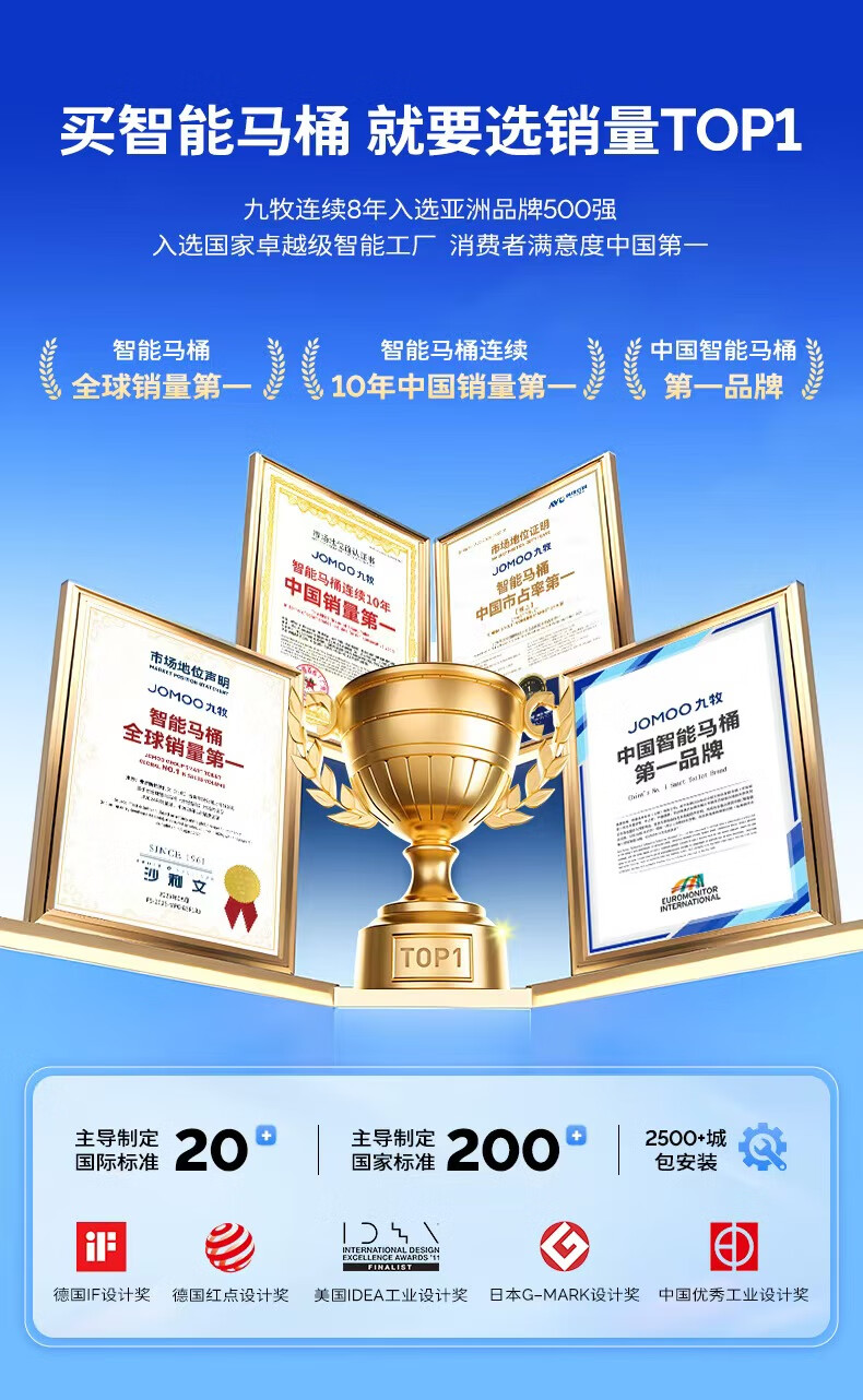 九牧(JOMOO)轻智能马桶静音冲无水压限制家用一体机虹吸坐便器一级水效 【离座大小冲+随心贴】26年新款SQ6366 305/300mm
