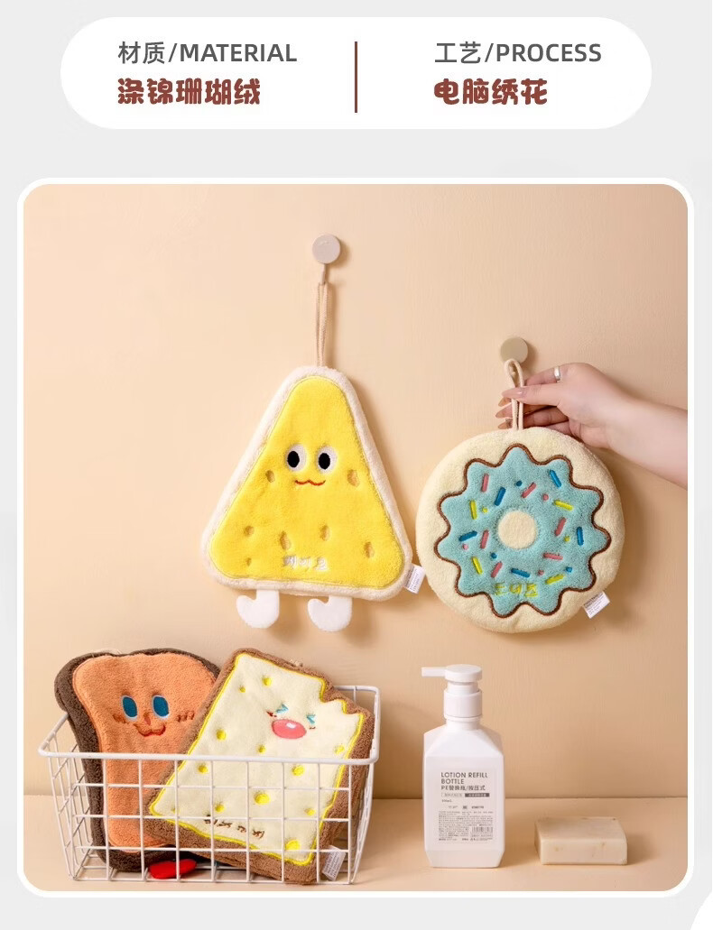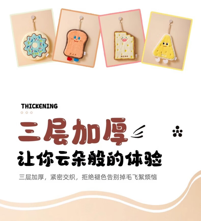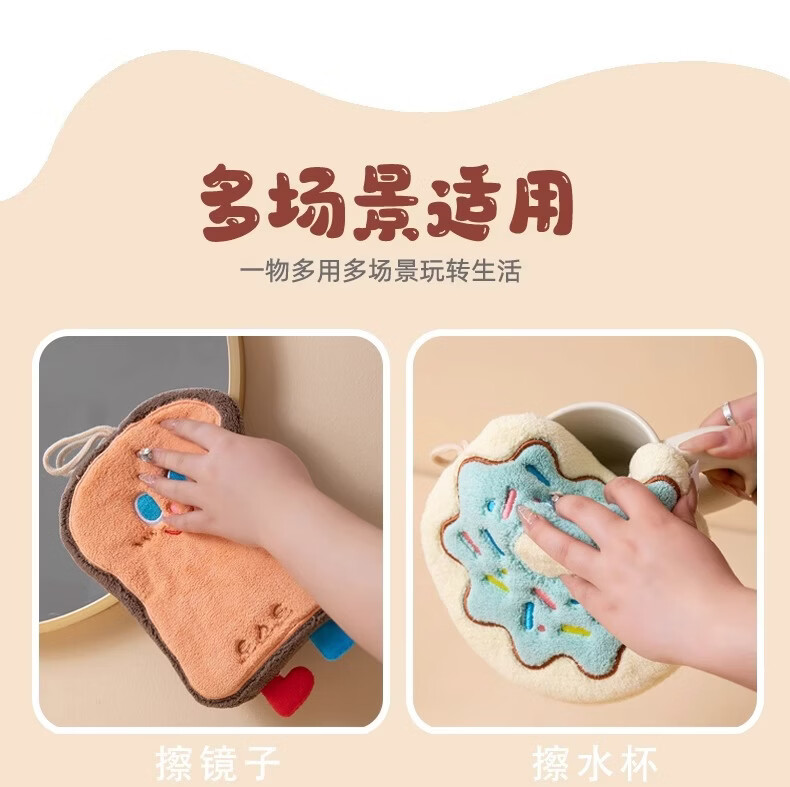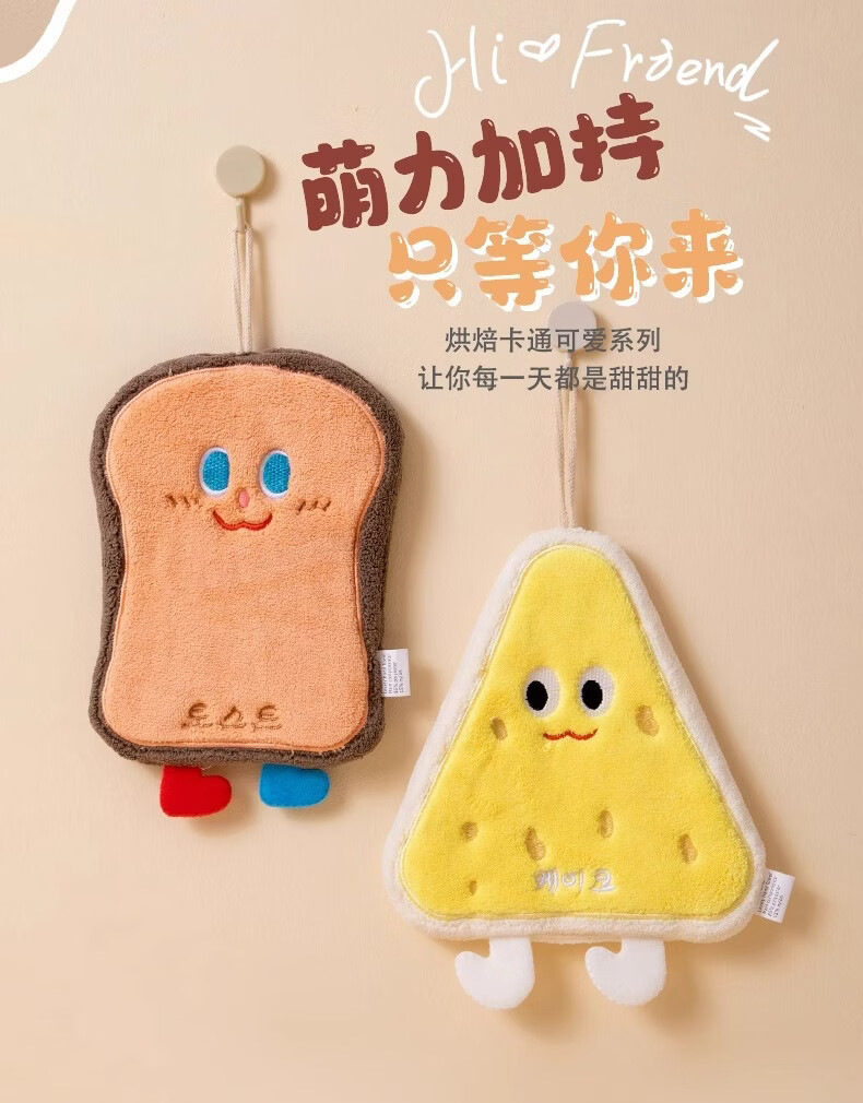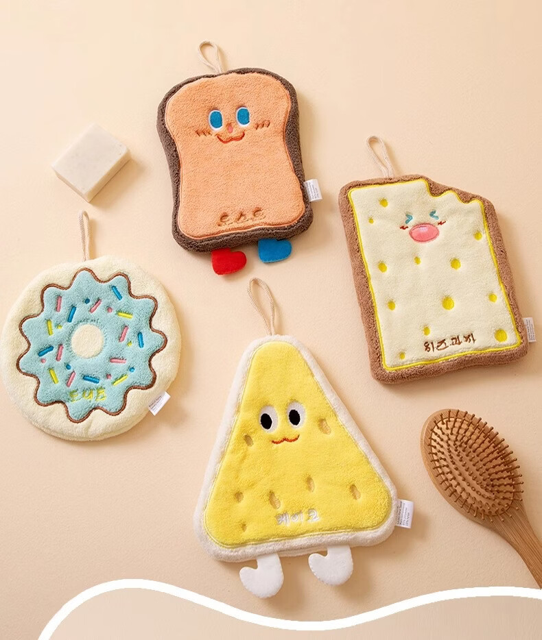 Kaooseen可爱卡通沐浴洗漱擦手巾吸水速干挂式加厚卫生间擦手帕洗手小方巾 卡通可爱擦手巾2条【款式颜色随机】