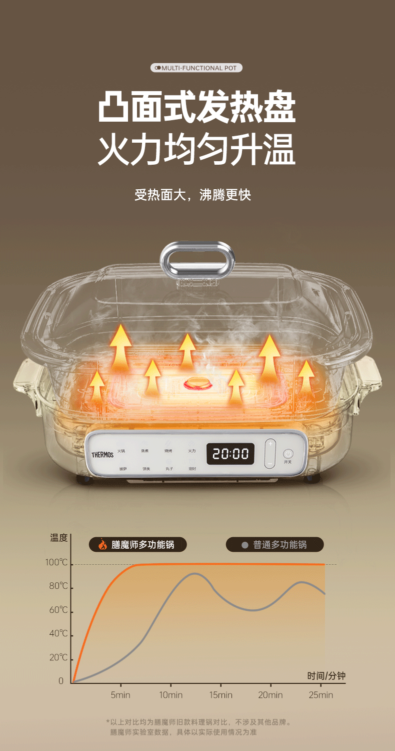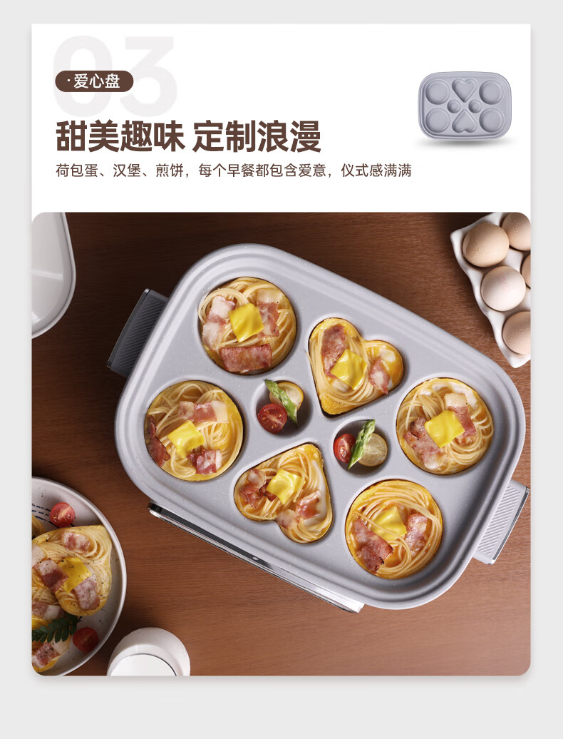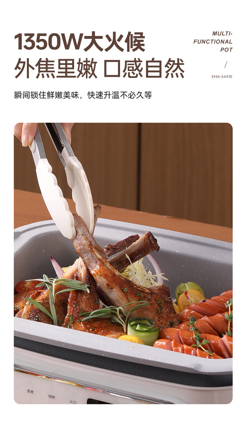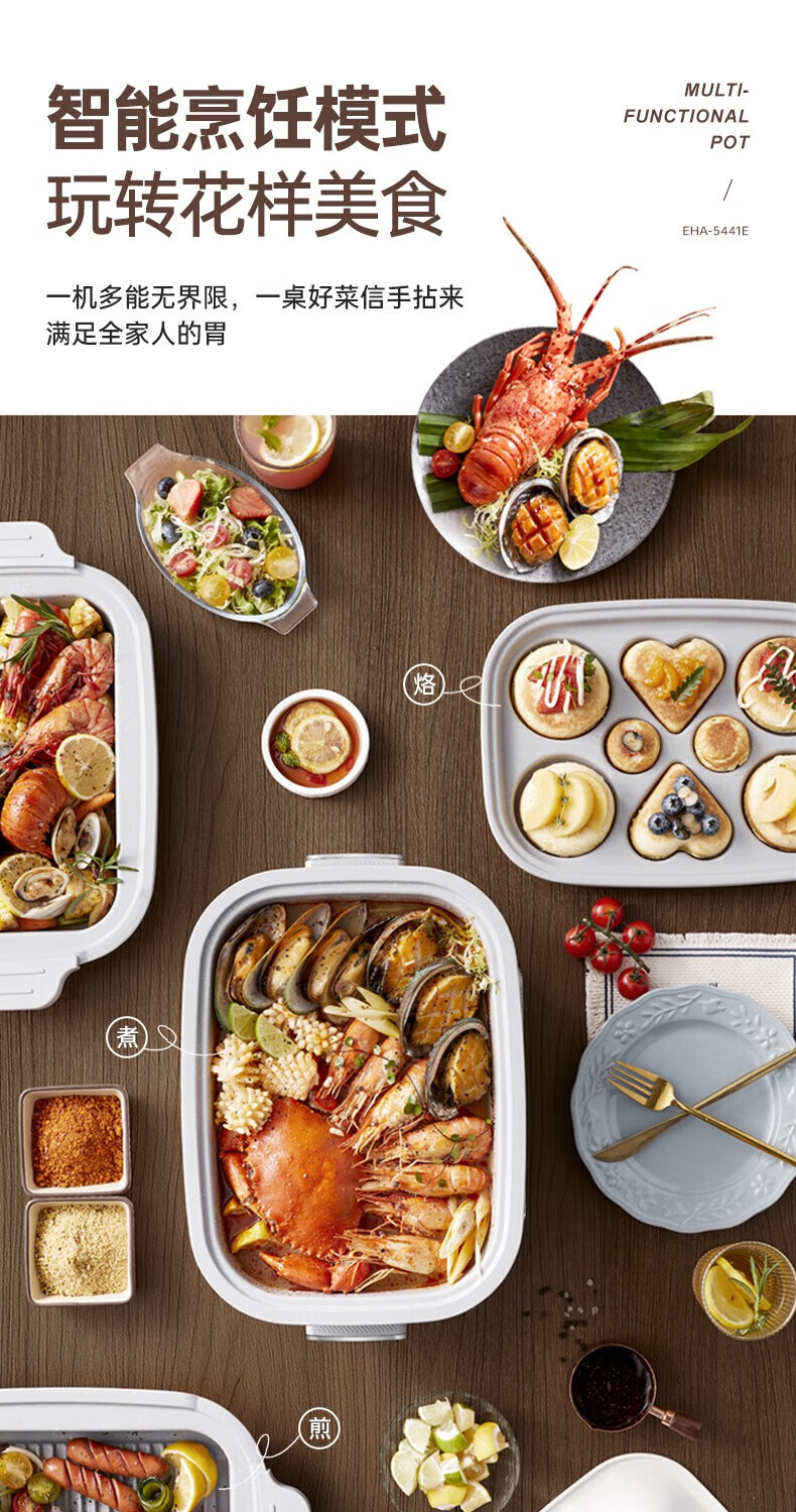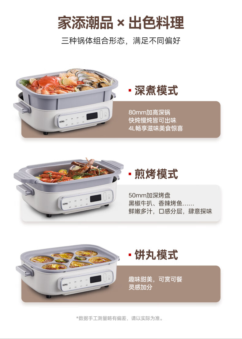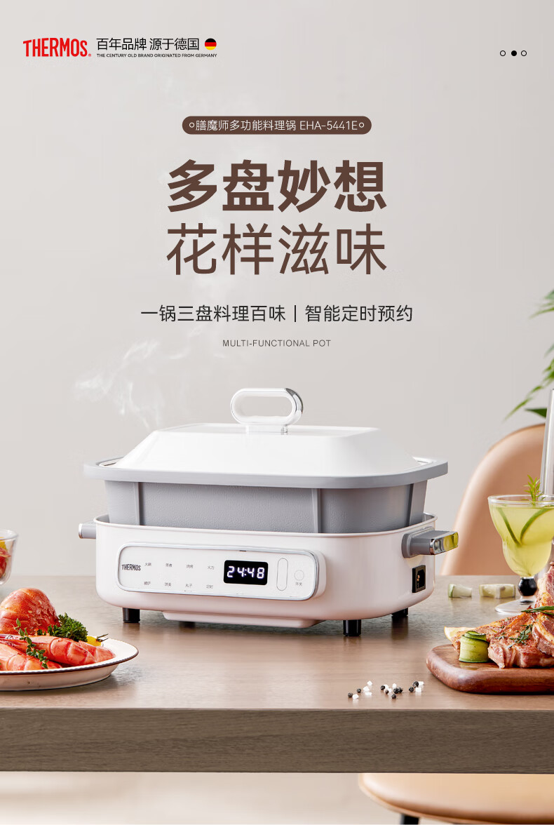 膳魔师(THERMOS)【年会礼品】料理锅电蒸锅炖蒸煮一体家用电火锅电炒锅电煮锅涮烤一体2025新款多功能锅分体式 4L 白标配【深锅+条纹烤盘+爱心盘+防烫手套】