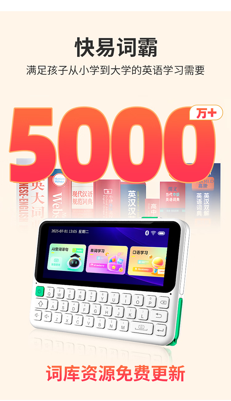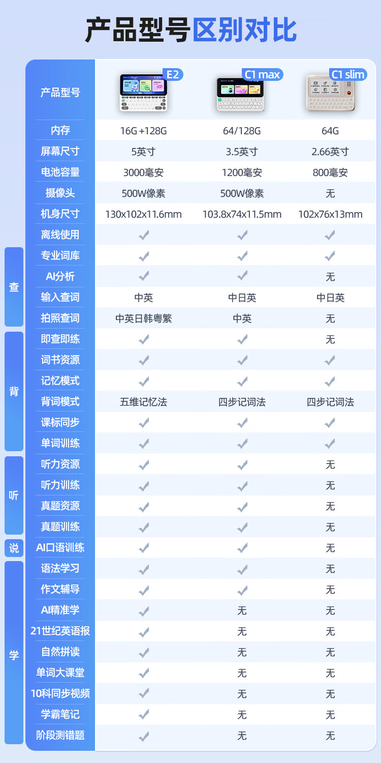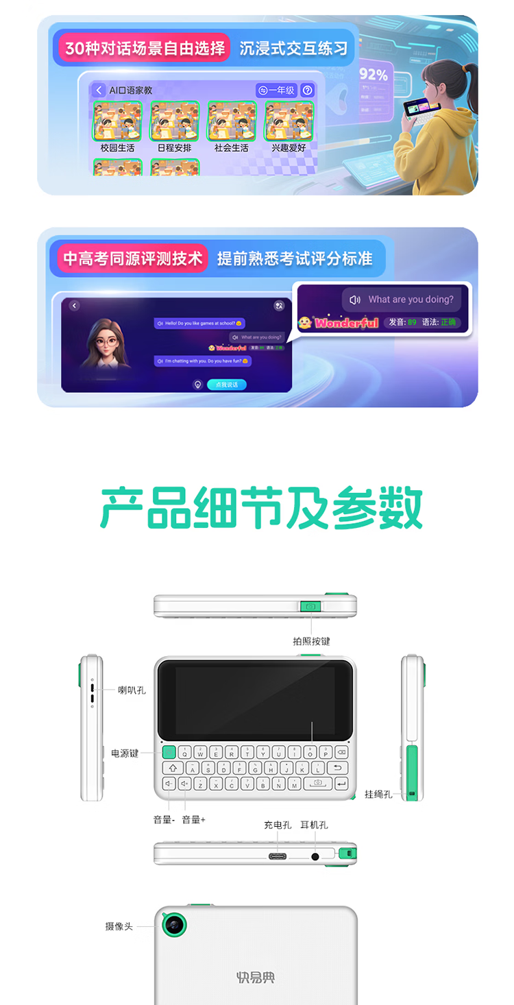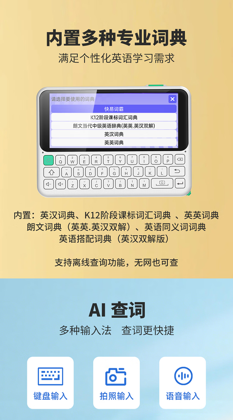 快易典(Koridy)【7天试用】AI电子词典e2英语日语学习神器新课标同步单词机小初高中考级词汇学习机孩子礼物C1max 【新升级推荐】E2 128GB