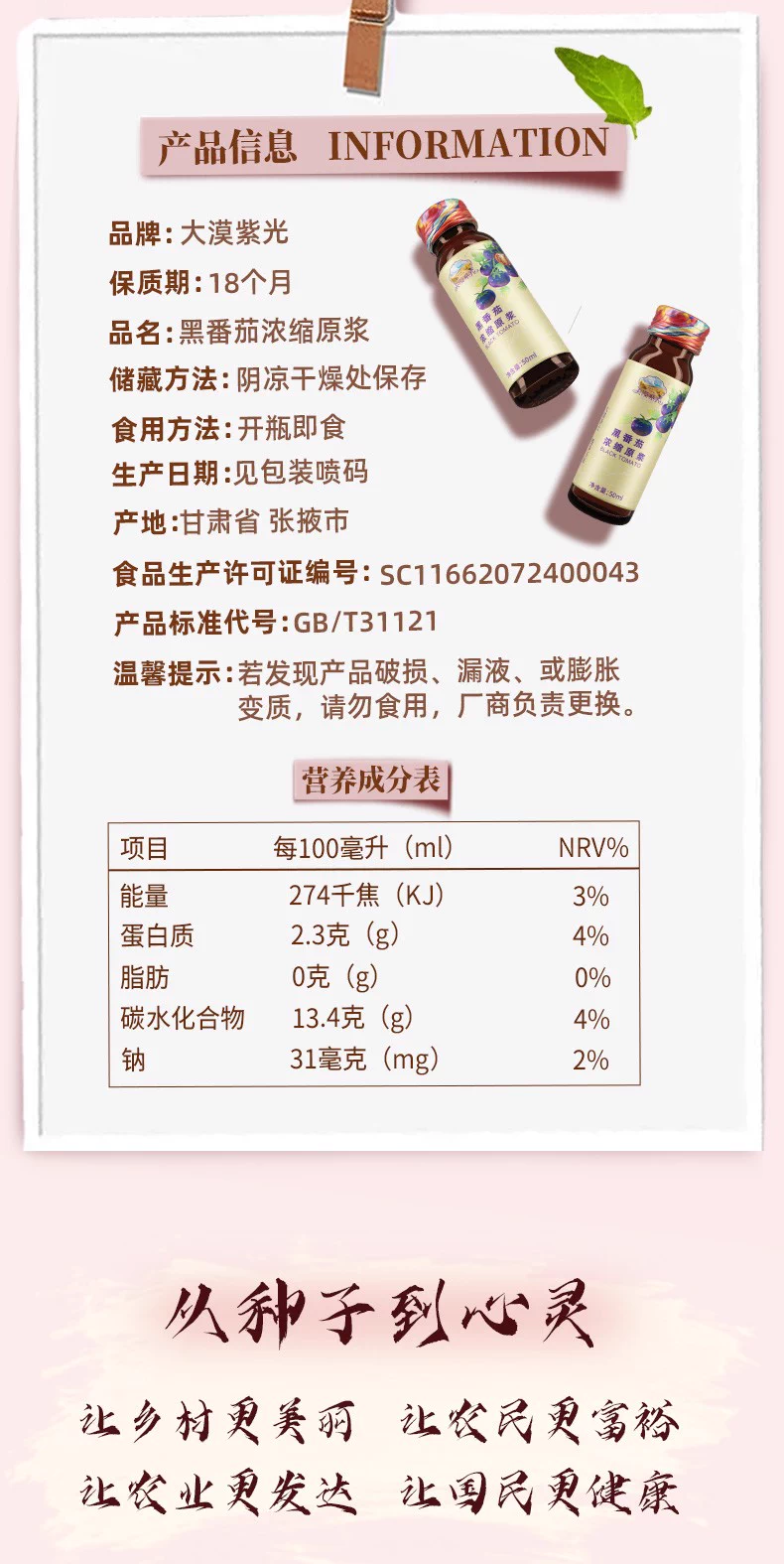 大漠紫光【高档礼品 送长辈优选】大漠紫光黑番茄浓缩原浆50ml*10/盒 单盒尝鲜装50ml*10支/盒