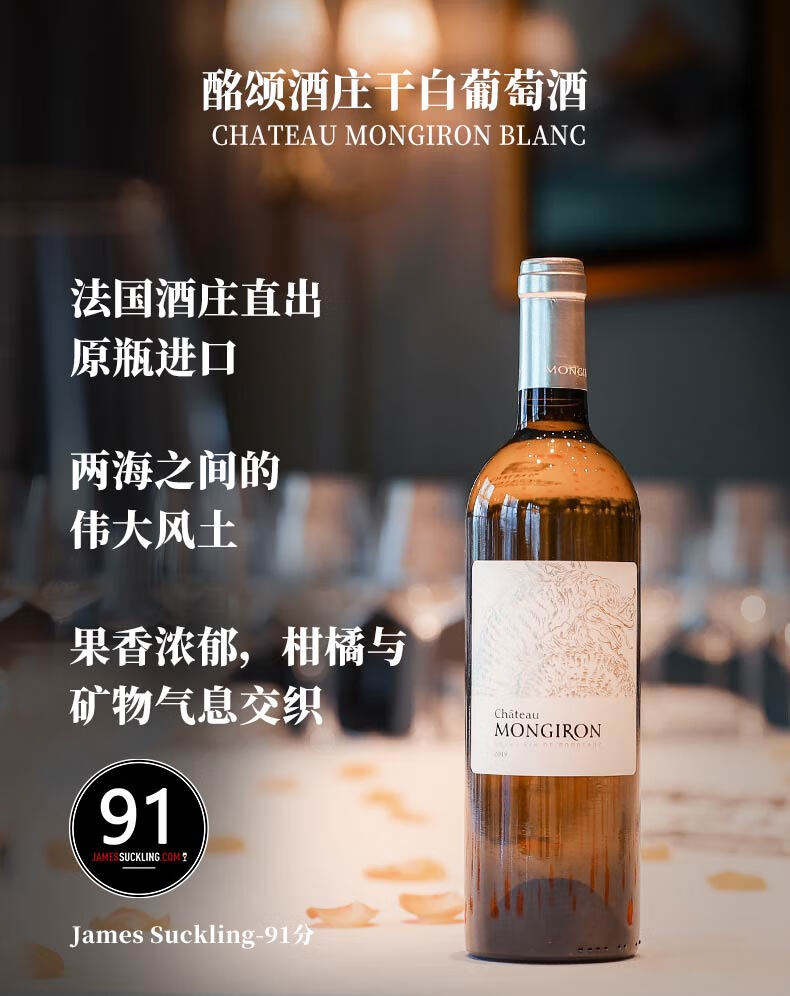 酩颂酒庄法国波尔多原装进口干白葡萄酒2019礼盒礼物送礼 2支装