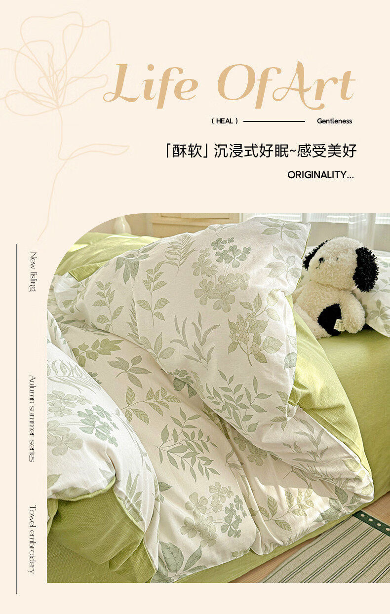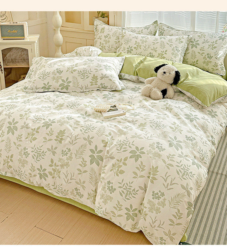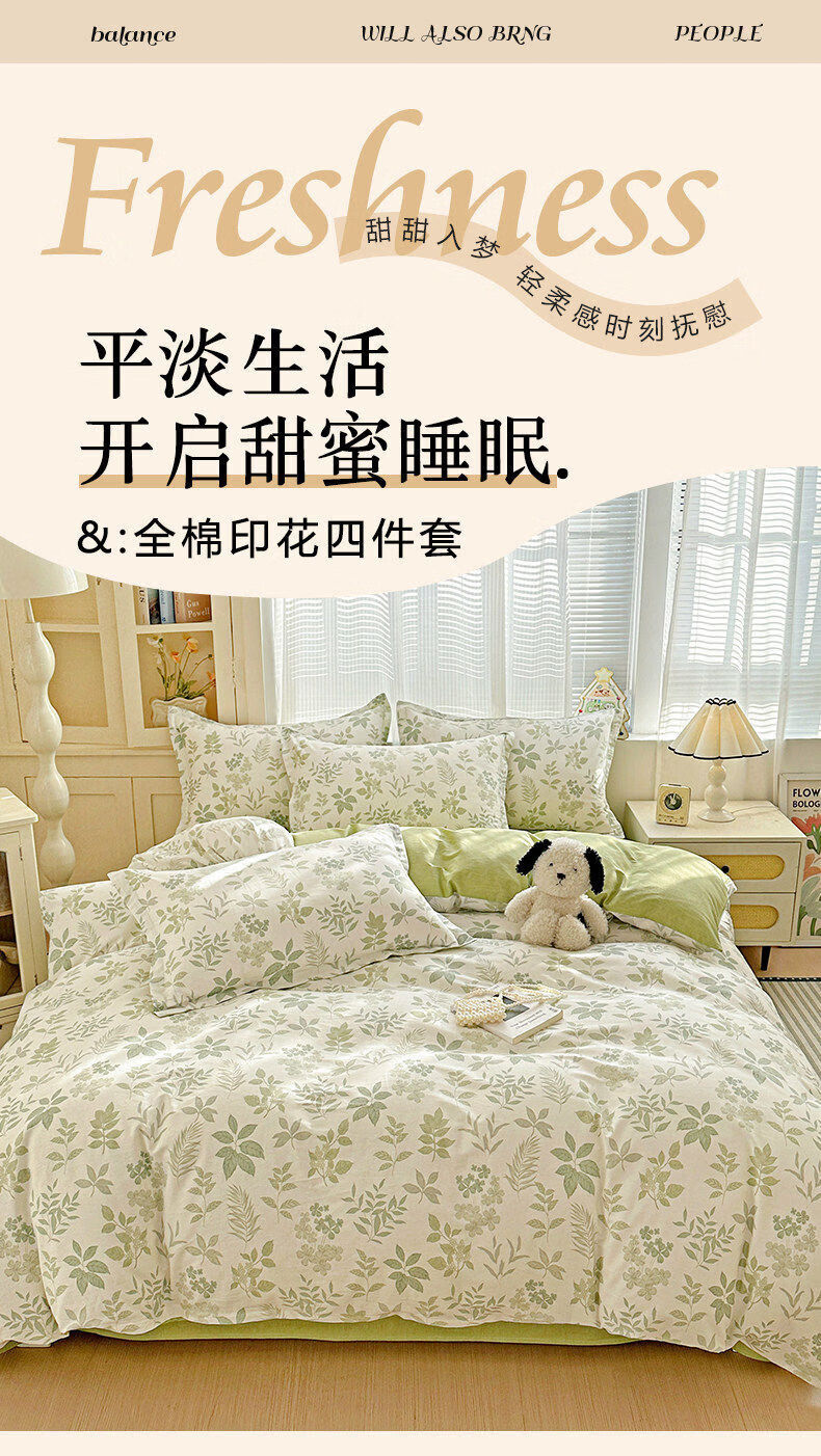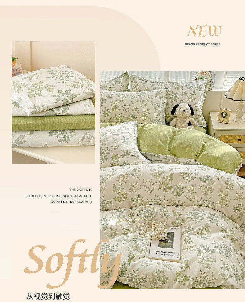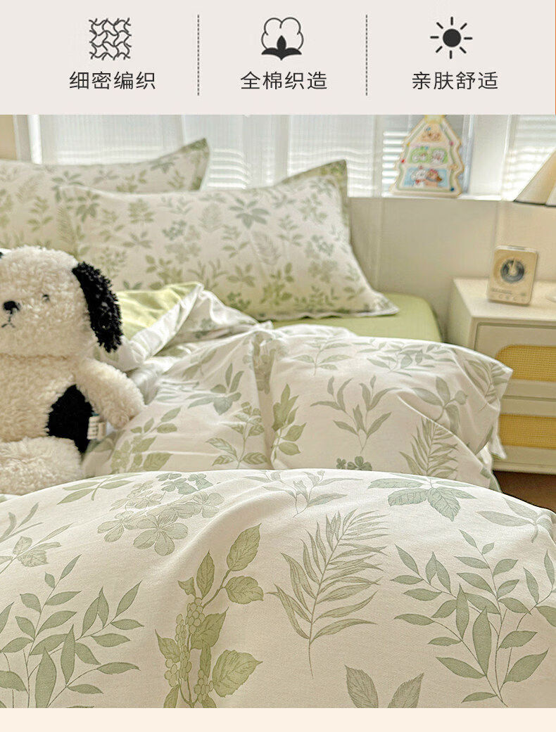 猫人小清新全棉床上四件套2026新款纯棉保暖床单被套罩三件套床品 星奈【全棉面料亲肤柔软】 床单款 1.2m床三件套【适150*200cm被芯】