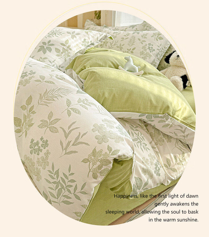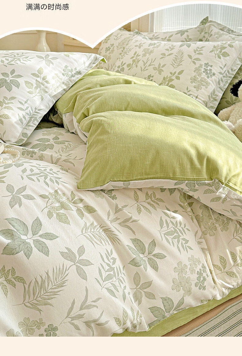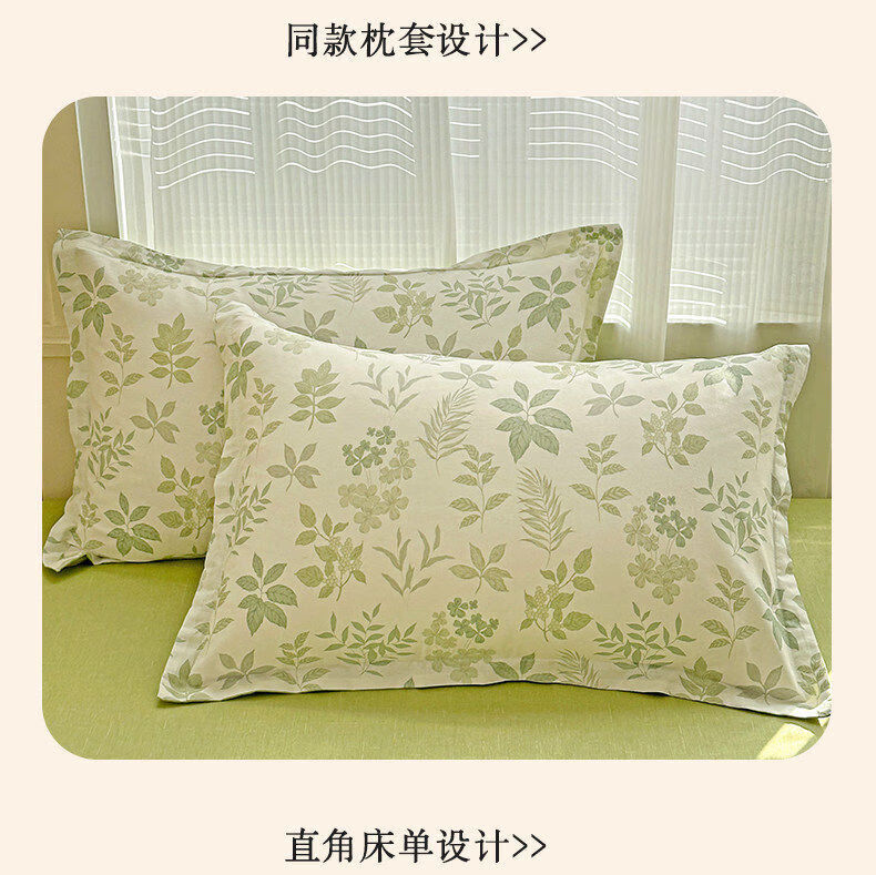 猫人(MiiOW)全棉床上四件套纯棉小清新床单被套罩单双人宿舍床品三件套 洛克庄园-绿 1.8 床笠款 四件套(被套200*230cm)