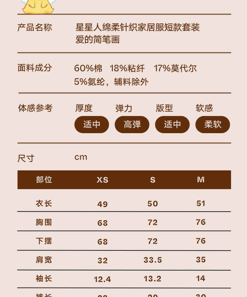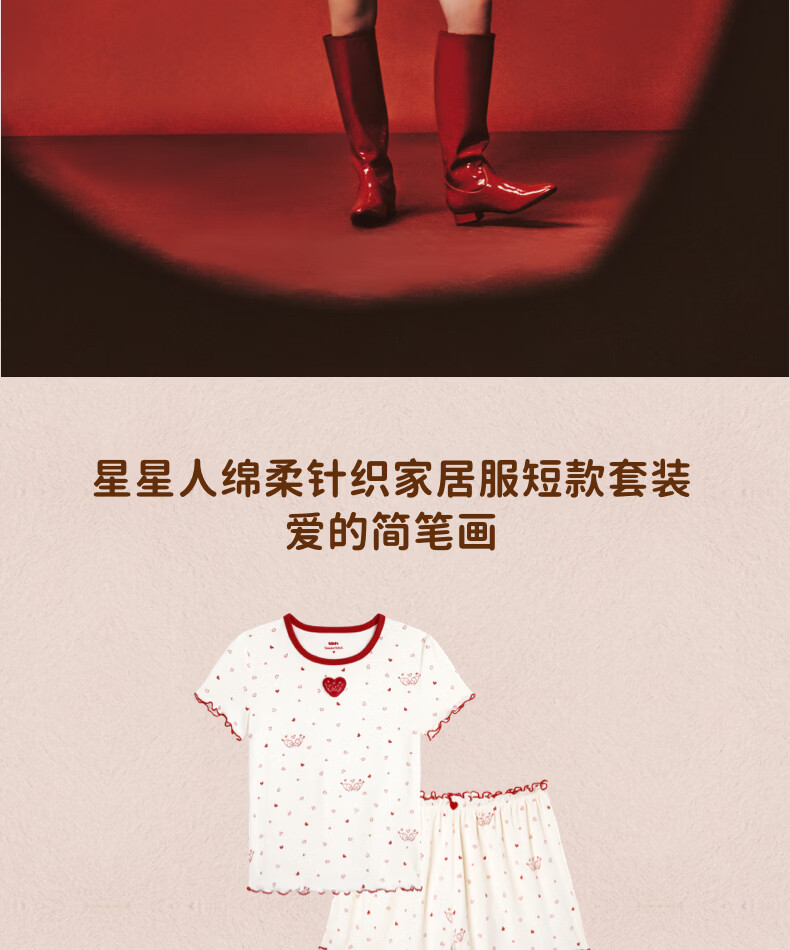 野兽派家居(tbh)星星人绵柔针织家居服短款套装可外穿睡衣女 星星人绵柔针织家居服短款套装 爱的简笔画 M
