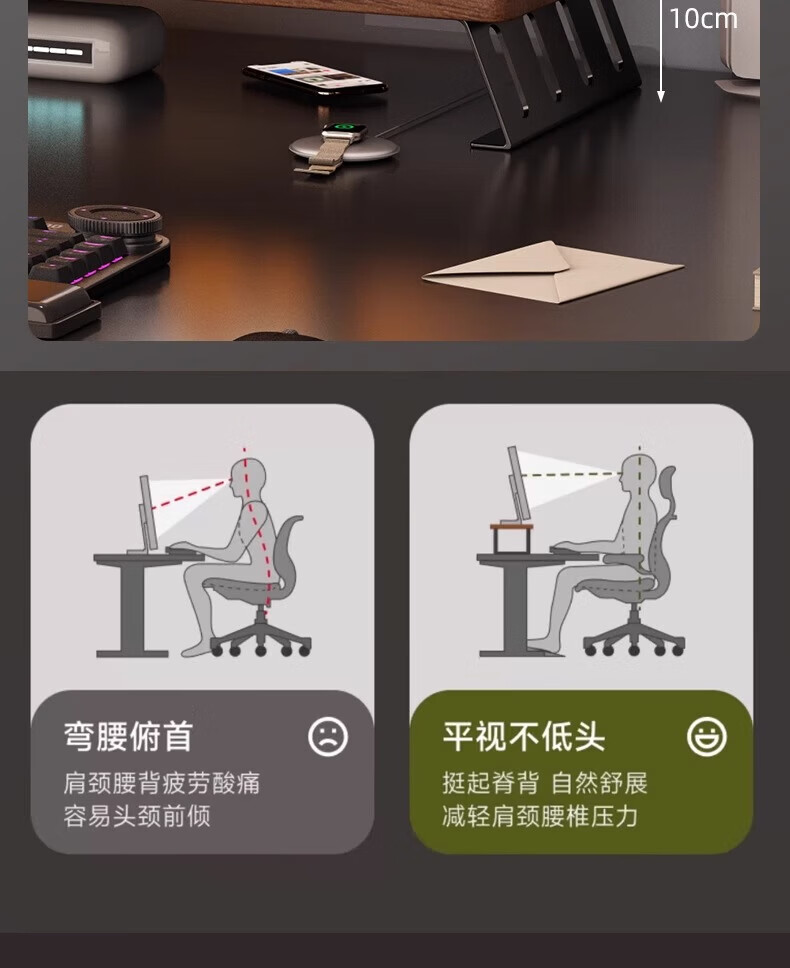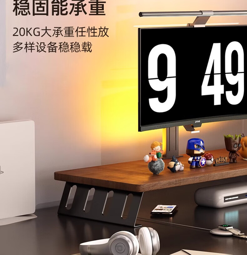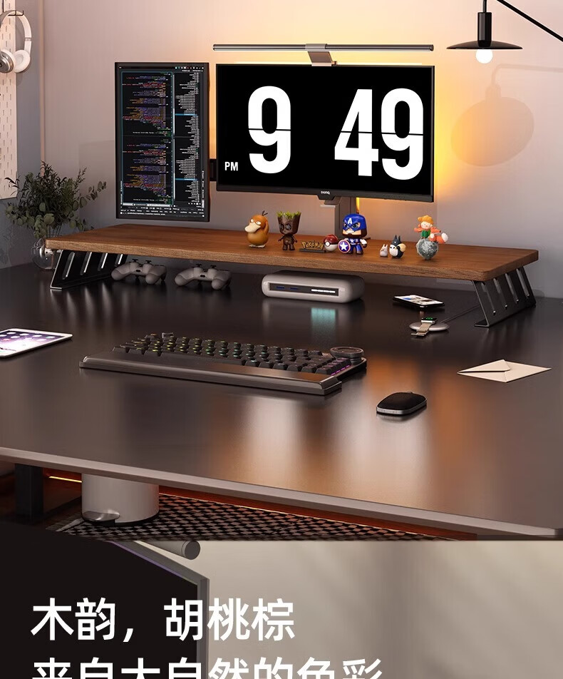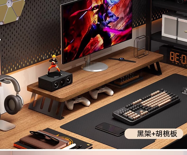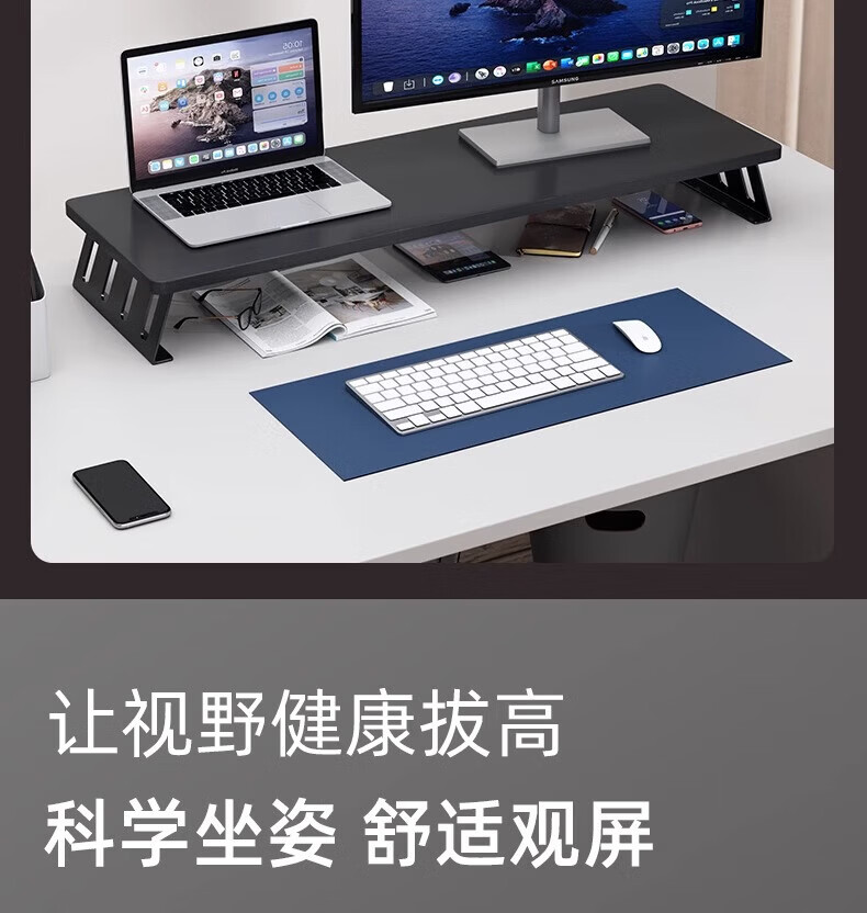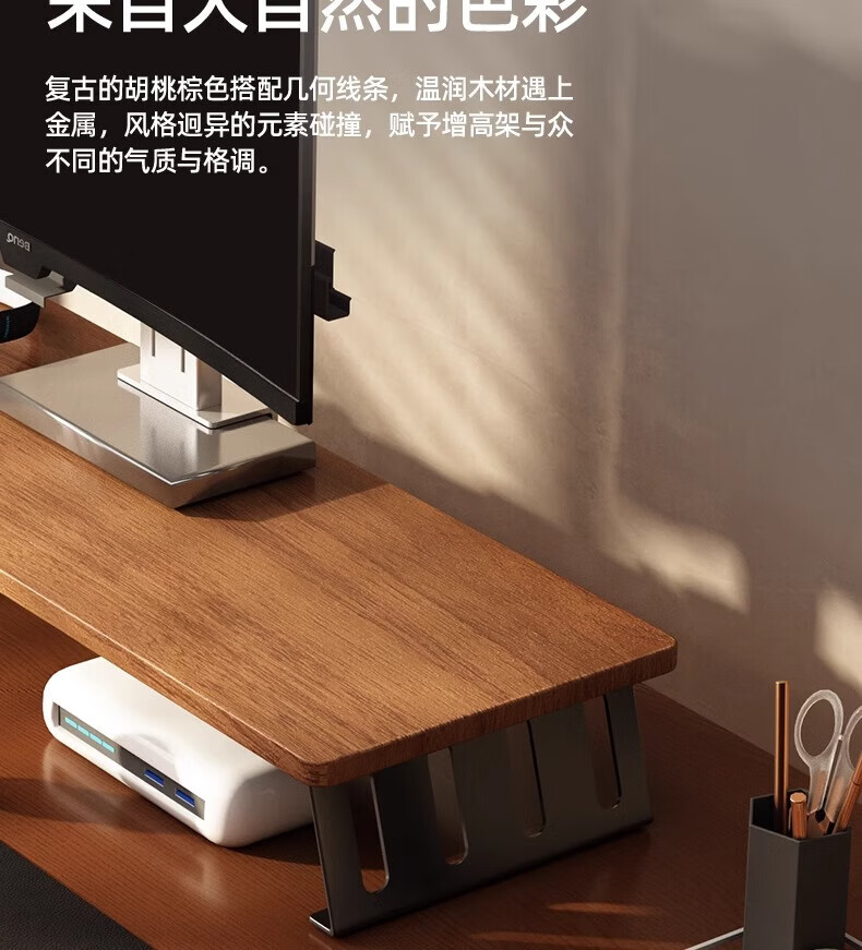 馨婺家台式电脑增高架显示器屏幕底座支撑架子办公室工位桌面增高置物架 胡桃色-40*20【升级加固】稳固铁腿