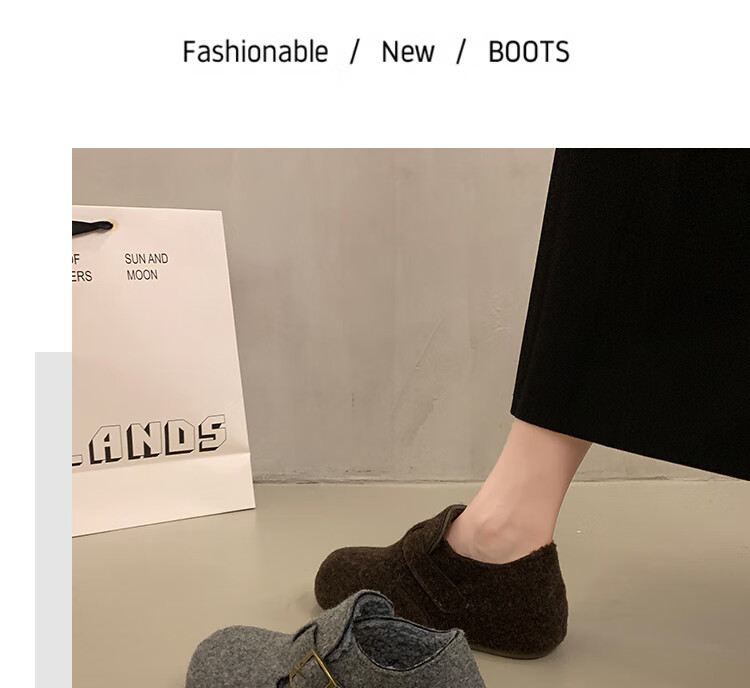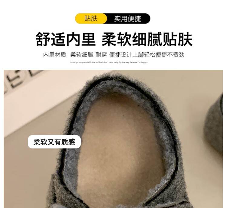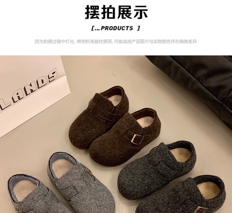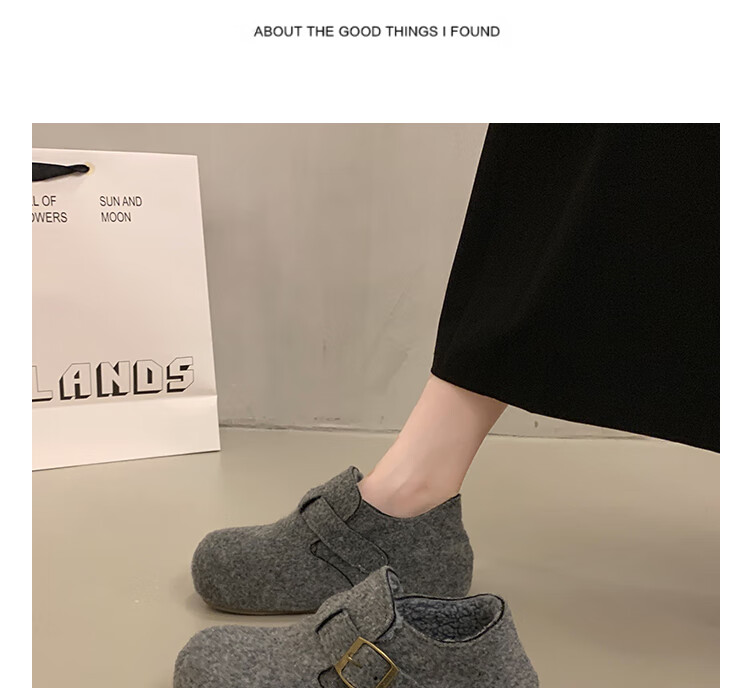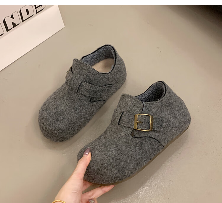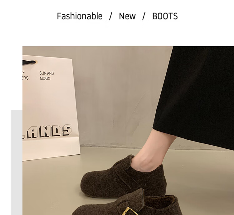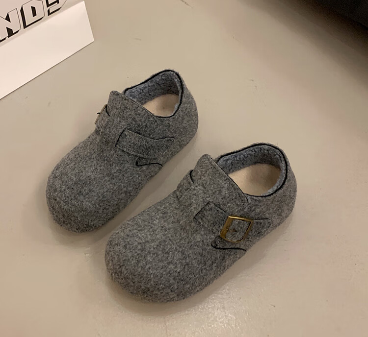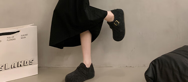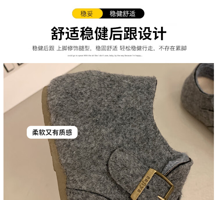 稻草人(MEXICAN)内增高毛呢毛毛鞋女款2026新款秋冬一脚蹬加绒保暖勃肯棉鞋雪地靴 深灰色 35