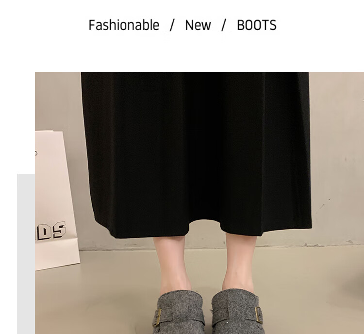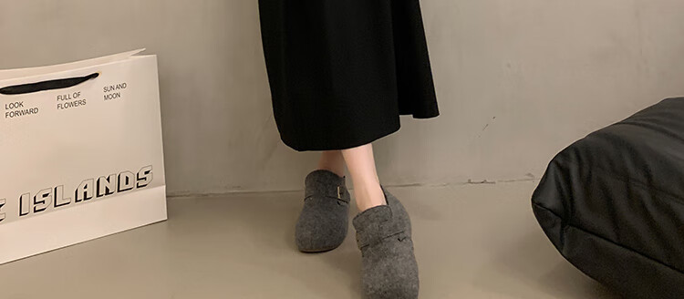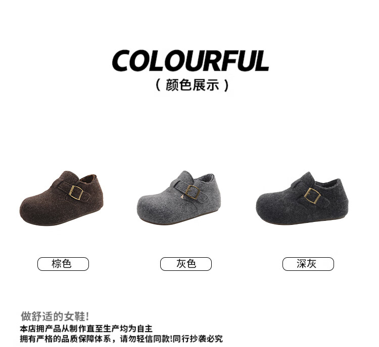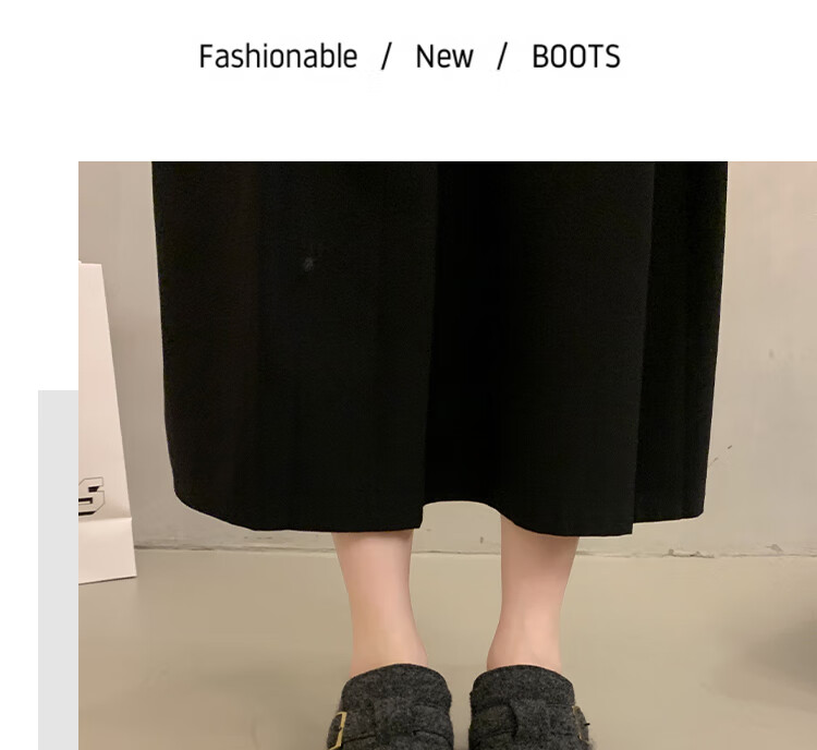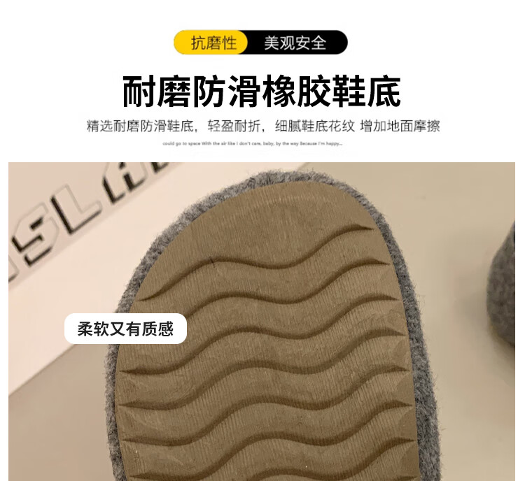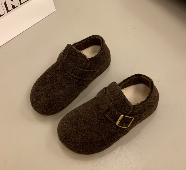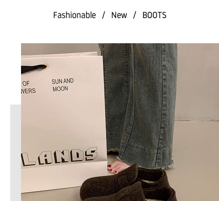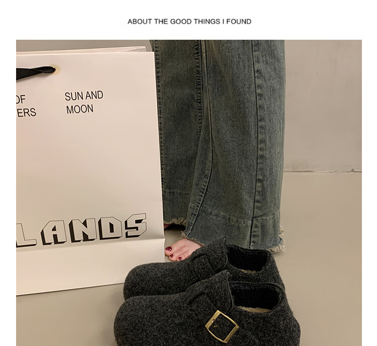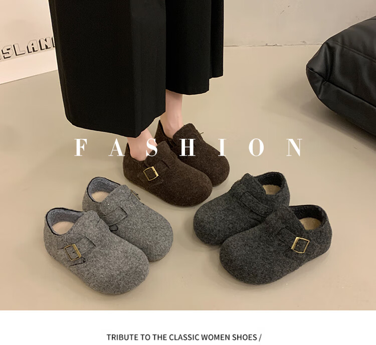 稻草人(MEXICAN)内增高毛呢毛毛鞋女款2026新款秋冬一脚蹬加绒保暖勃肯棉鞋雪地靴 深灰色 35