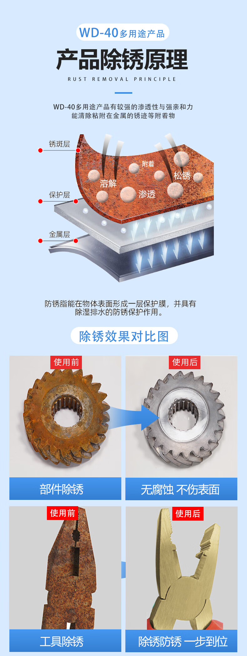 WD-40除锈剂多用途金属合页清洗润滑油门锁WD40防锈剂螺丝松动剂 WD-40除锈润滑油 40ML装