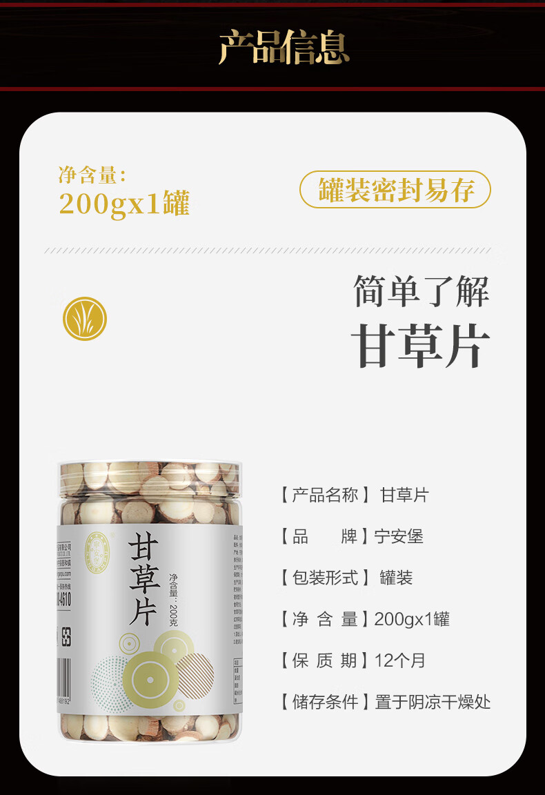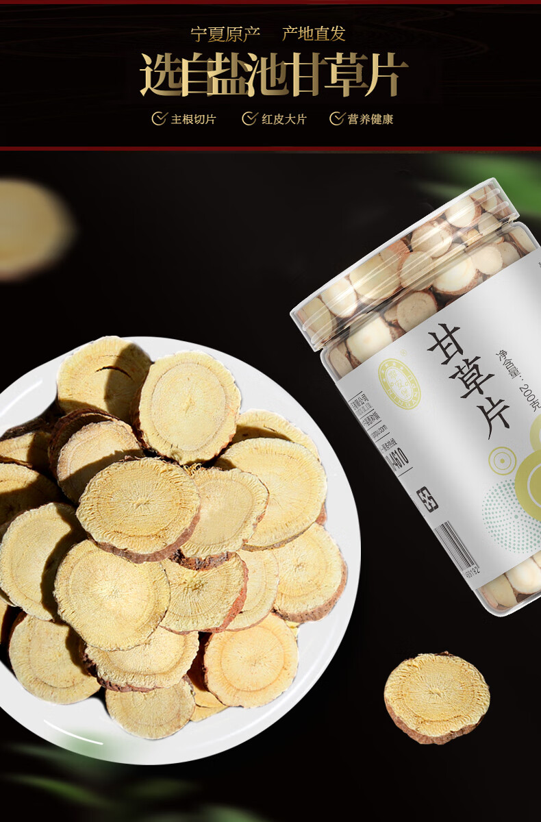 宁安堡甘草片 宁夏盐池甘草圆片三伏天养生汤茶泡水甘草片 200克*2罐