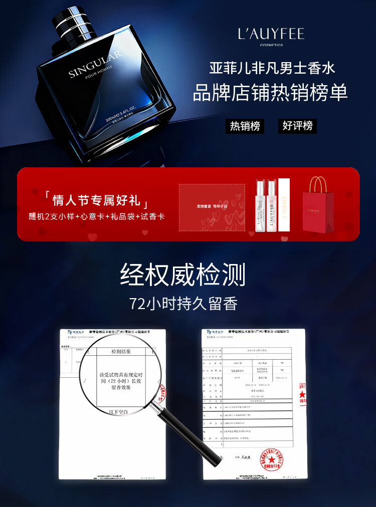 亞菲兒非凡男士香水淡香水100ml古龙男士香水持久留香送男友情人节礼物