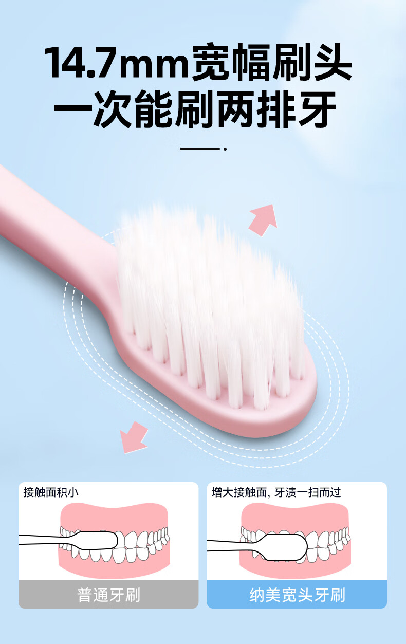 纳美小宽头牙刷软毛成人去渍护龈家庭组合装情侣女男士专用官方旗舰店 多支优惠 10支