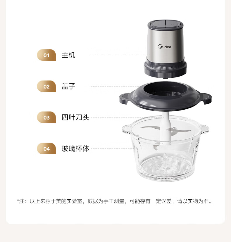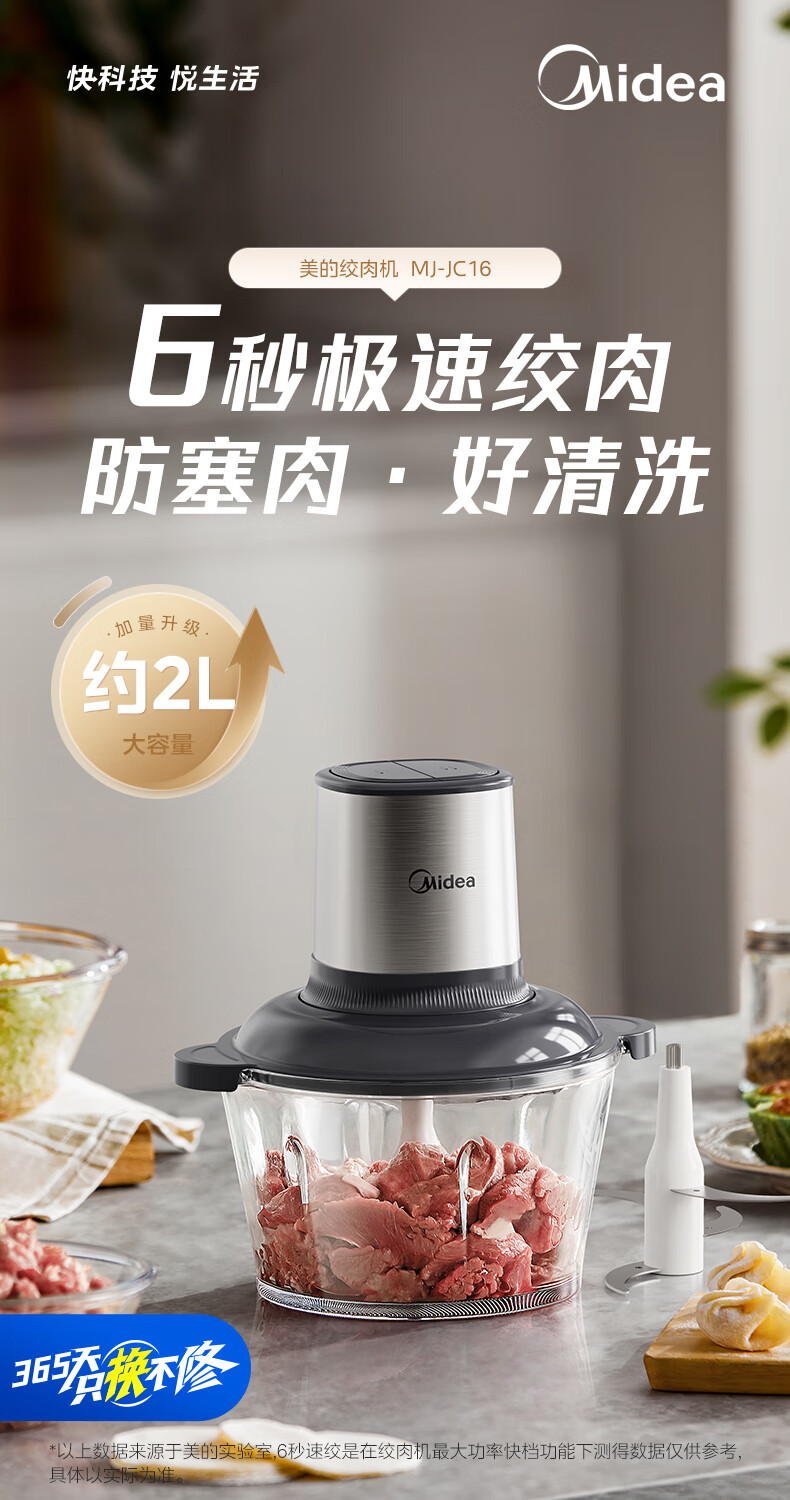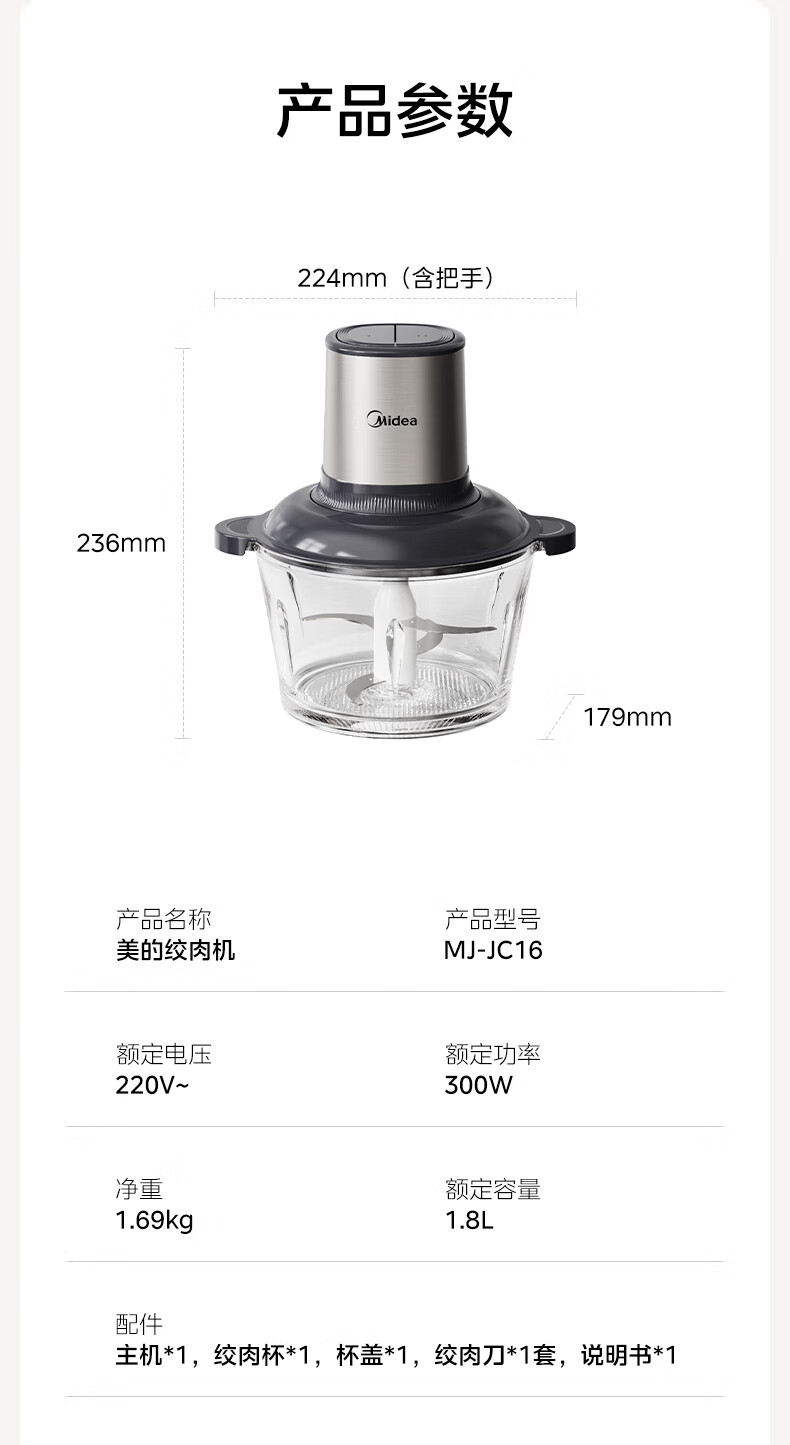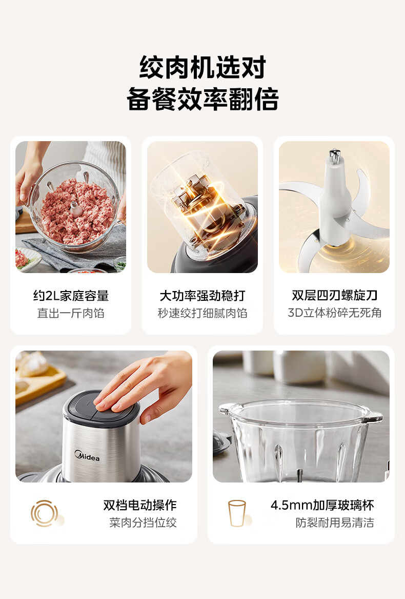 美的(Midea)绞肉机家用多功能小型电动家用搅拌绞肉绞菜馅机料理碎肉玻璃全自动打蒜器大容量JC16