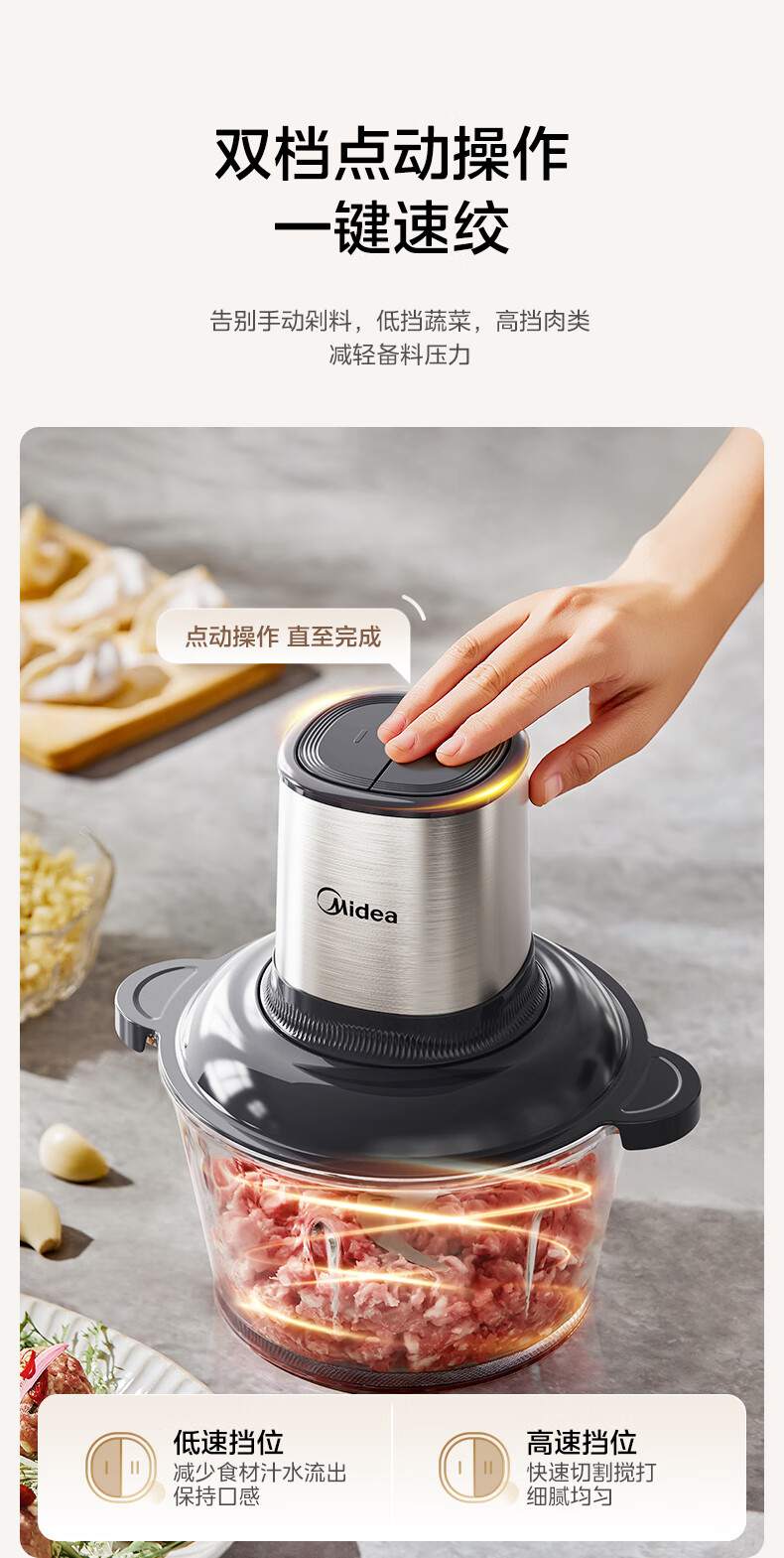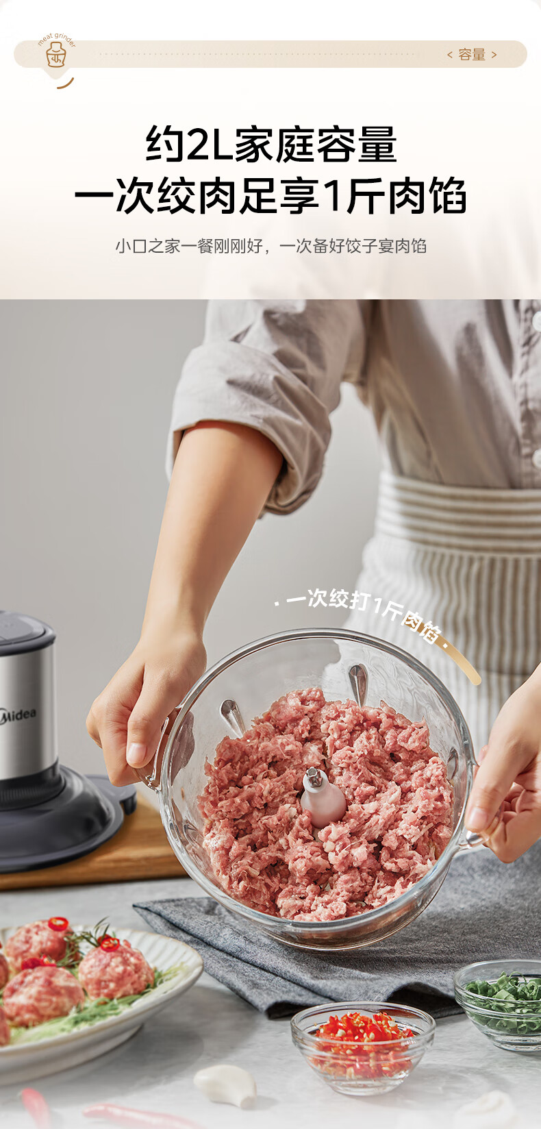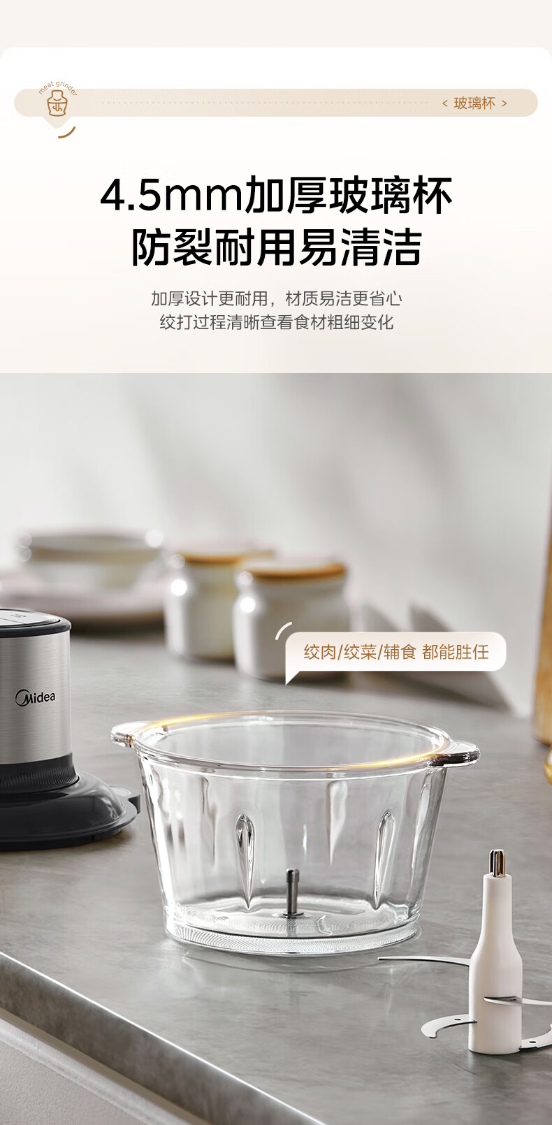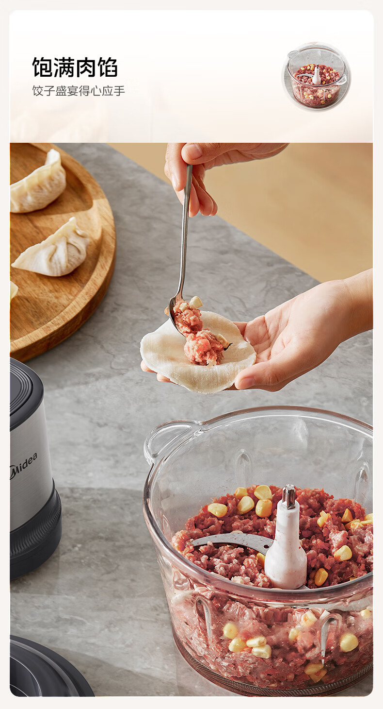美的(Midea)绞肉机家用多功能小型电动家用搅拌绞肉绞菜馅机料理碎肉玻璃全自动打蒜器大容量JC16