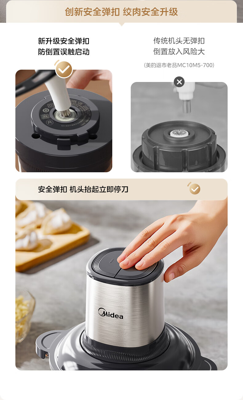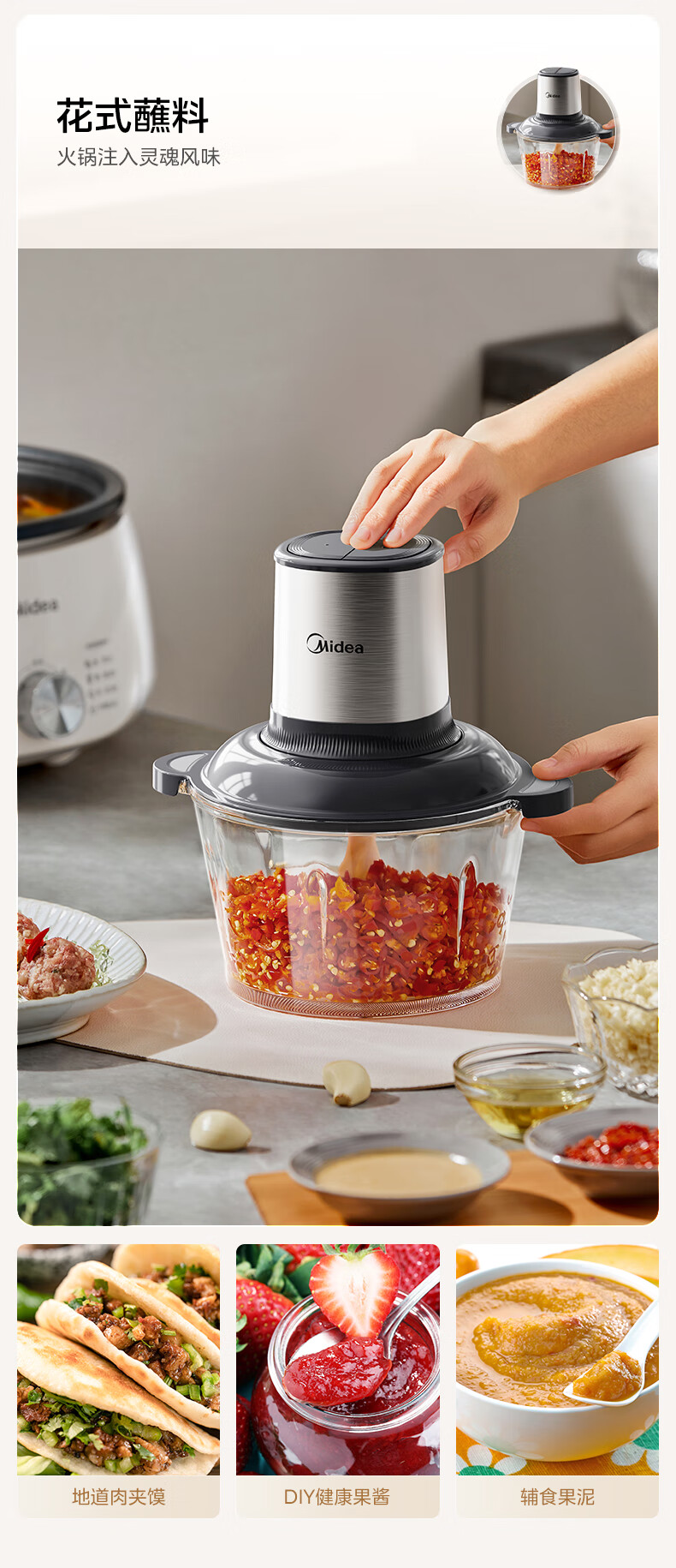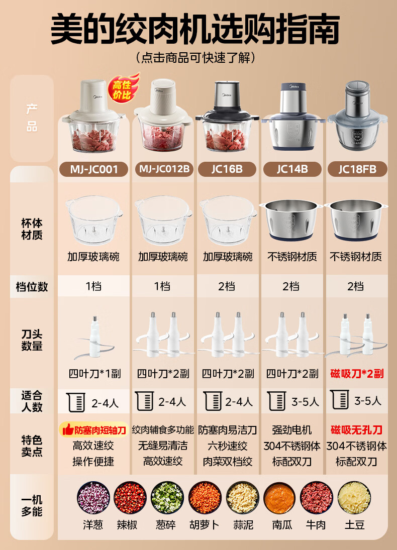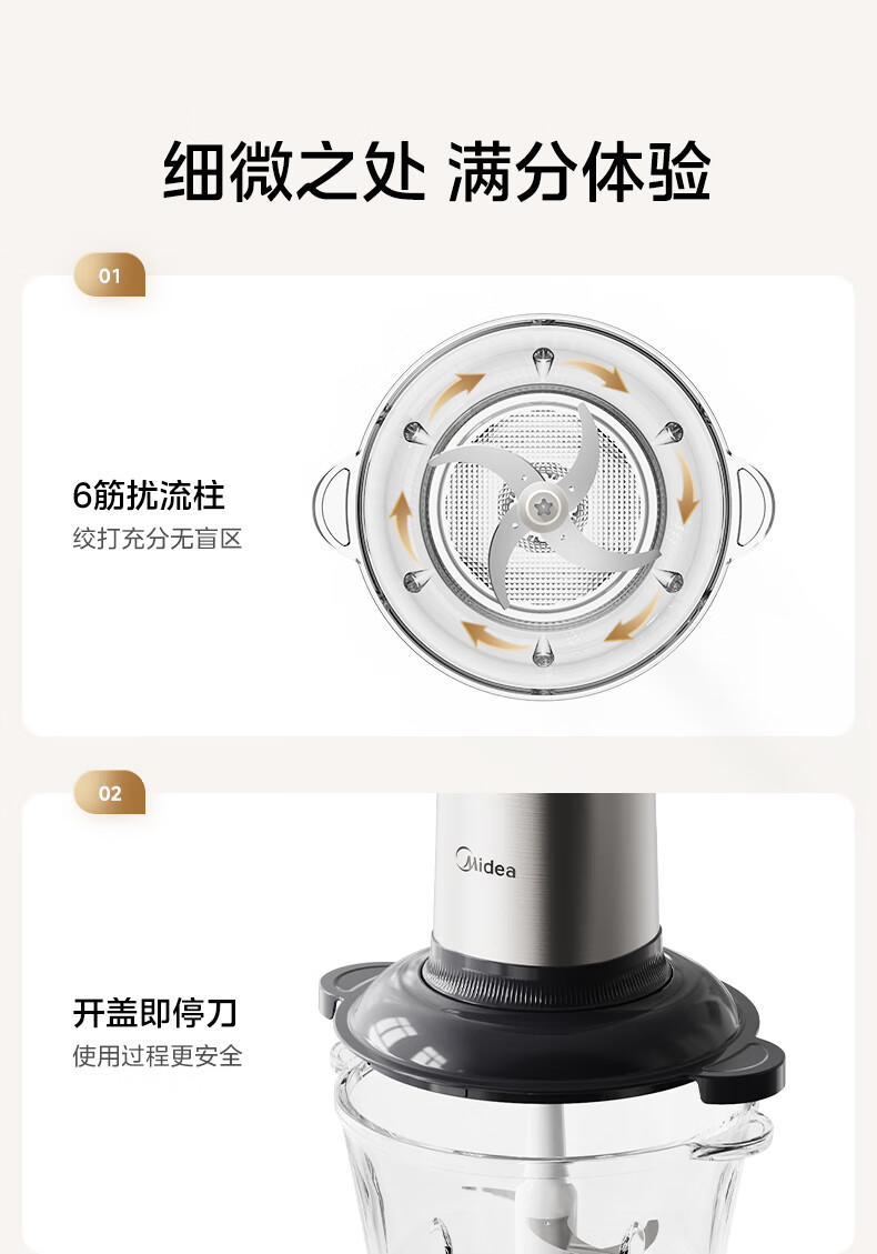 美的(Midea)绞肉机家用多功能小型电动家用搅拌绞肉绞菜馅机料理碎肉玻璃全自动打蒜器大容量JC16