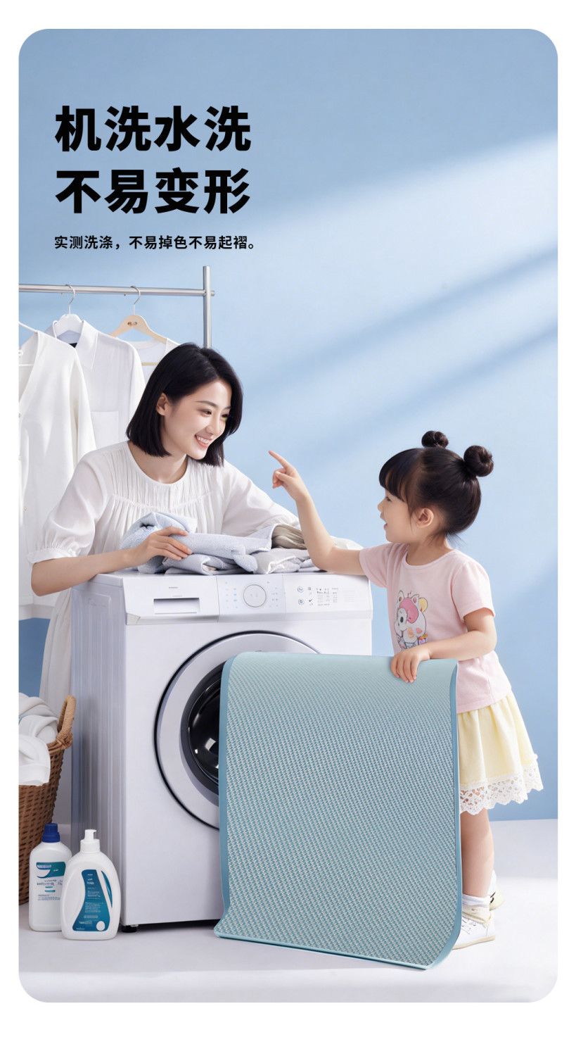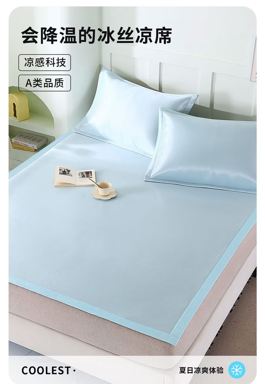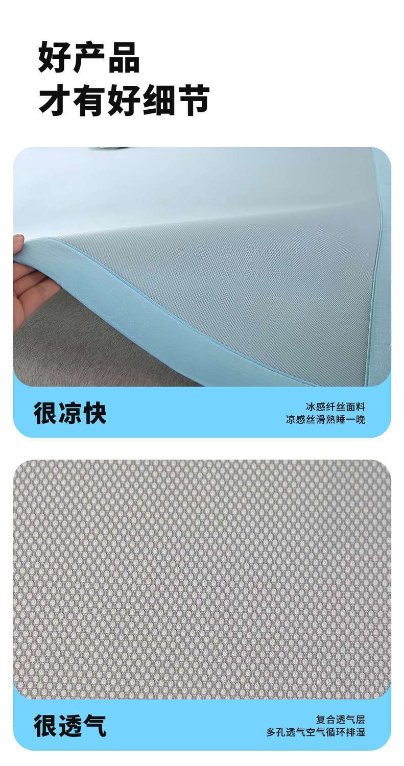 高睿冰丝凉席夏季家用可机水洗a类母婴级床垫软席子学生宿舍单人床笠 升级抗菌款-清透蓝【凉而不冰透气凉席】 宽150cmx长200cm【含枕套2只】