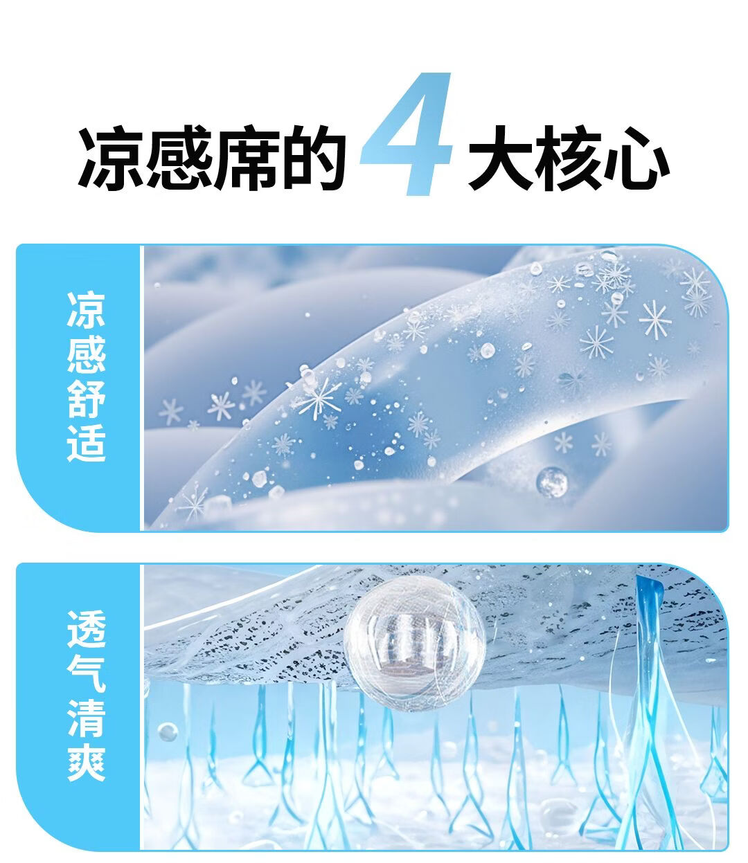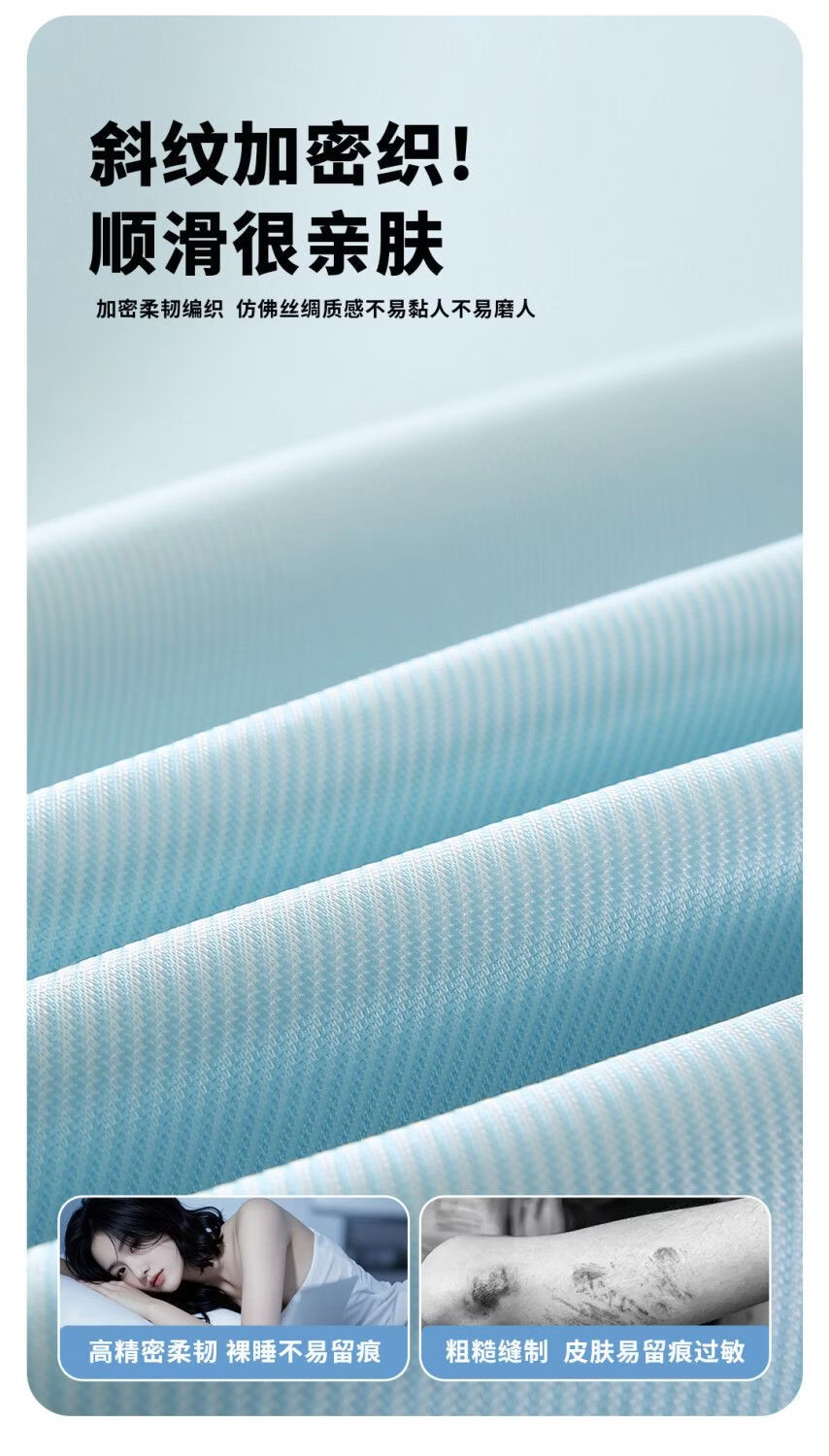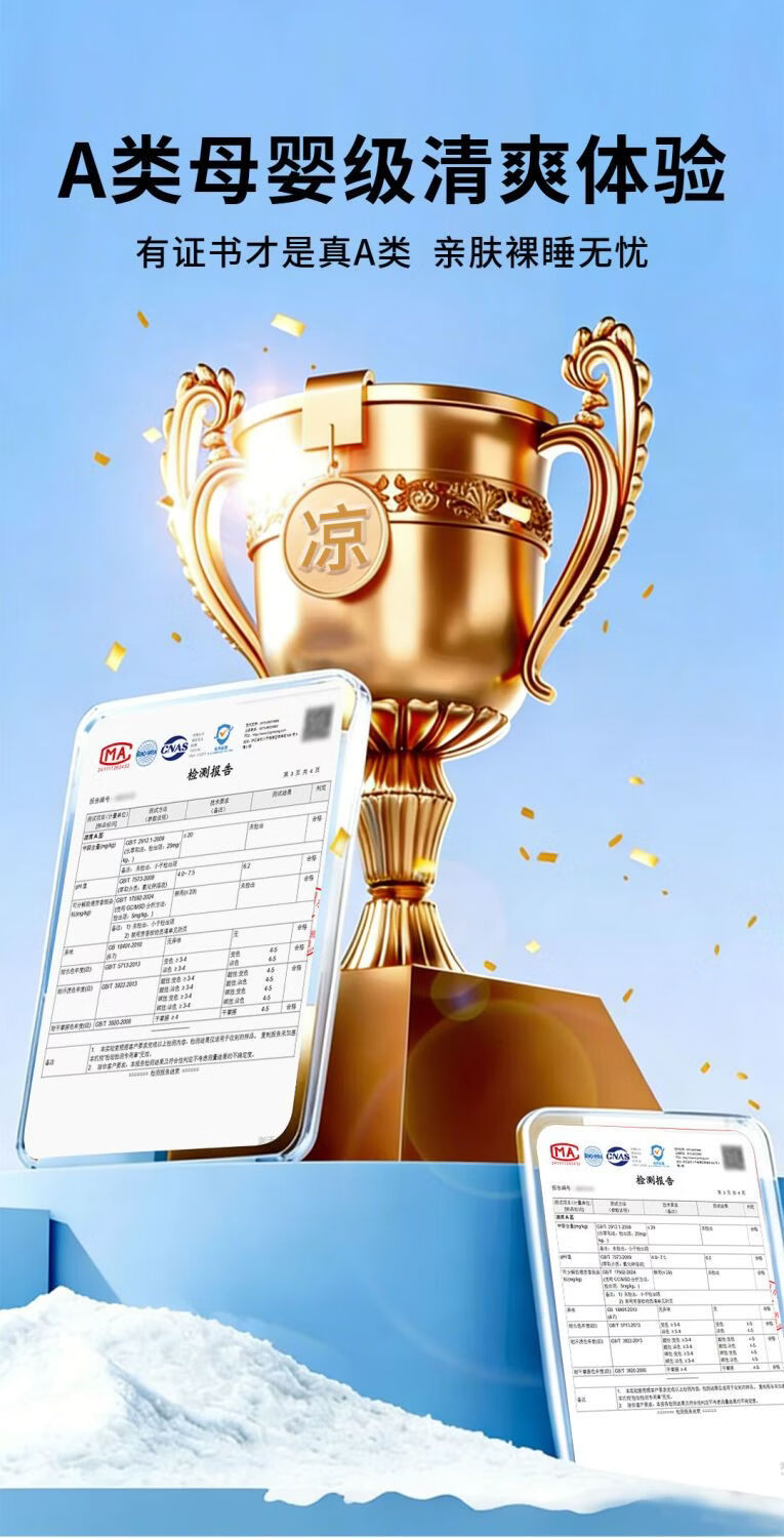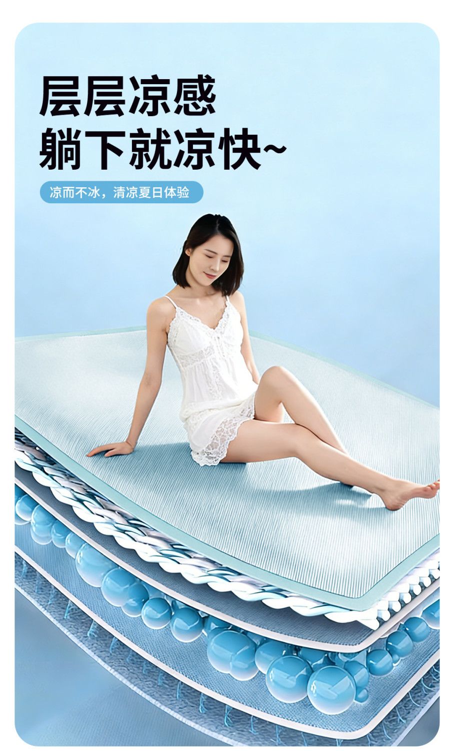 高睿冰丝凉席夏季家用可机水洗a类母婴级床垫软席子学生宿舍单人床笠 升级抗菌款-清透蓝【凉而不冰透气凉席】 宽150cmx长200cm【含枕套2只】