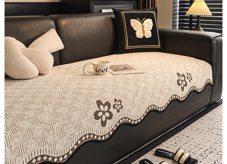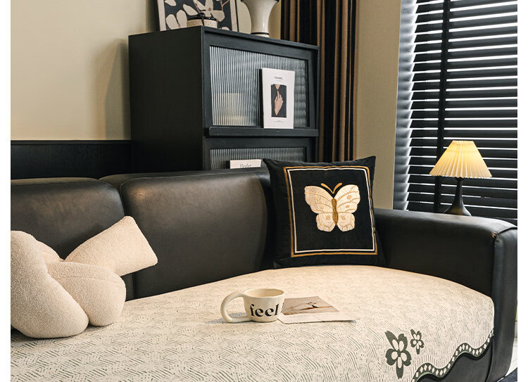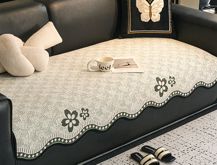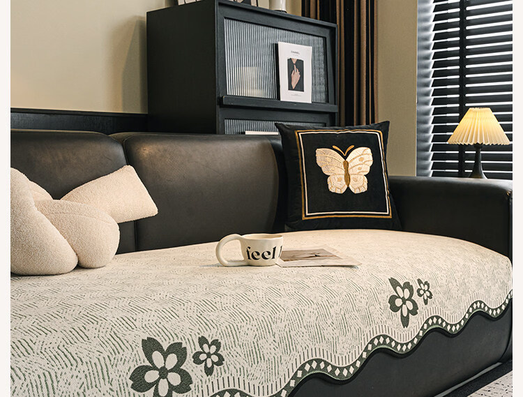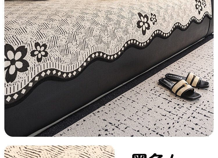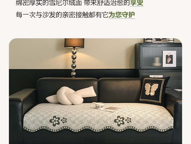 正圣大黑牛沙发垫四季通用防滑2026年新款雪尼尔防猫抓皮沙发专用垫 幸运花-黑色【四季通用雪尼尔】 70cm*70cm (扶手/靠背)