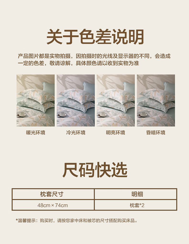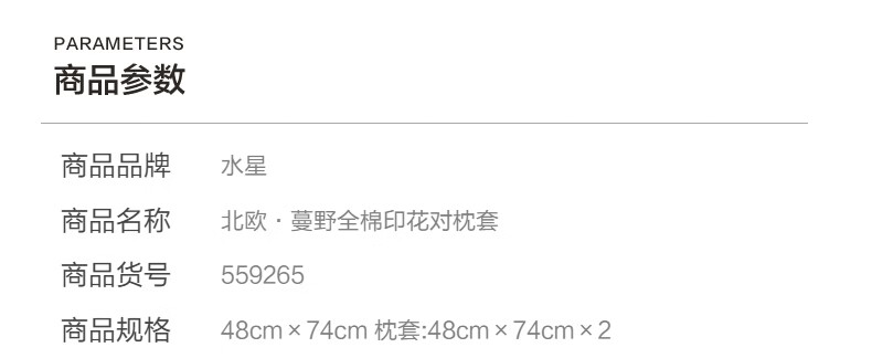 水星家纺北欧·蔓野全棉印花对枕套 北欧·蔓野全棉印花对枕套 一对 48cm×74cm