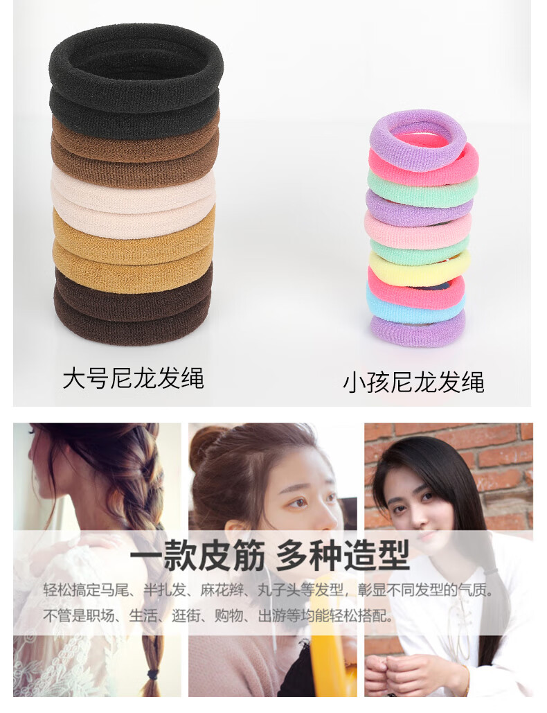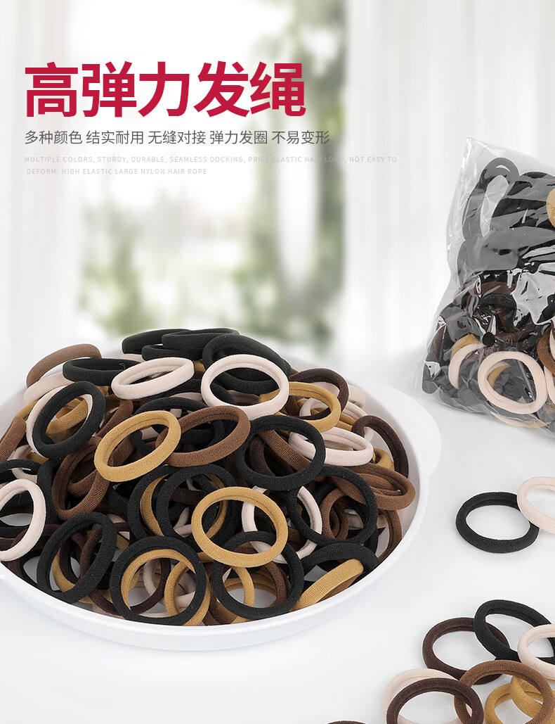 发圈发绳无接缝高弹力成人加粗皮筋女扎头无痕头绳2025新款高端 混色高弹力发圈200条