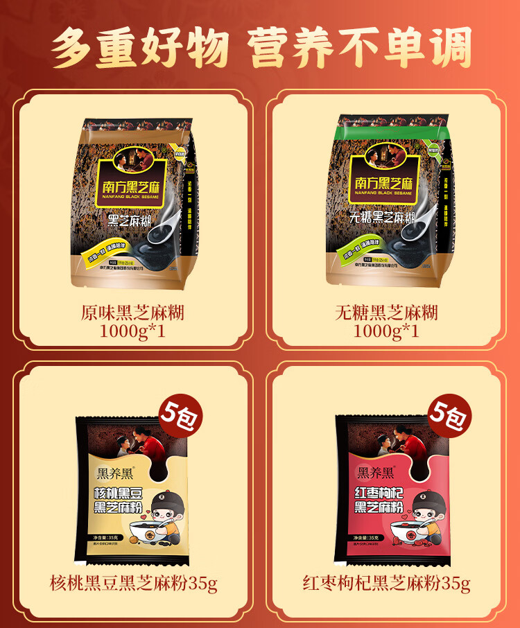 南方黑芝麻囤货家庭装礼盒营养代餐送礼 原味芝麻糊礼盒 1575g*1箱