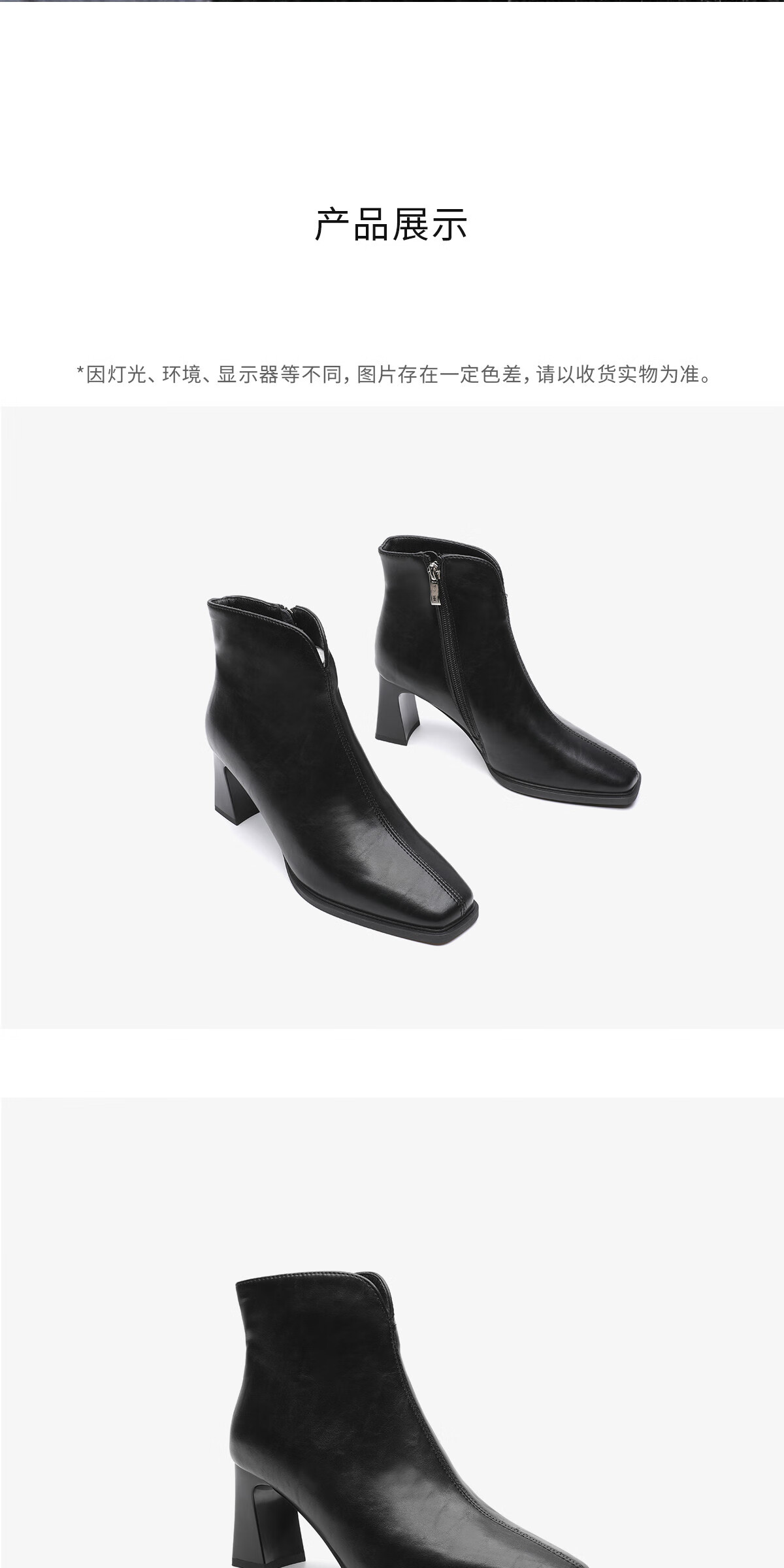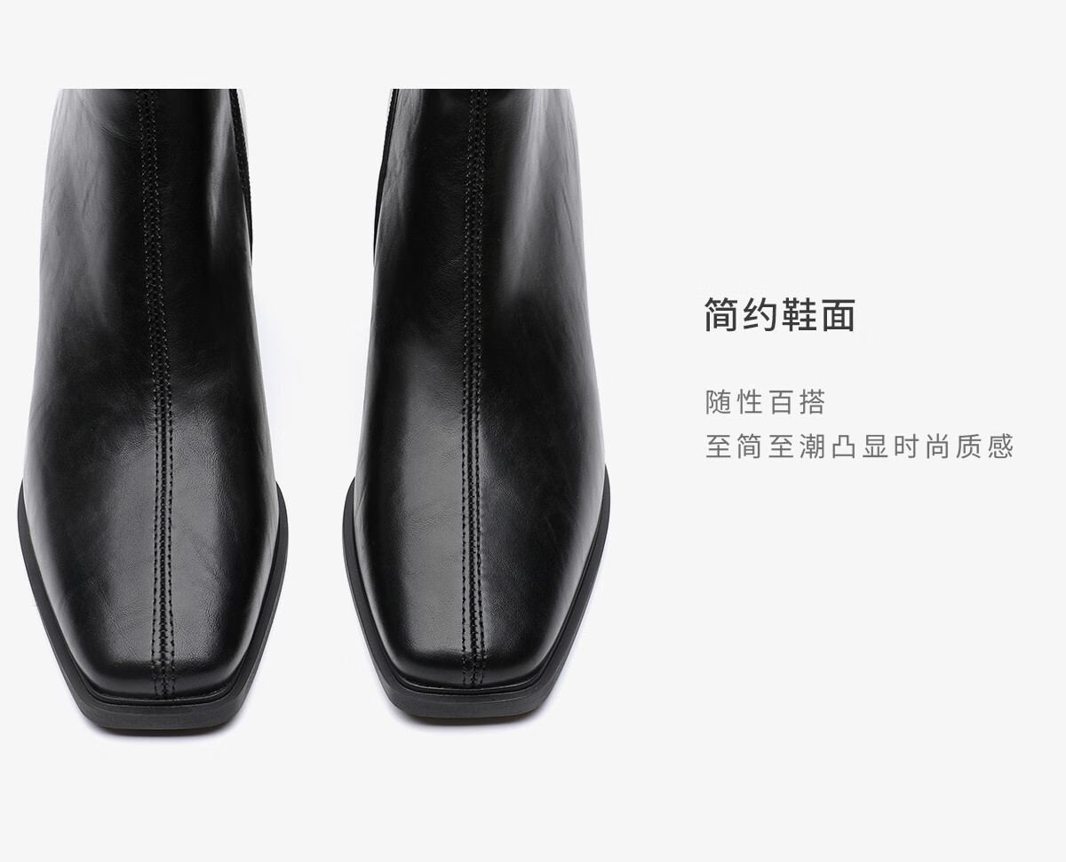 月芽儿时装靴2025冬季新款法式方头短靴女显瘦百搭短筒瘦瘦靴 绒里黑色01T 34