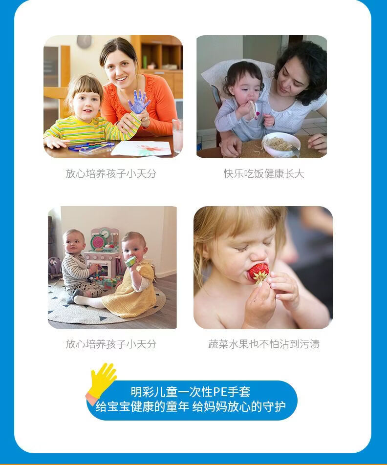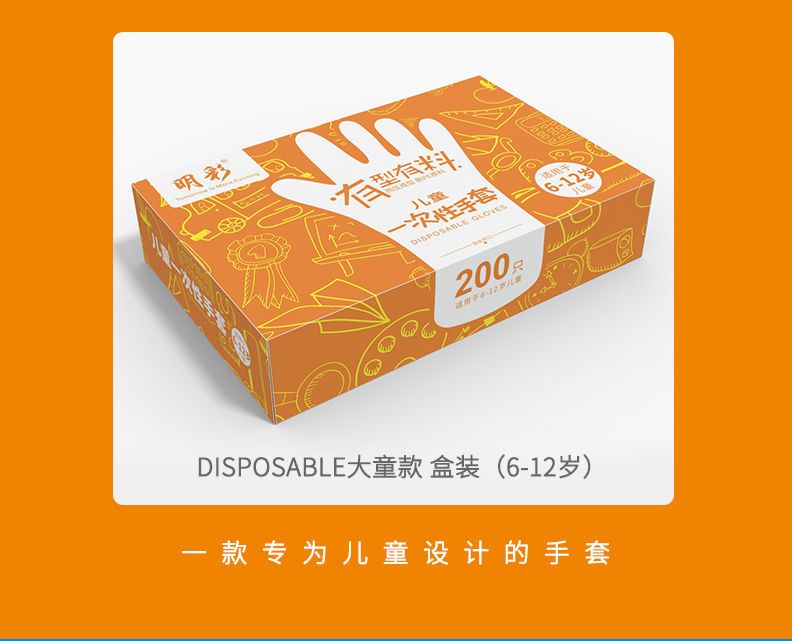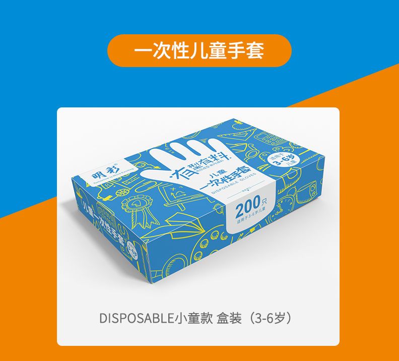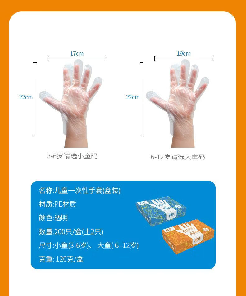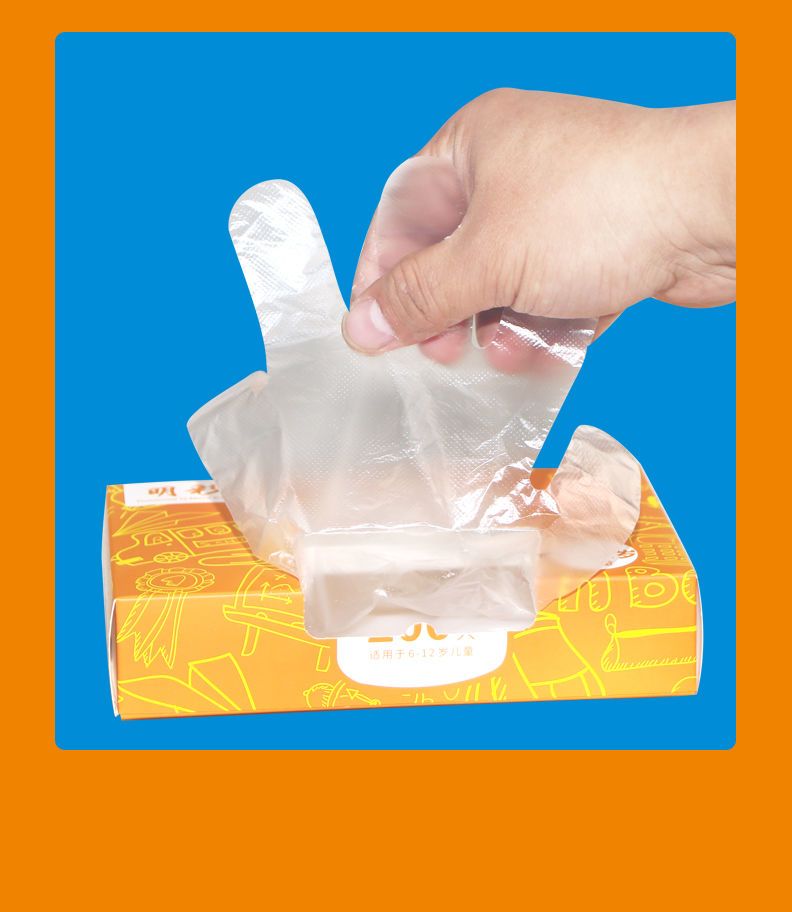 小红书同款小孩防护隔离透明AA 小童码3-6岁100只(共1包) 儿童一次性手套PE塑料盒装