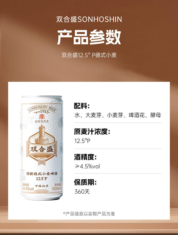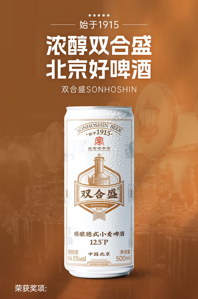 双合盛精酿啤酒 12.5°P德式小麦白啤罐装 百年老字号 麦香浓郁 500mL 12罐 整箱装 双箱装