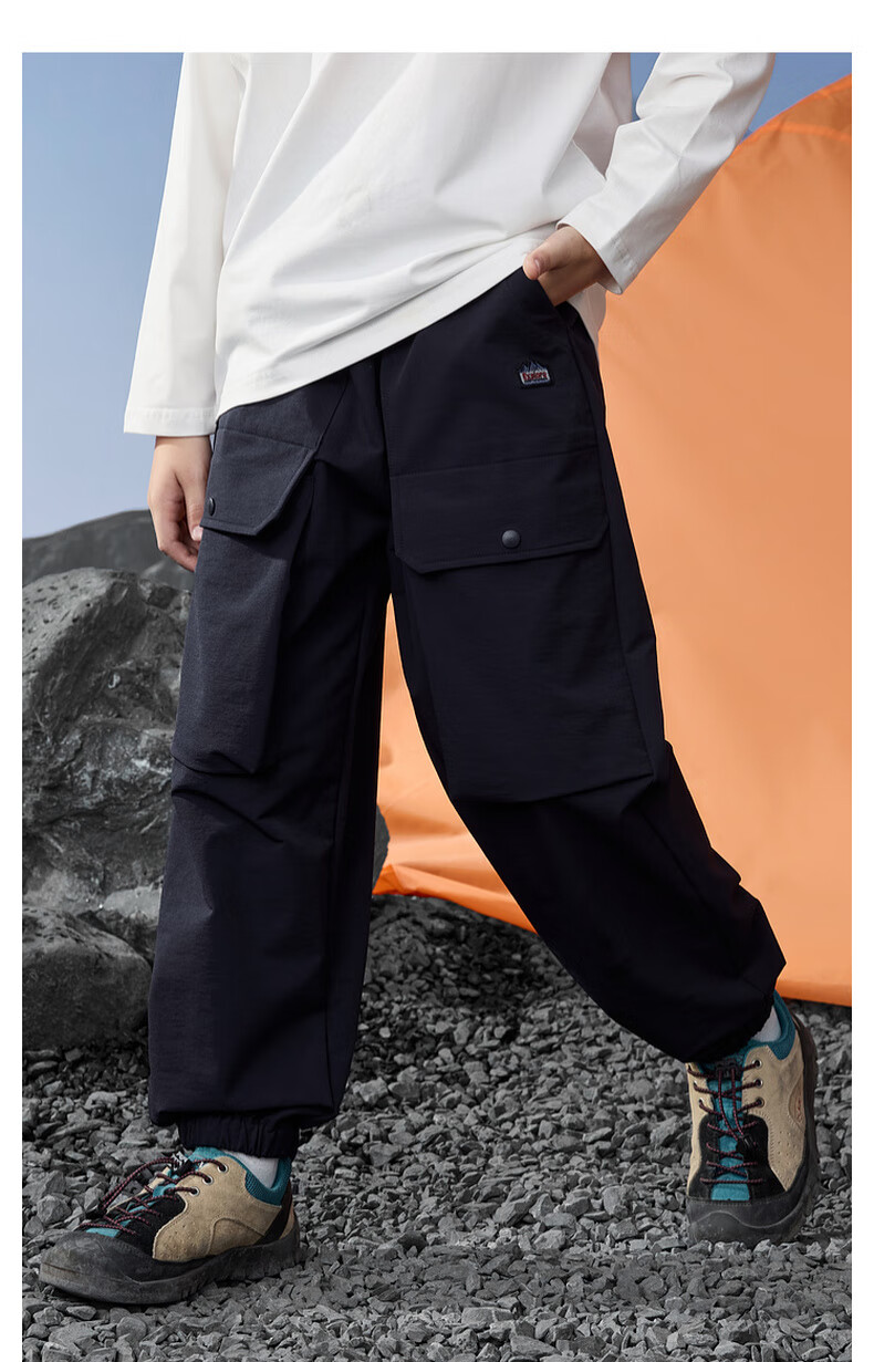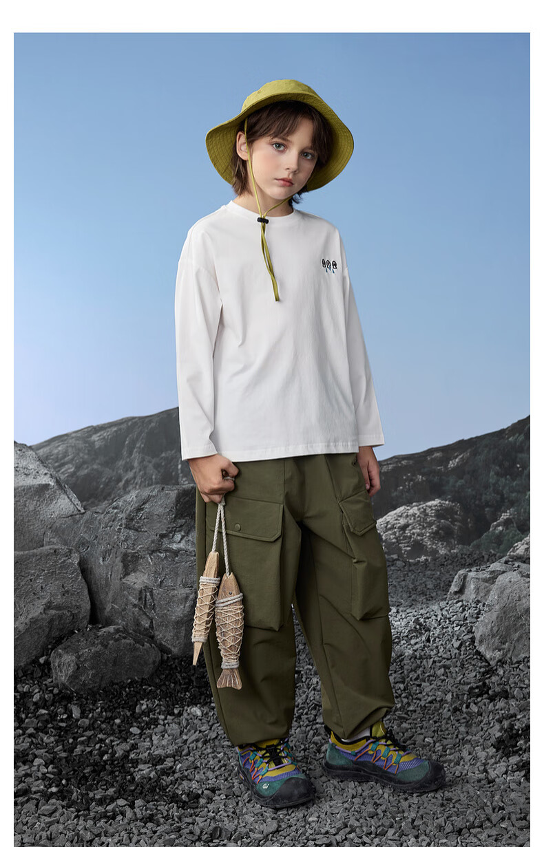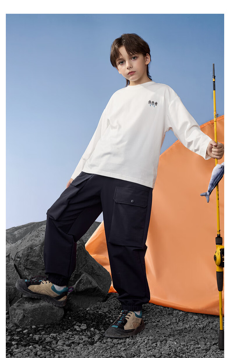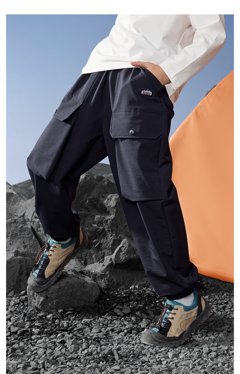 马骑顿(MQD)男童秋新款户外工装裤露营登山束脚裤简约亲肤休闲裤 卡其 130