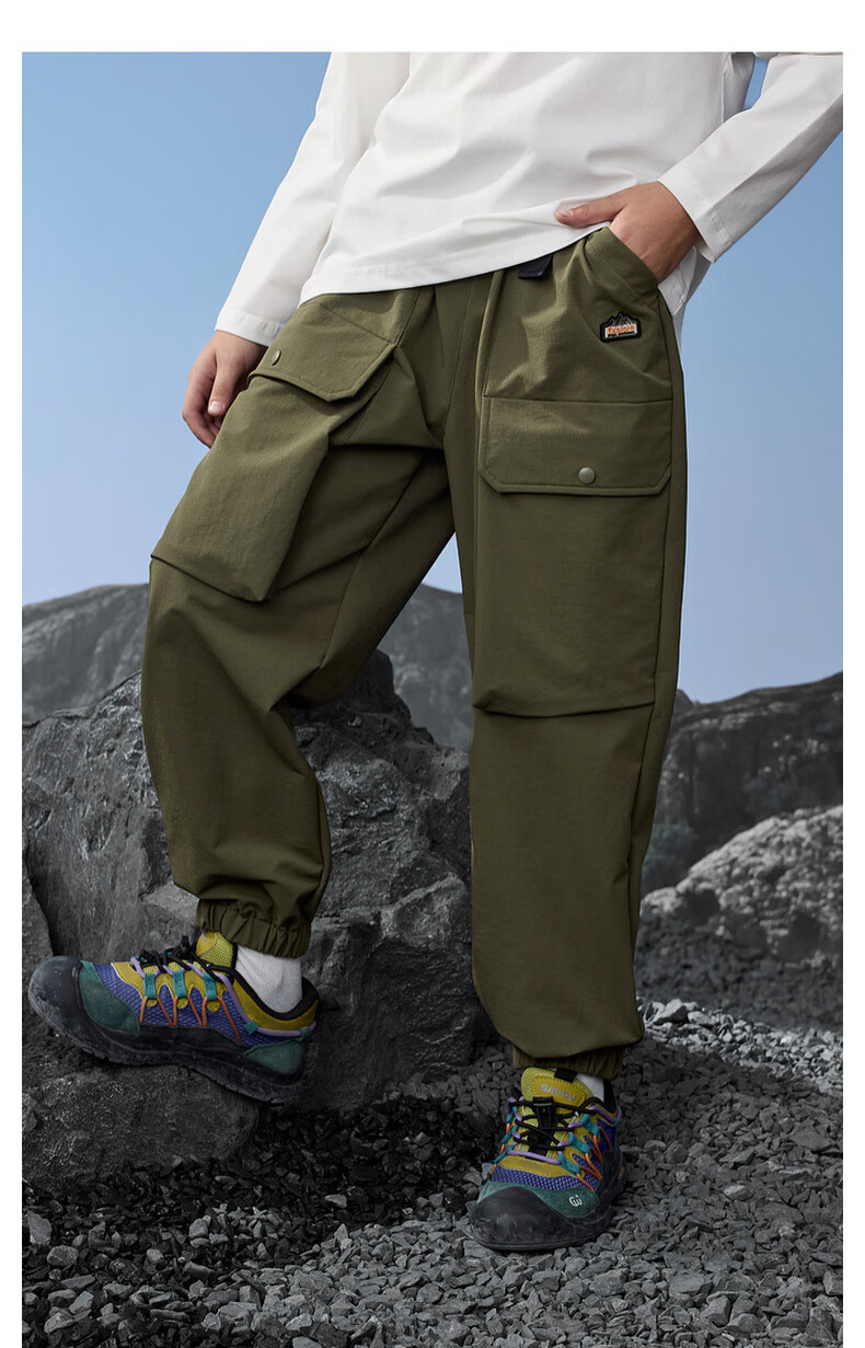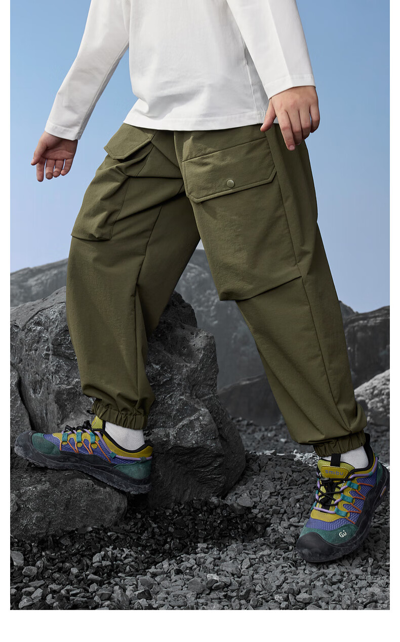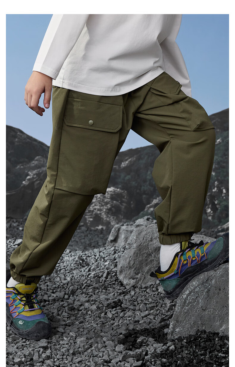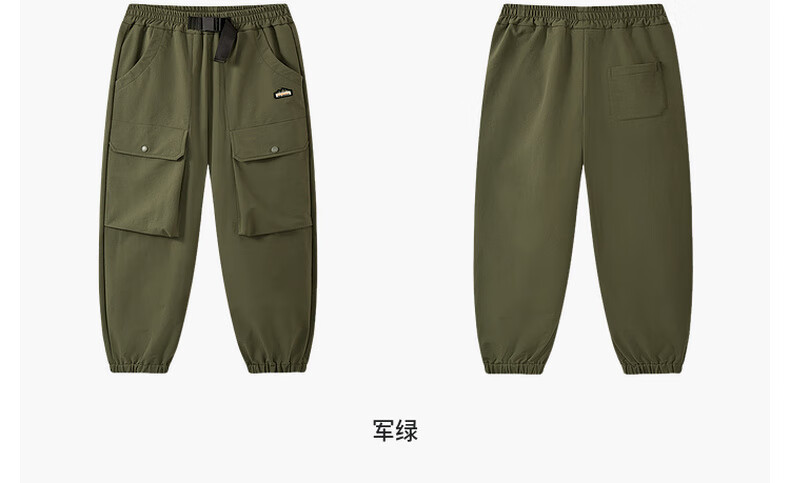 马骑顿(MQD)男童秋新款户外露营登山工装裤宽松束脚裤休闲裤 军绿 150