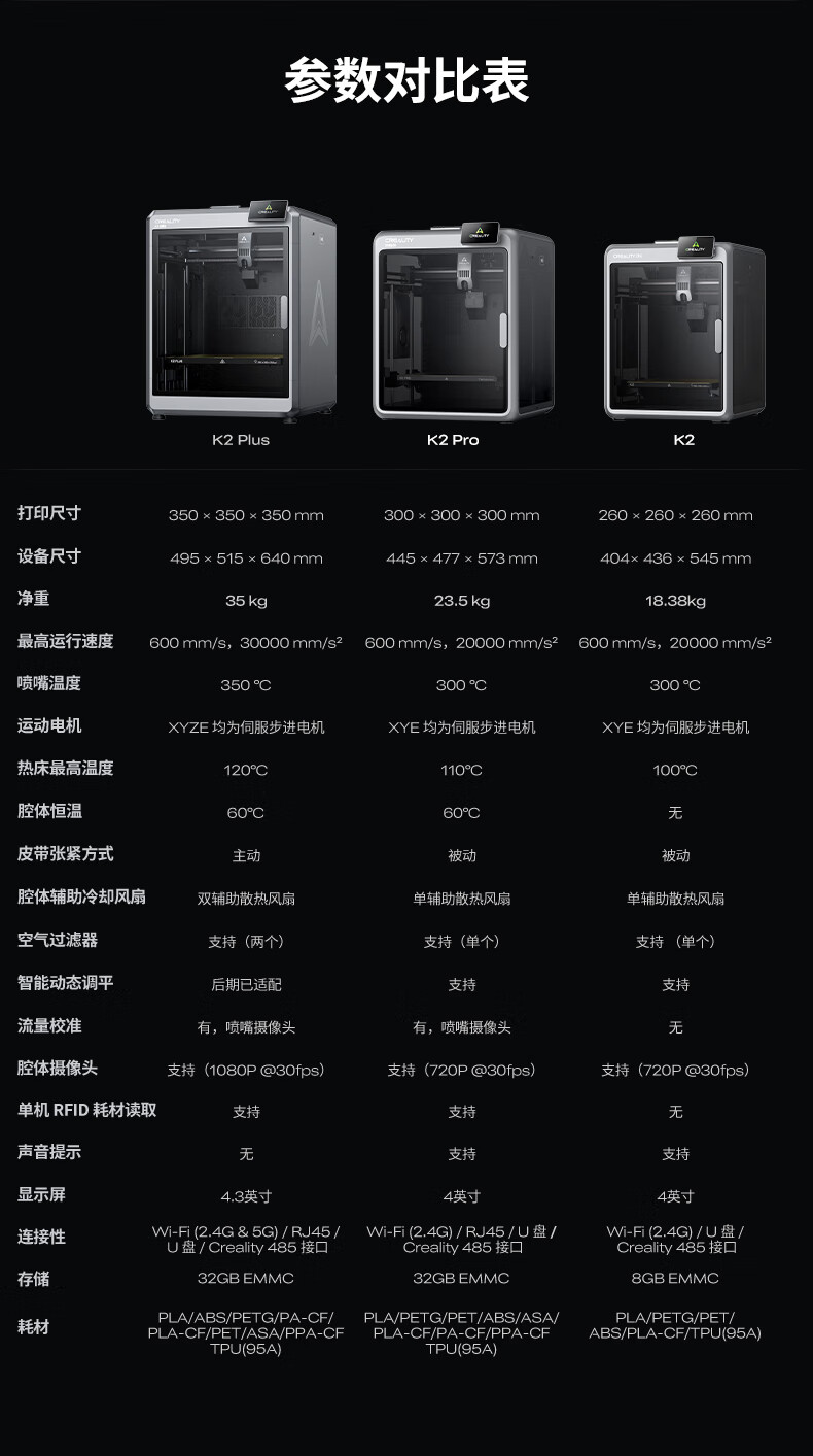 创想三维K2 Pro Combo 3D打印机器大尺寸FDM家用桌面立体打印 高精度高速 AI监测 主动腔体恒温