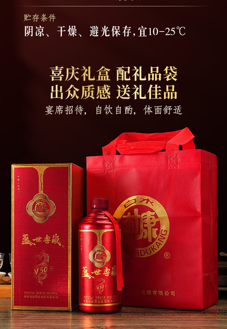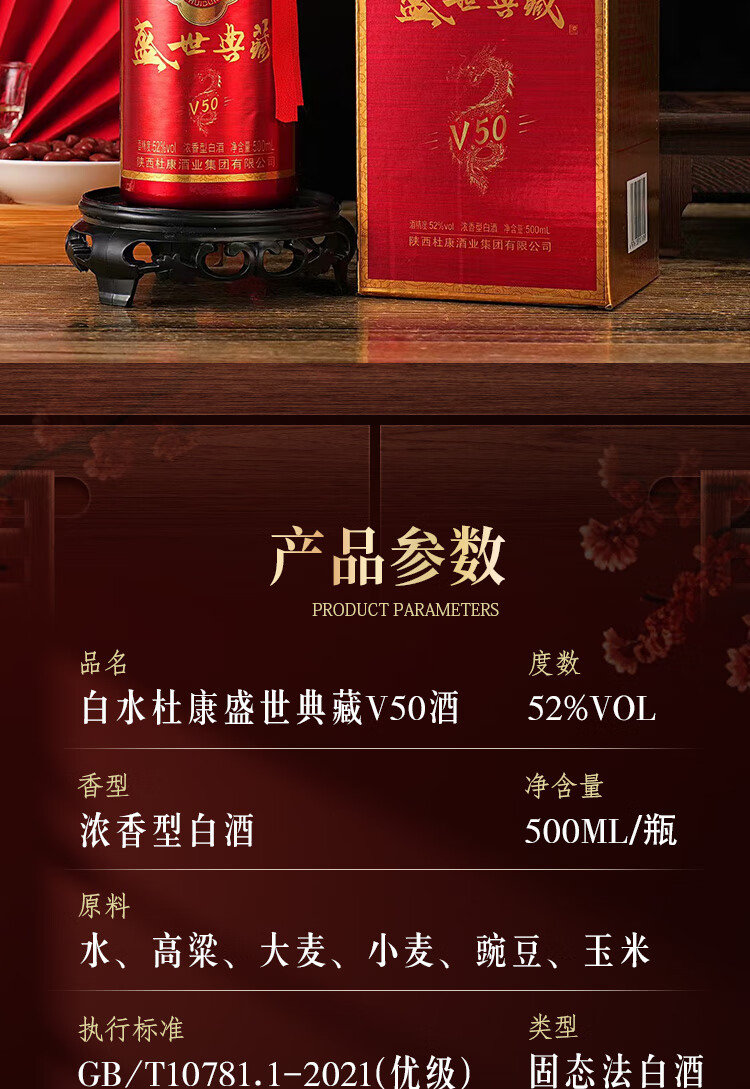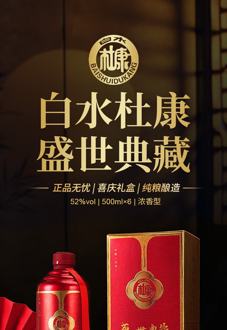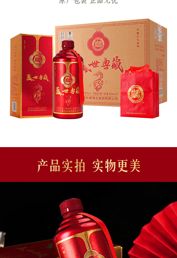 白水杜康(BAISHUIDUKANG)盛世典藏V50浓香型白酒52度500ml*6瓶整箱送礼 52度 500mL 6瓶