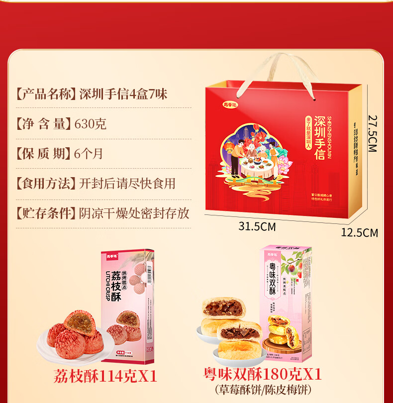 思香逢广东深圳特产手信传统糕点零食大礼包广州旅游年货春节送伴手礼物 深圳特产伴手礼(7味共630g)