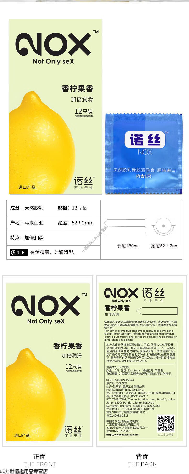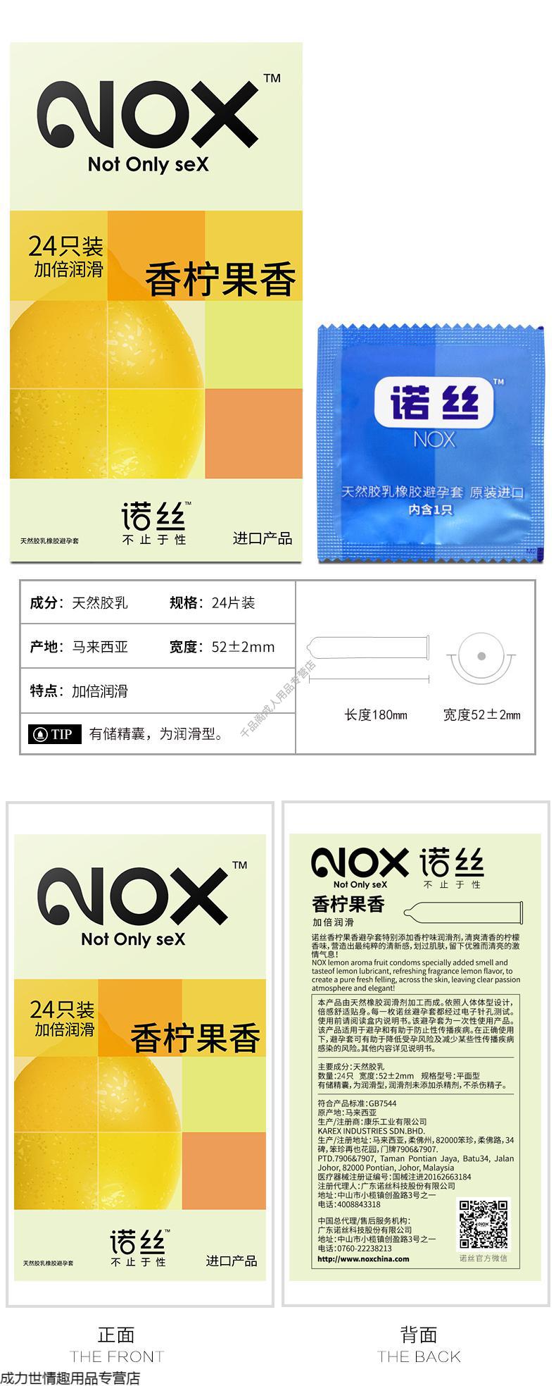 诺丝避孕套中号薄光面爽滑透薄润薄香柠24只装水果味安全套计生用品 香柠果香3只 保密发货中号