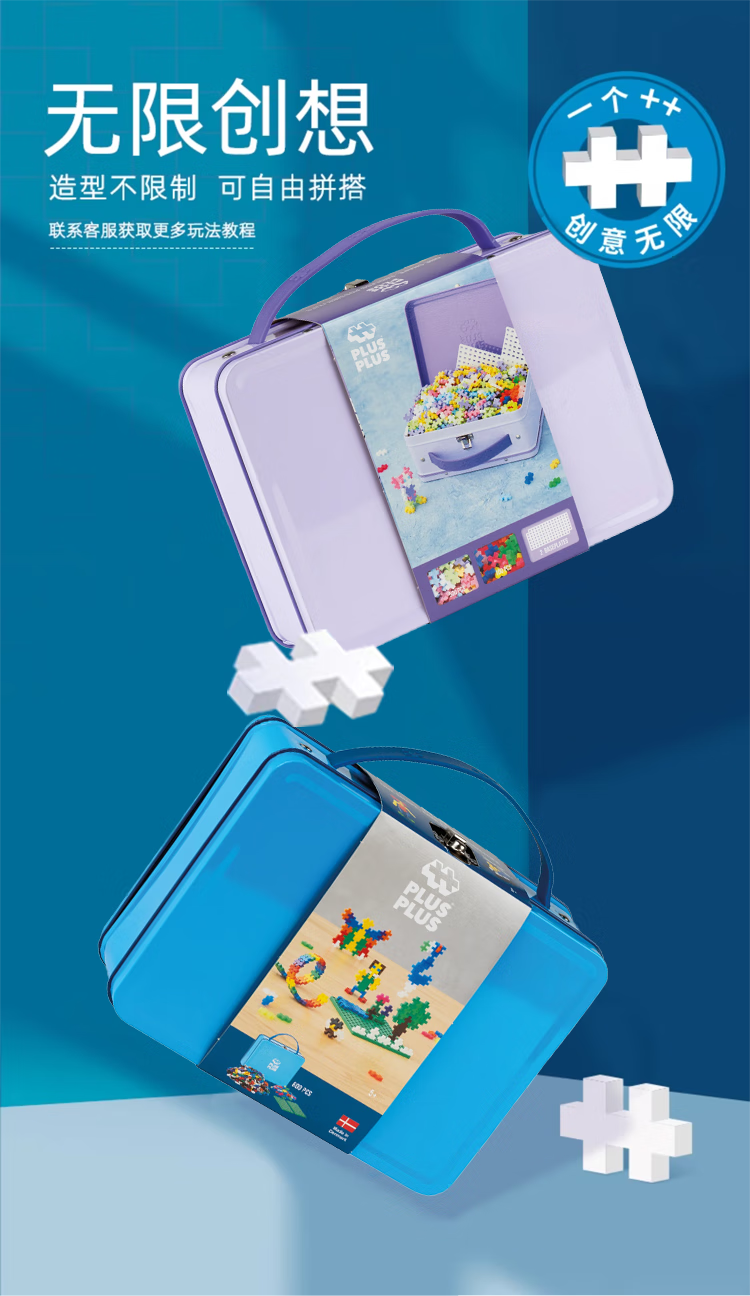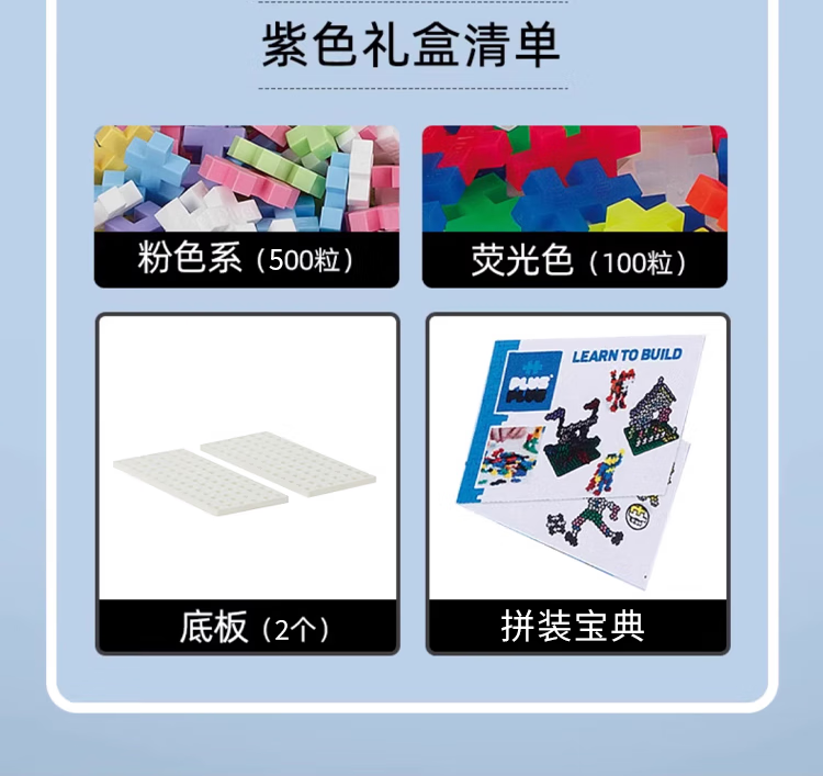Plus-plus丹麦原装进口积木儿童益智拼装男女孩3岁拼图拼接小颗粒拼搭玩具 粉紫礼盒【600粒+底板】7003