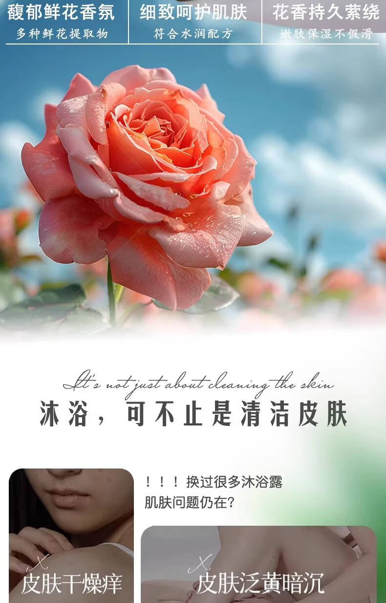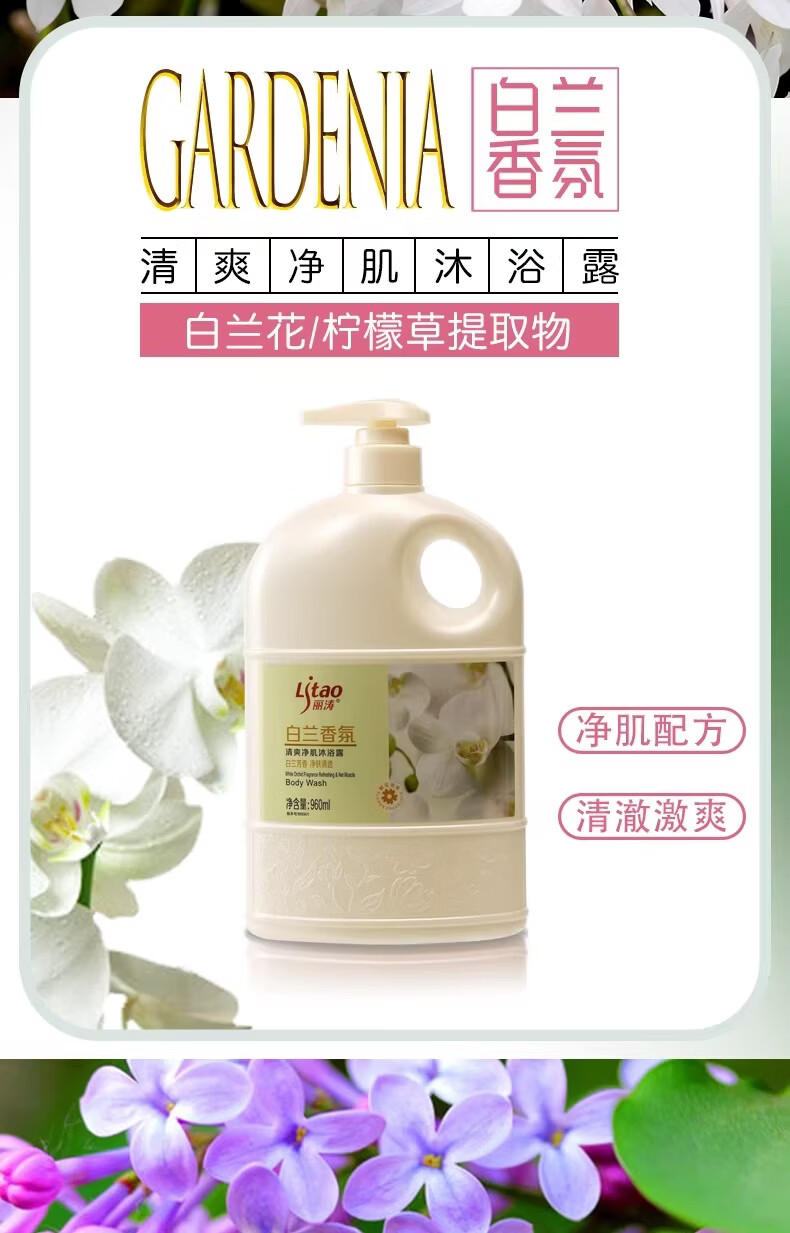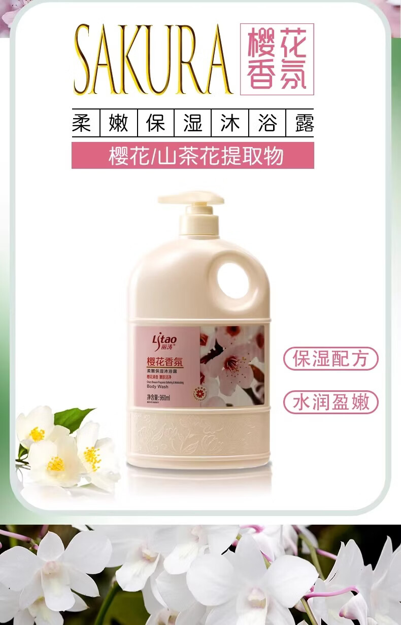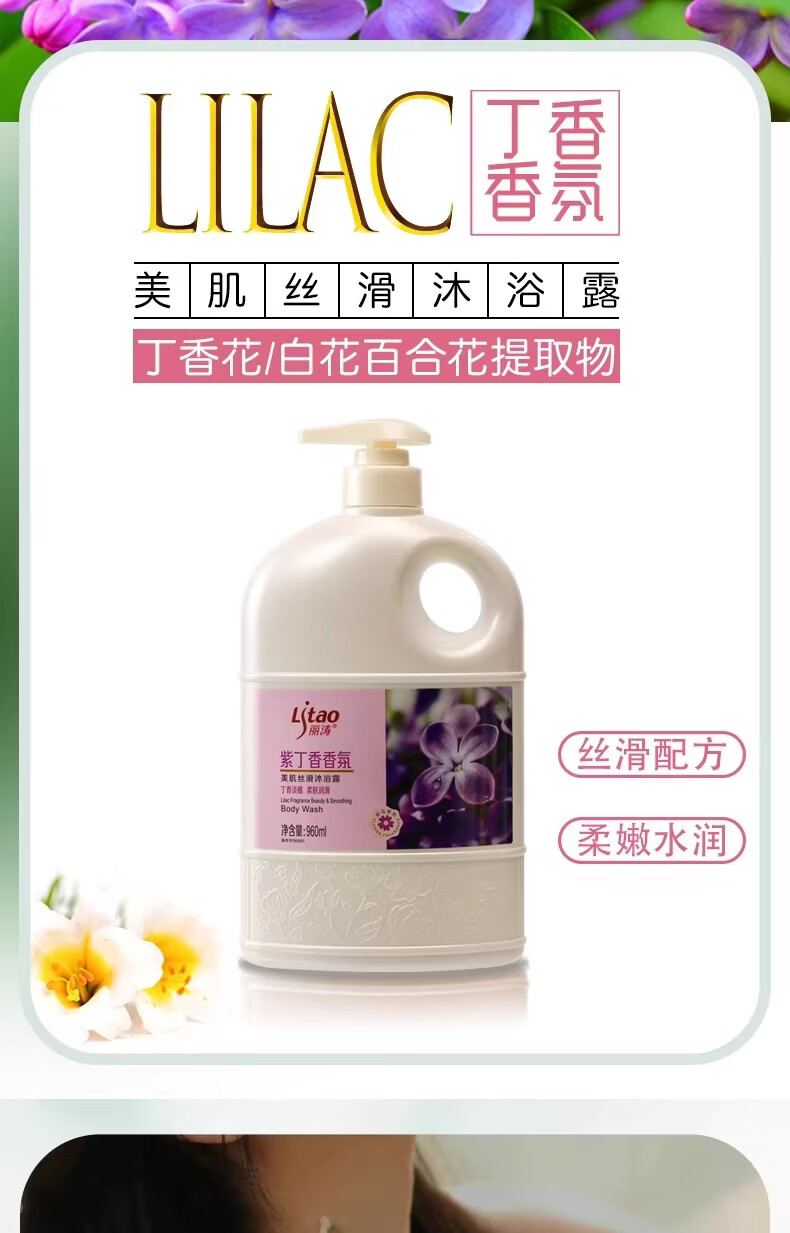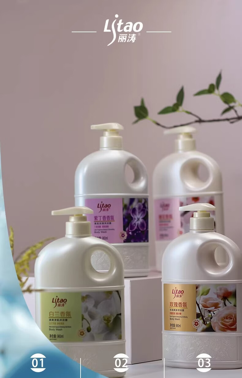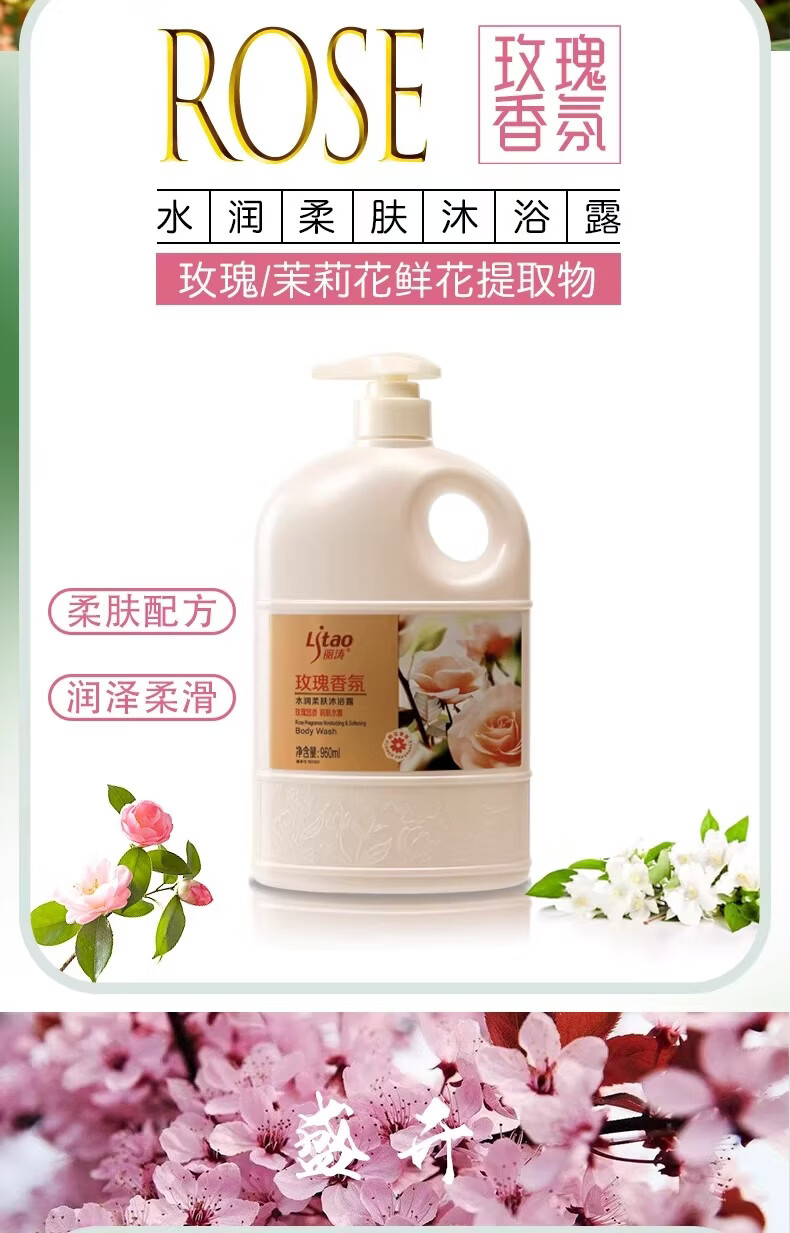 Litao沐浴露持久留香水润柔肤净肤清透清香保湿舒缓清爽大容量花香 玫瑰香氛 1.88L