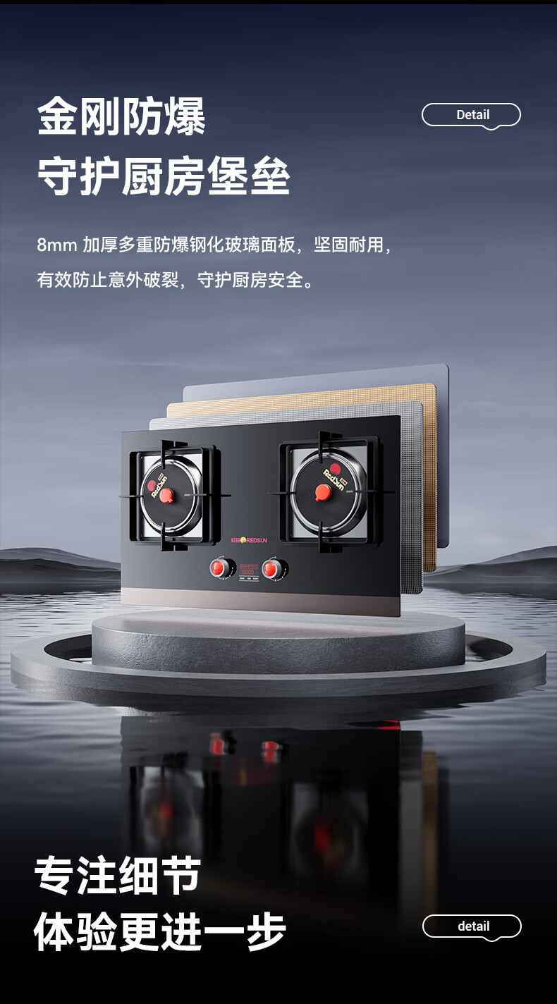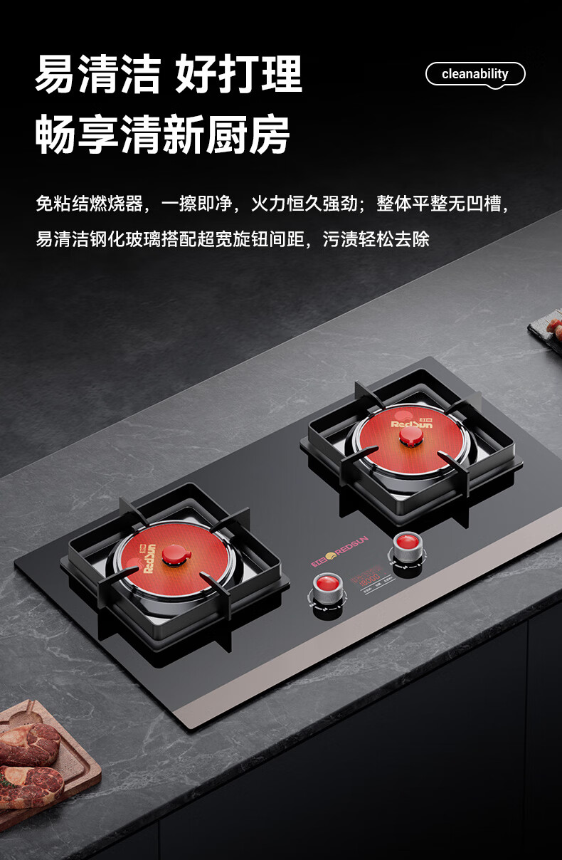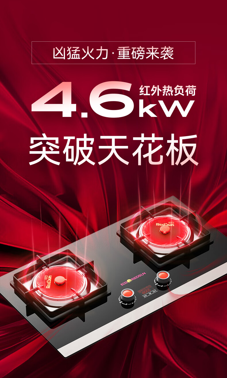 红日(RedSun)72%高热效率猛火聚能红外灶具H1/H3小底壳免改孔记忆独立定时家用易清洁 70%高热效率独立记忆任意定时红外灶H1S 天然气