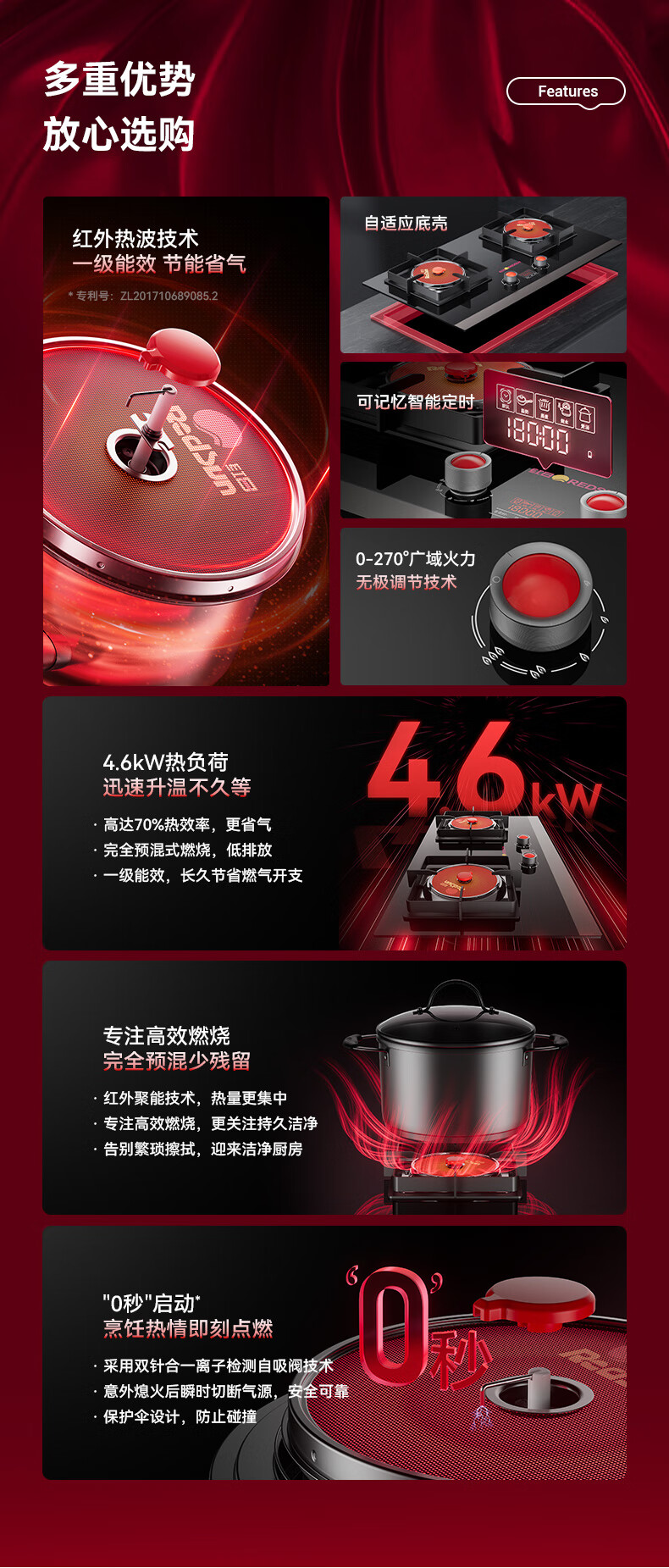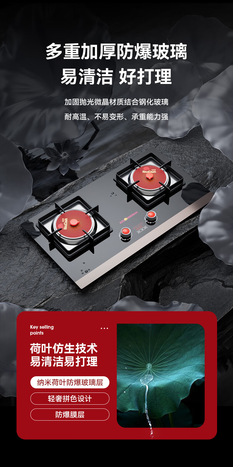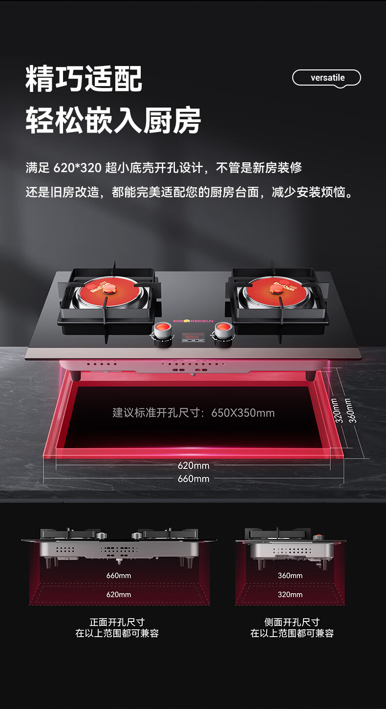 红日(RedSun)72%高热效率猛火聚能红外灶具H1/H3小底壳免改孔记忆独立定时家用易清洁 70%高热效率独立记忆任意定时红外灶H1S 天然气
