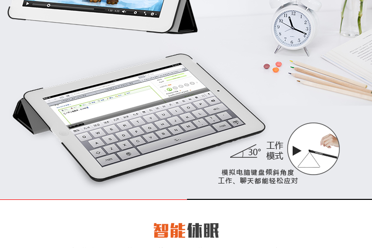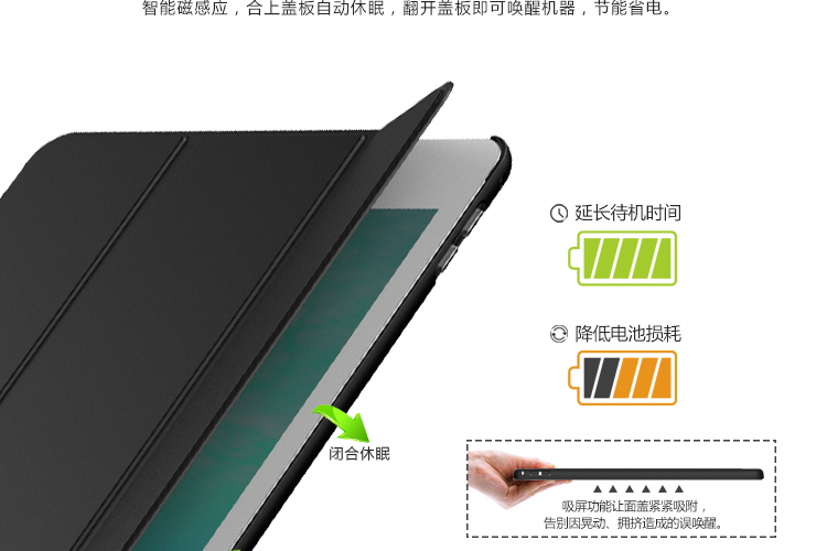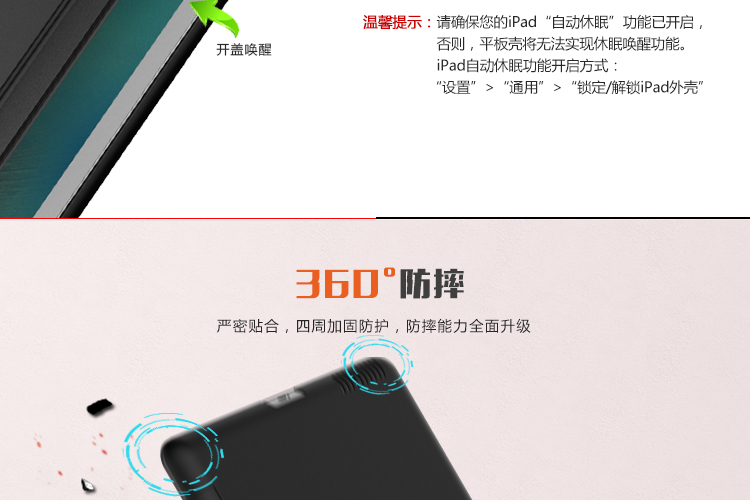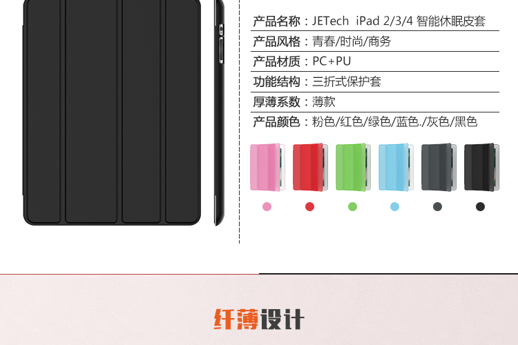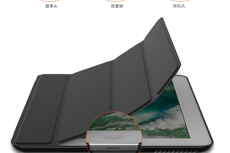 JETech苹果iPad2/iPad3/iPad4代(仅适用2-4代)保护壳磁吸智能休眠支架保护套 黑色