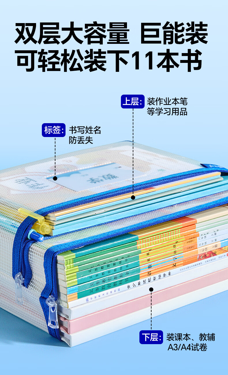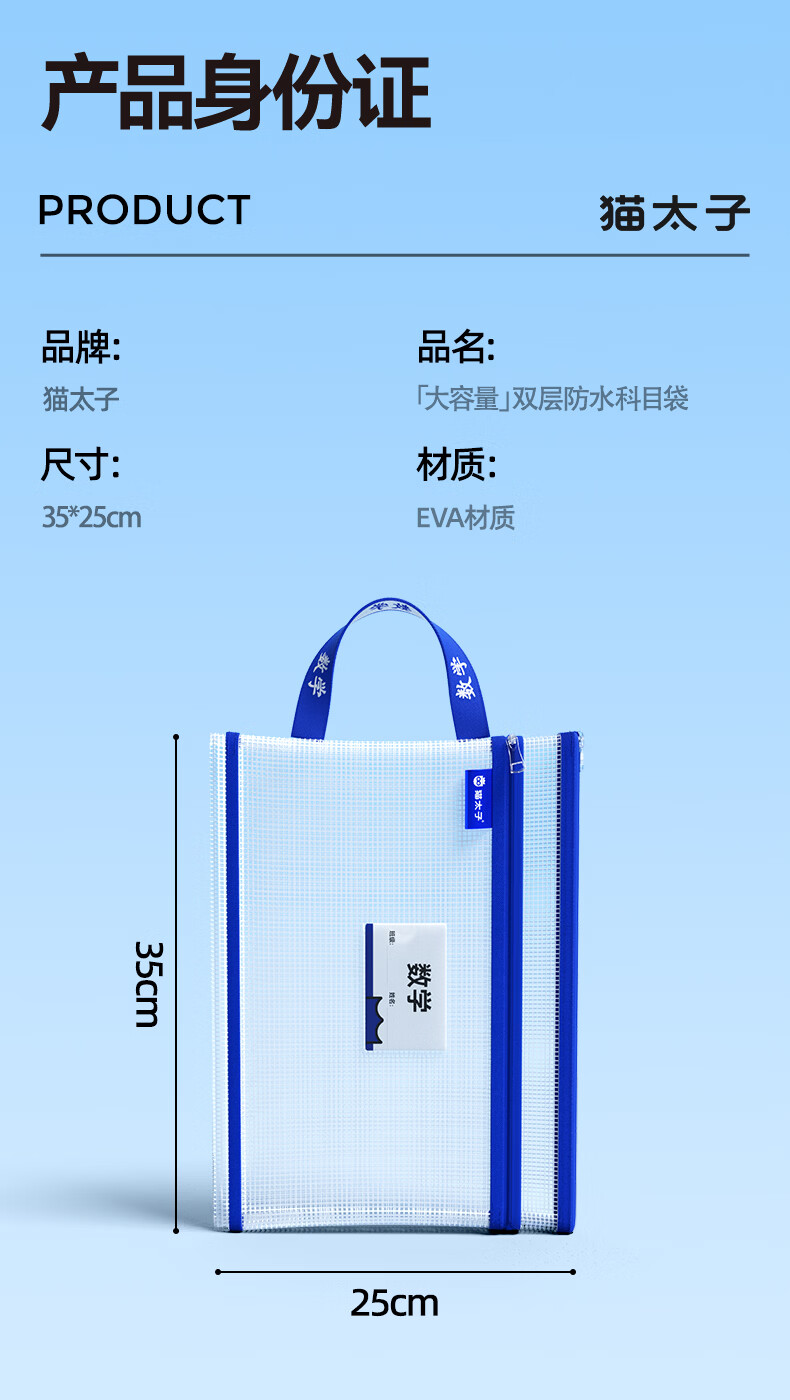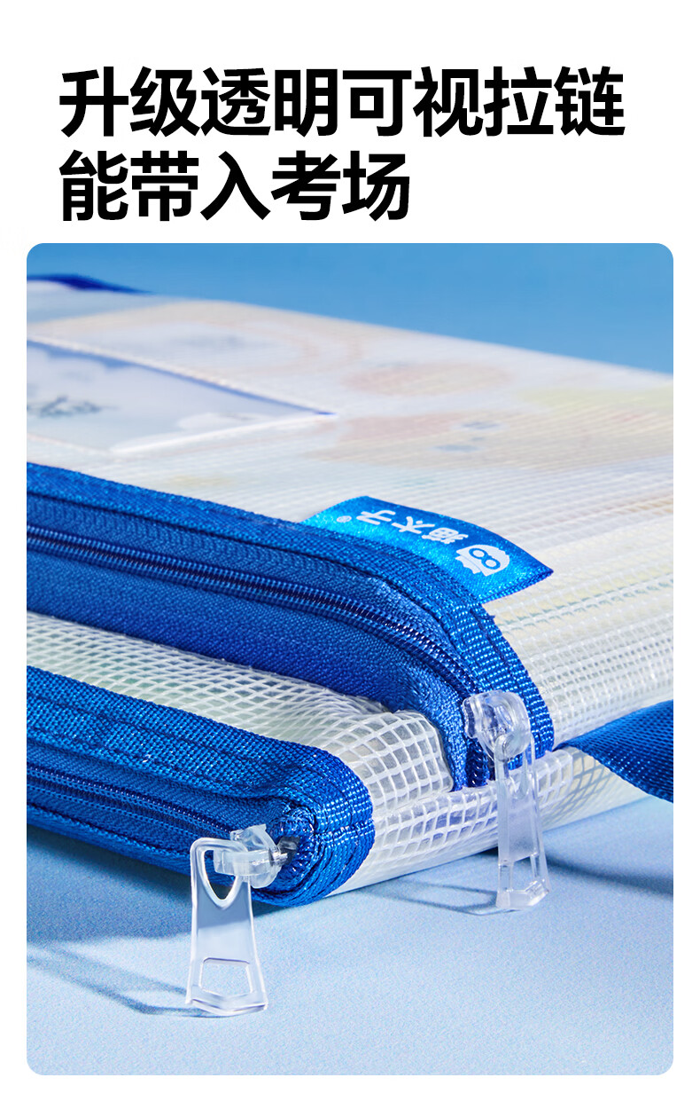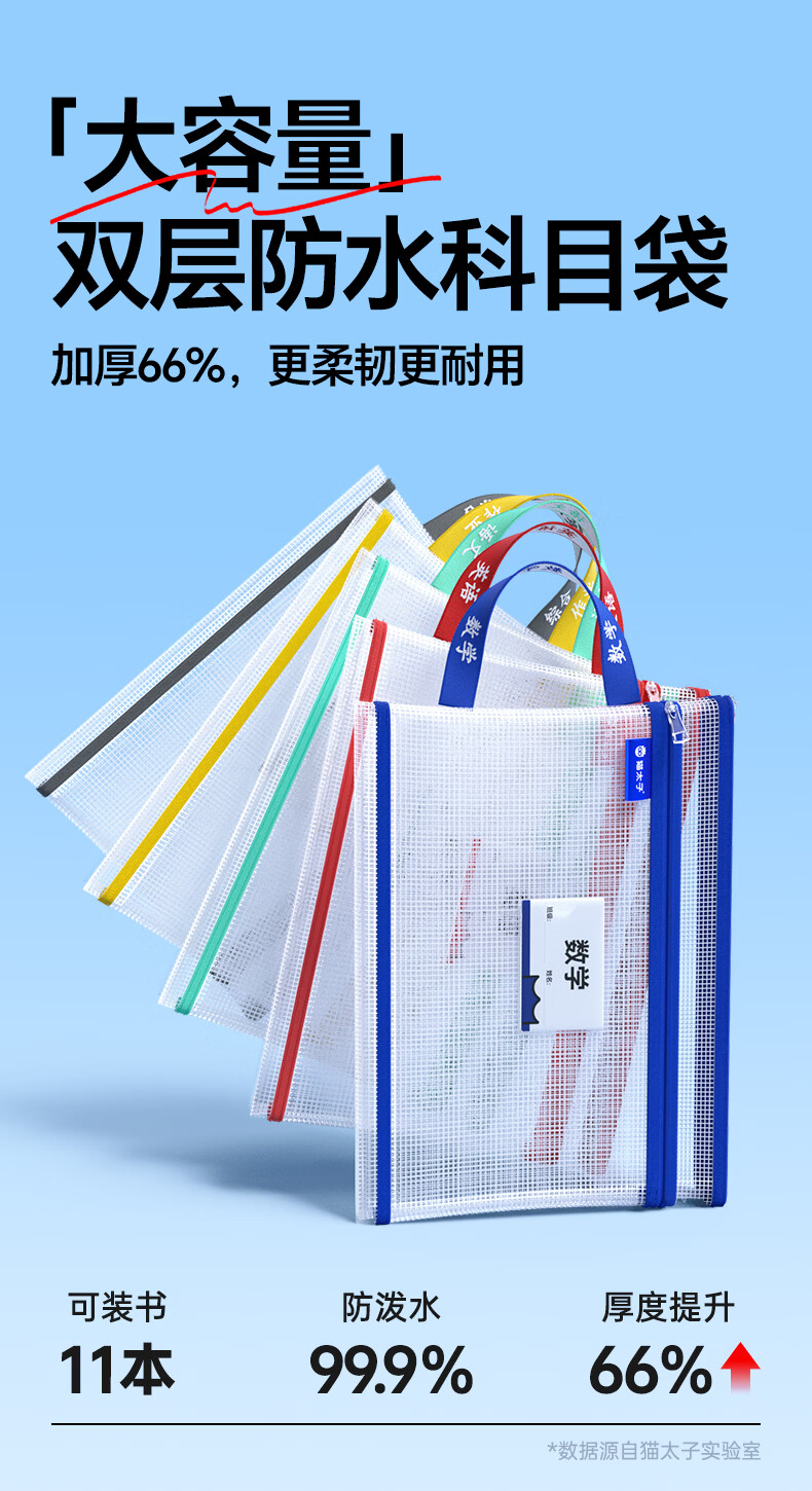 猫太子双层网纱拉链袋文件袋一年级小学生文具袋初中生透明学科分类试卷作业收纳 3个装(语+数+英)