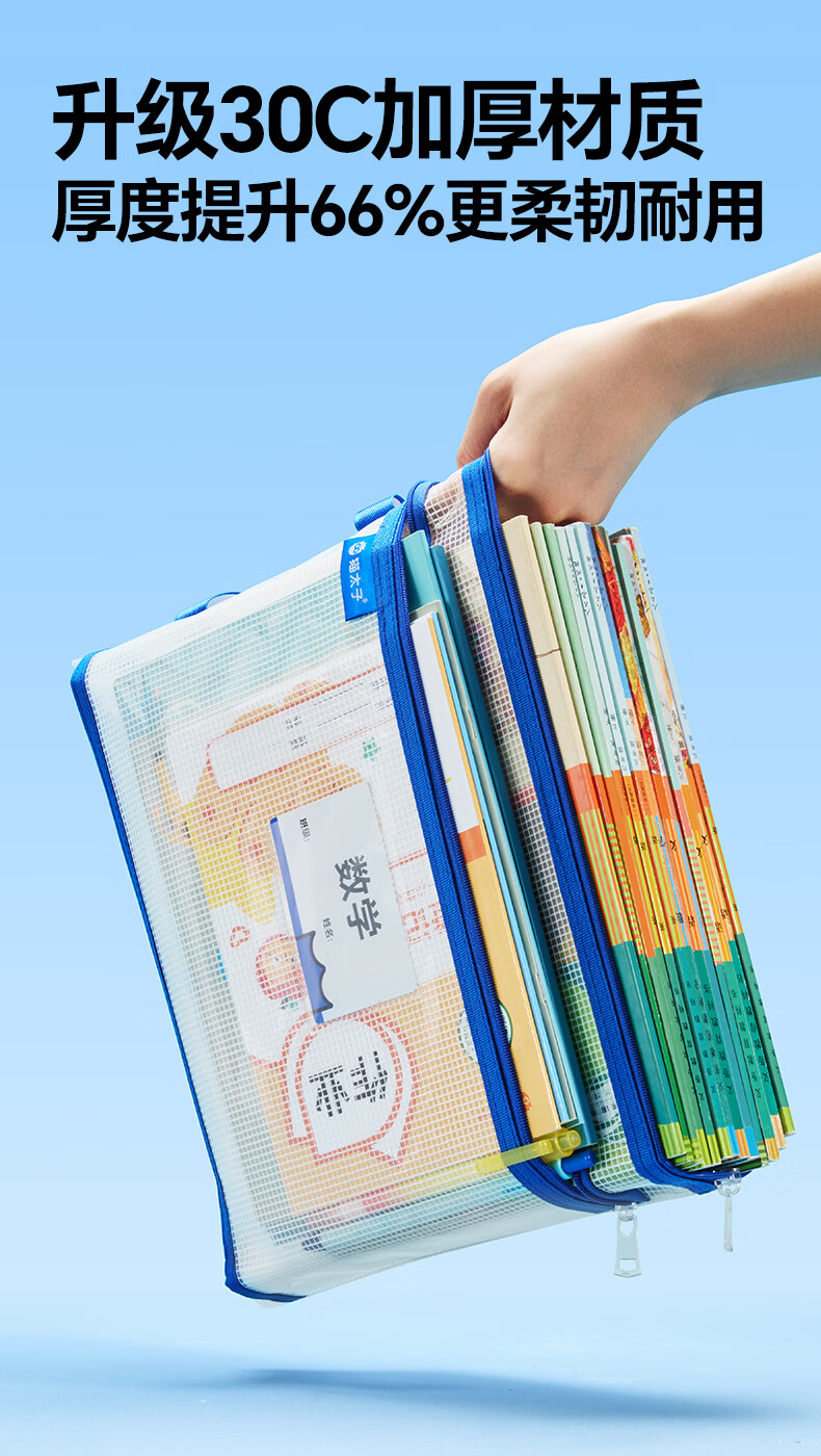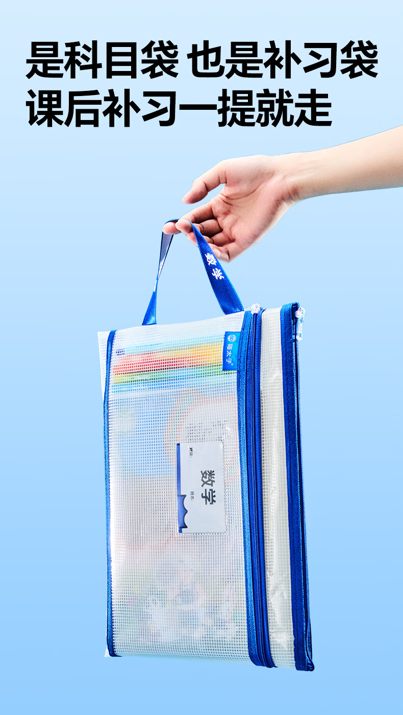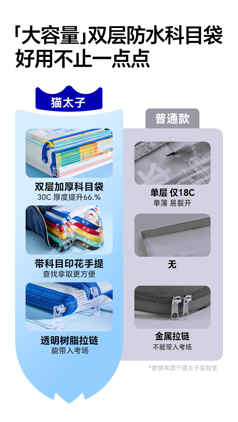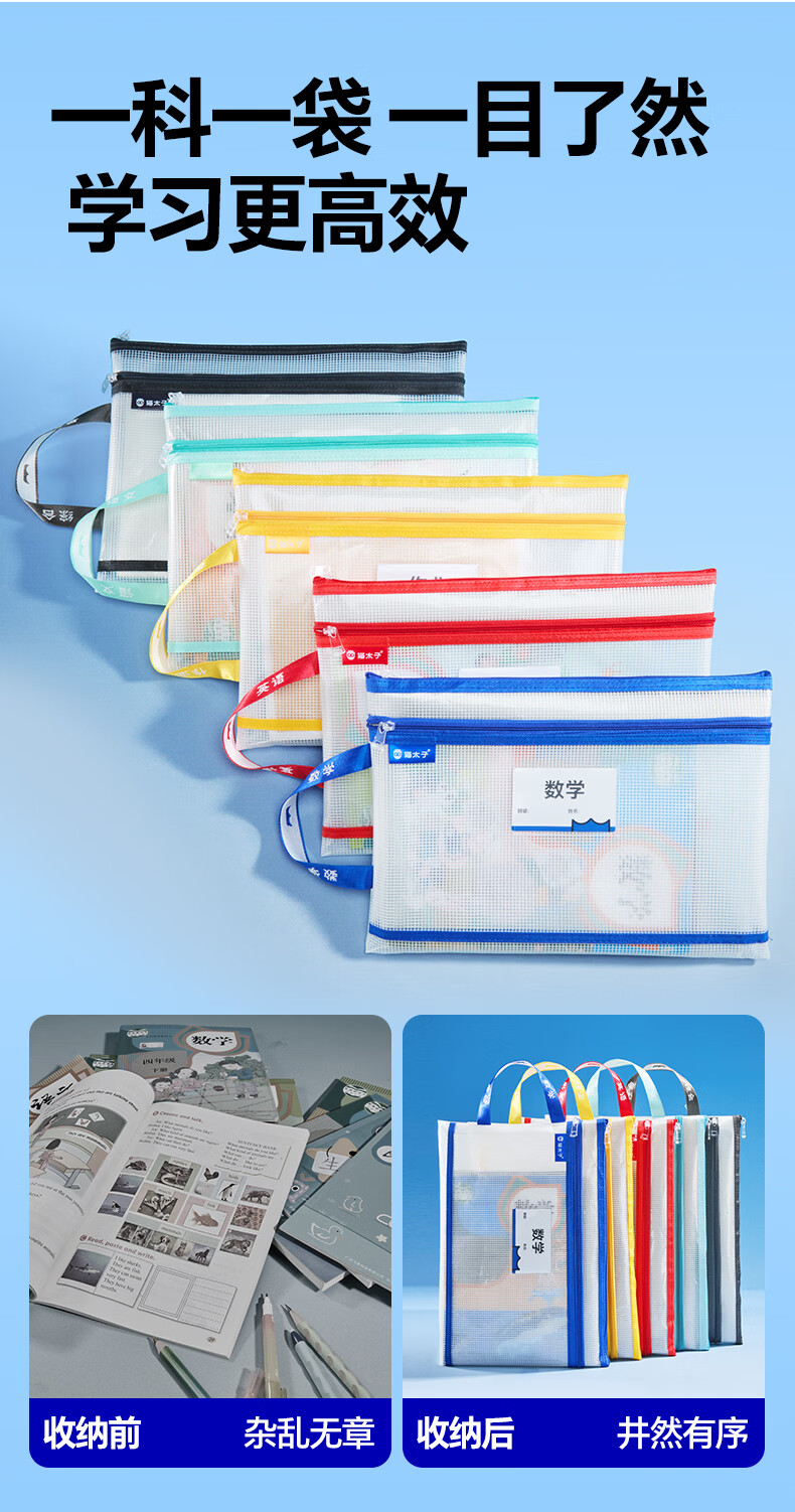猫太子双层网纱拉链袋文件袋一年级小学生文具袋初中生透明学科分类试卷作业收纳 3个装(语+数+英)