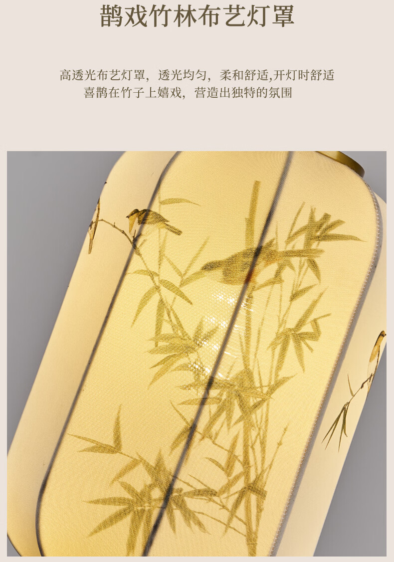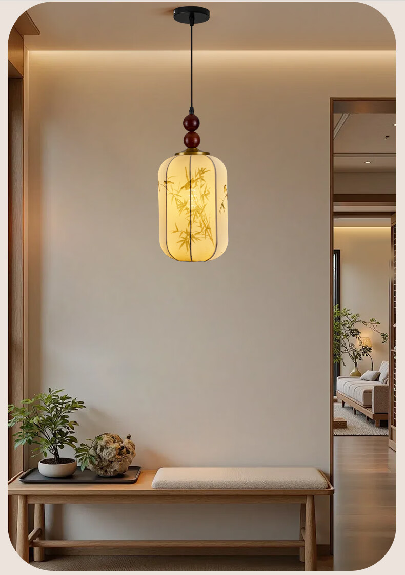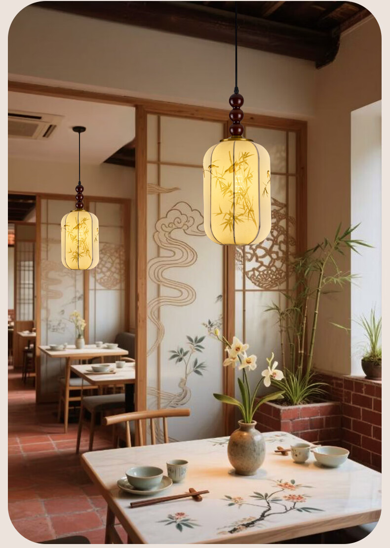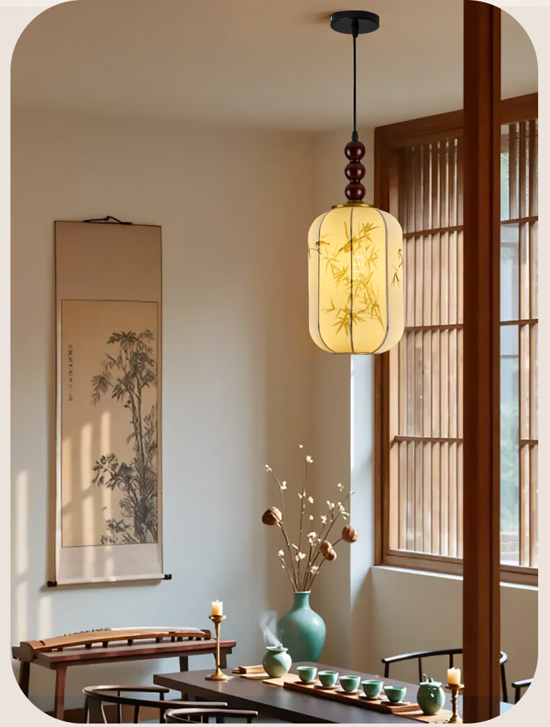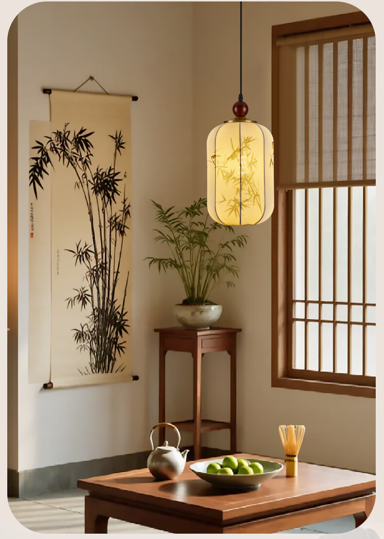 中式宋代美学小吊灯复古实木茶室书房餐厅过道走廊玄关床头吊灯 03-竹送映画【送全光谱护眼光源】 三色变光