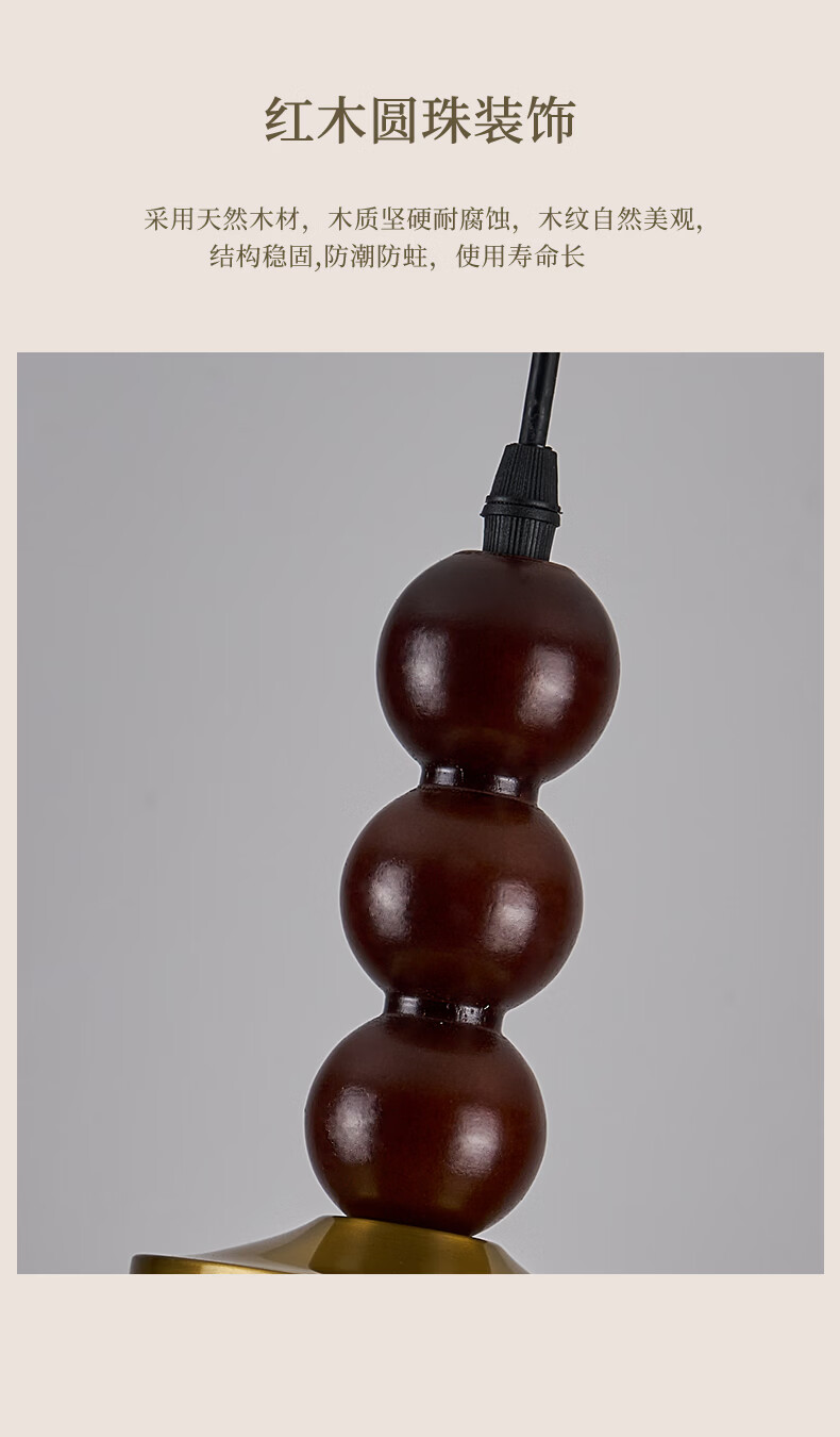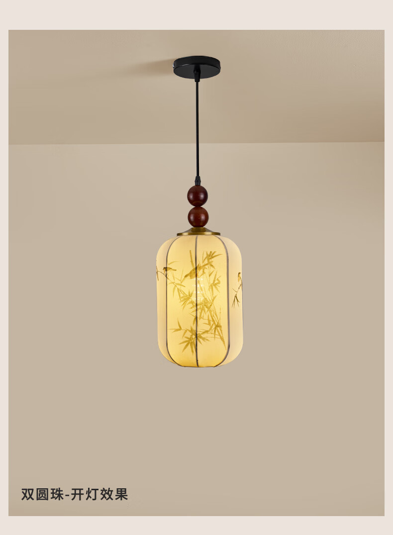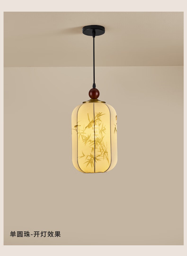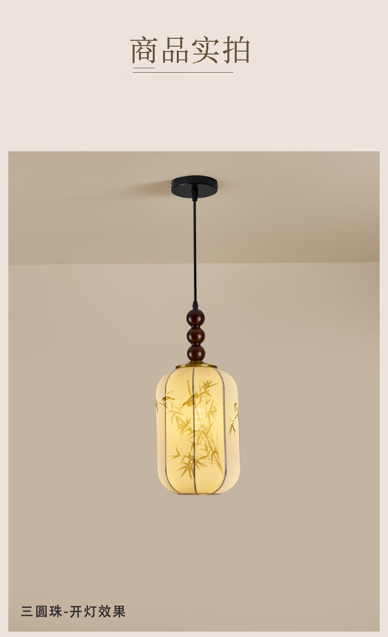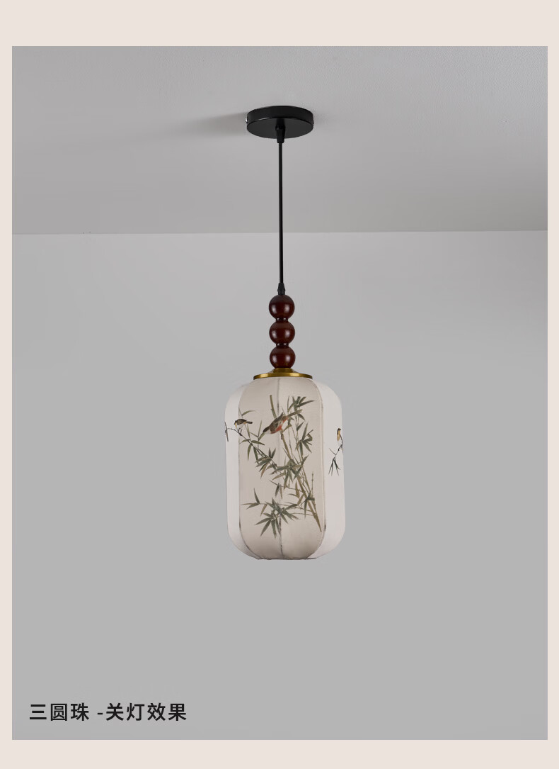 宋代美学小吊灯茶室卧室床头玄关新中式灯笼吊线灯具中山餐厅灯 竹报平安-全光谱三色变光 三珠品【长45cm】