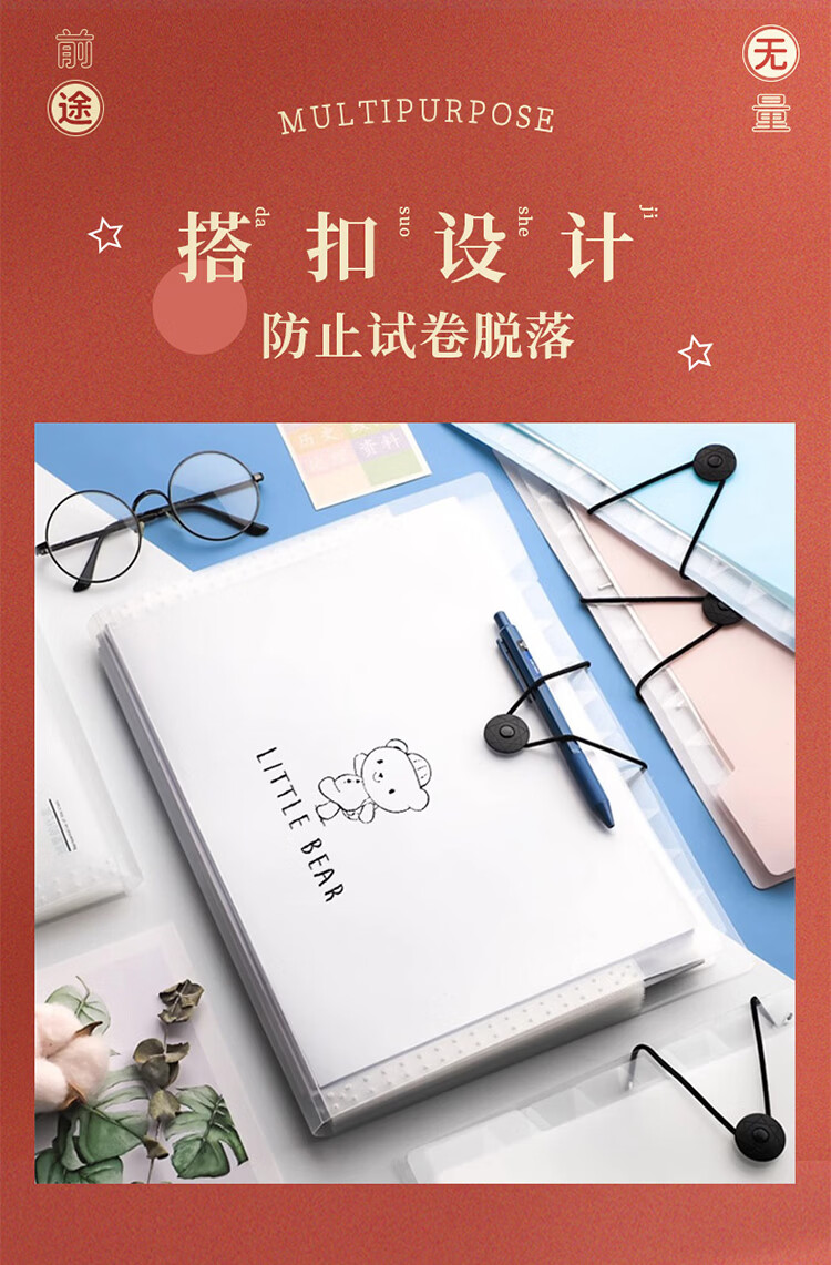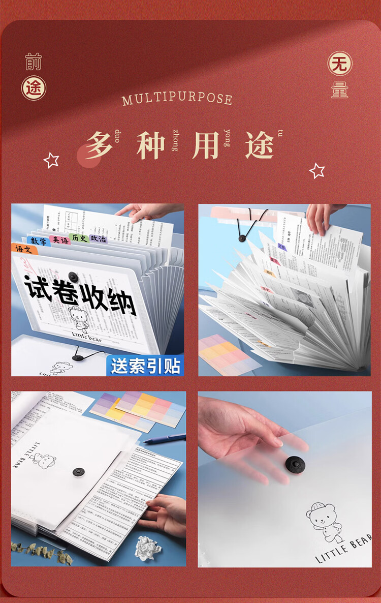 翰鸥斐手提横式风琴包试卷夹多层文件夹文件袋便携科目袋补习袋收纳袋资料册学生文件框